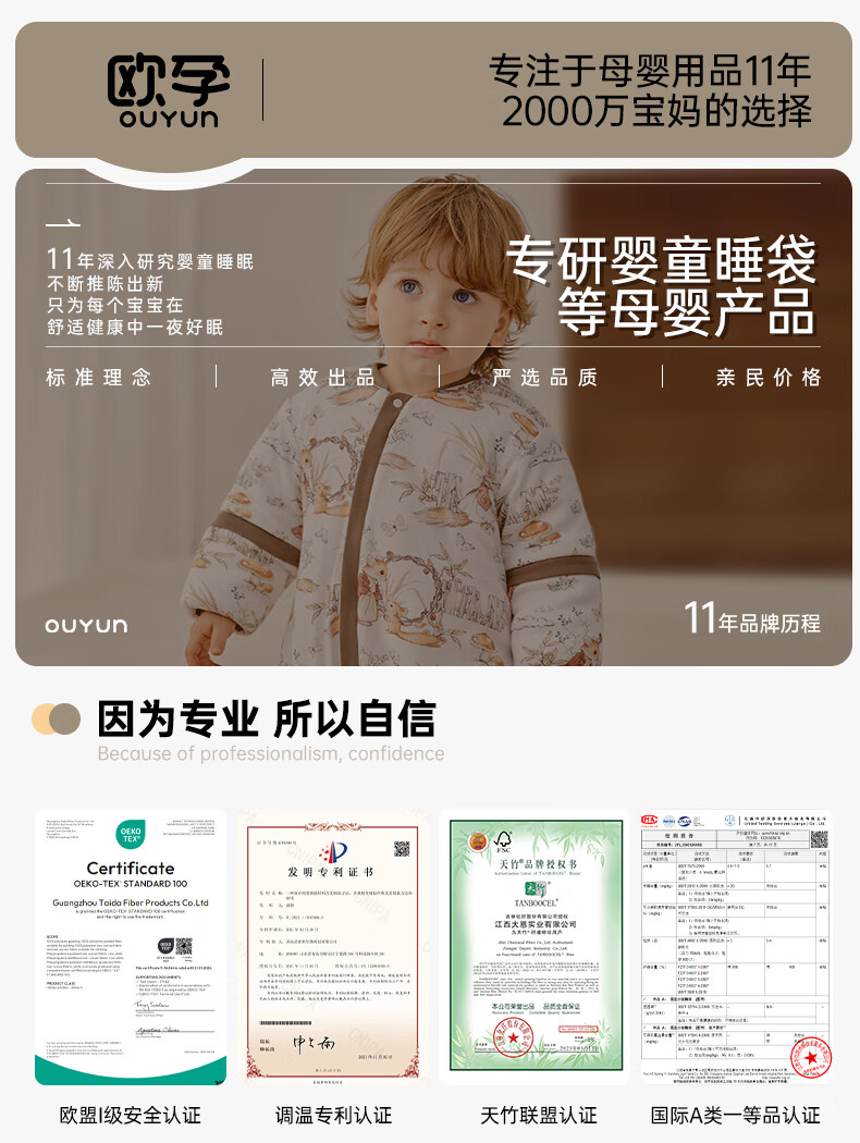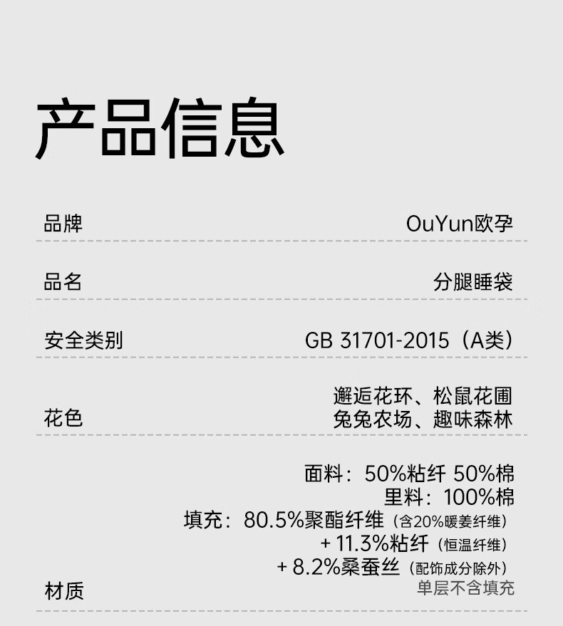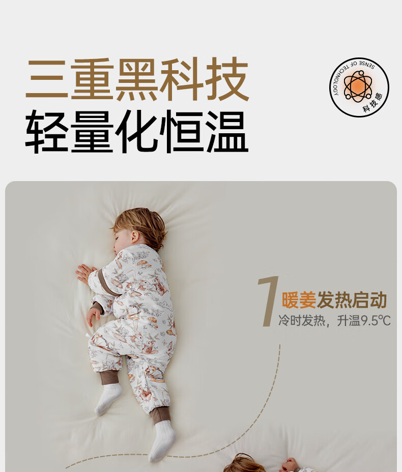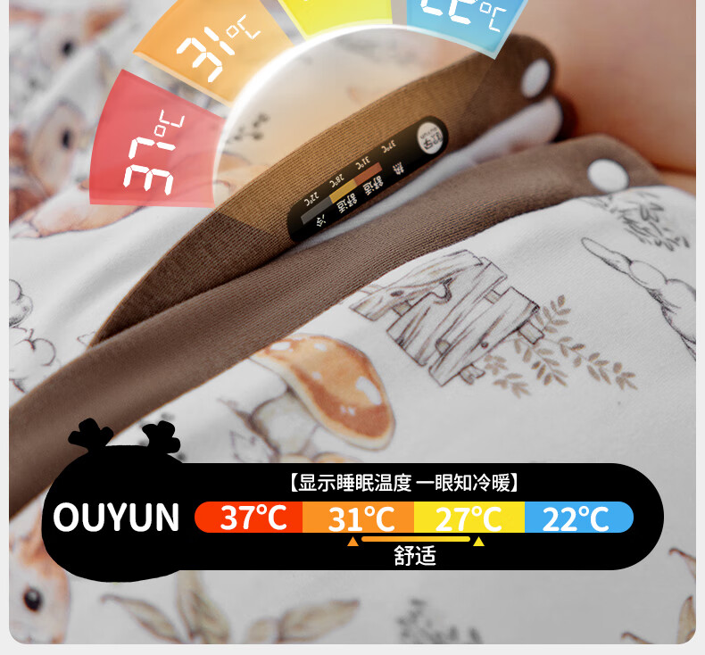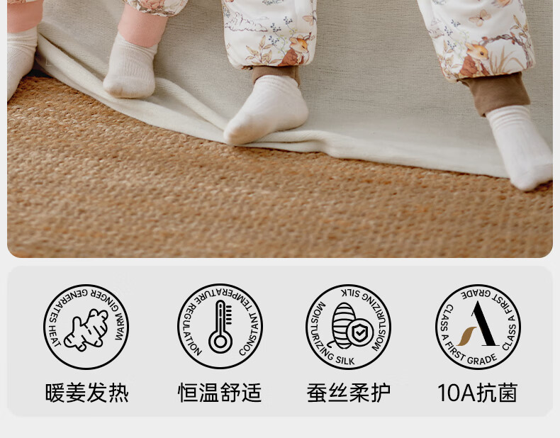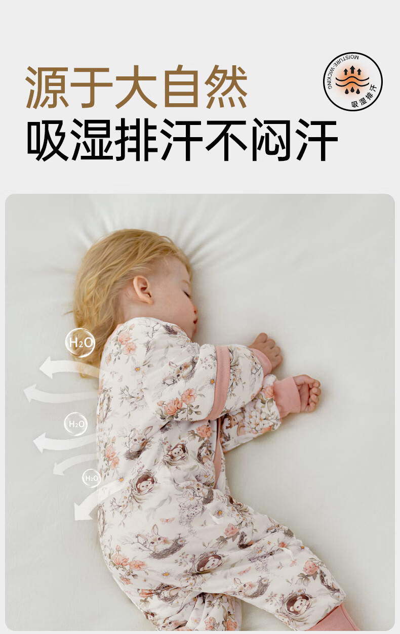 欧孕婴儿睡袋宝宝蚕丝防踢被子春秋冬款发热恒温儿童分腿四季通用 春秋款【室温22-26℃】松鼠花圃 55-80(3-18个月)-【80码】