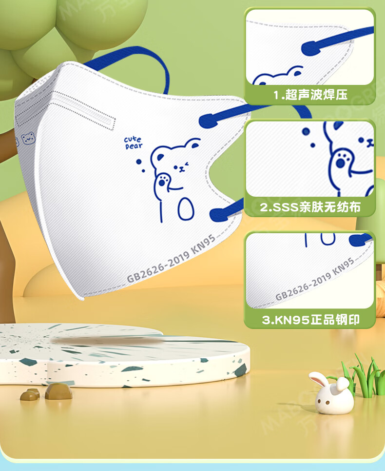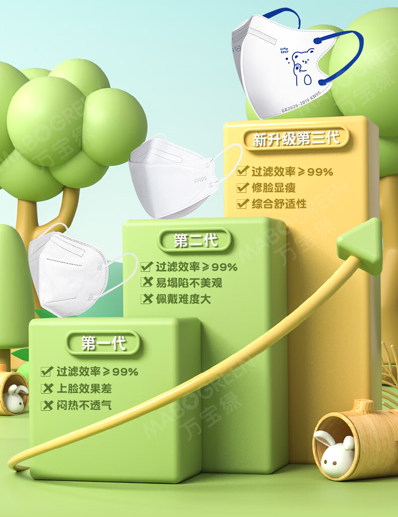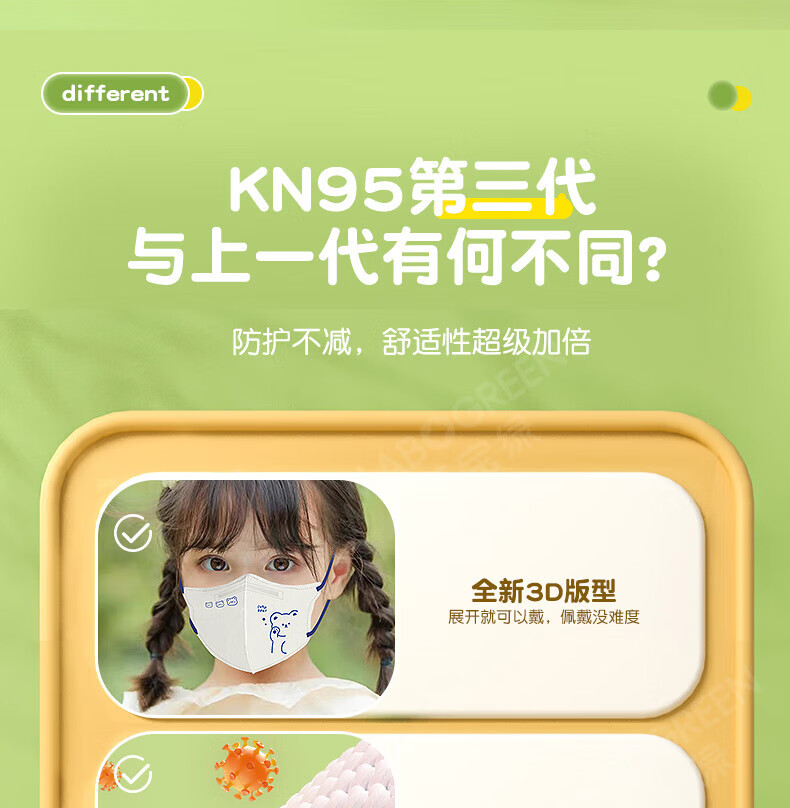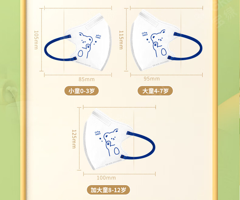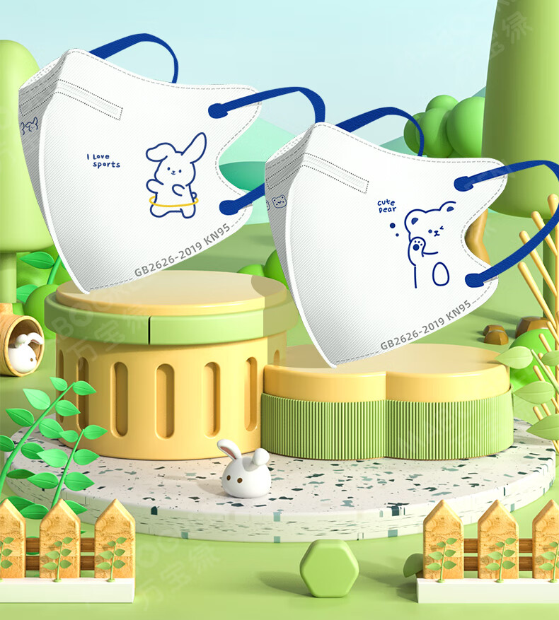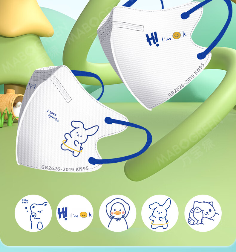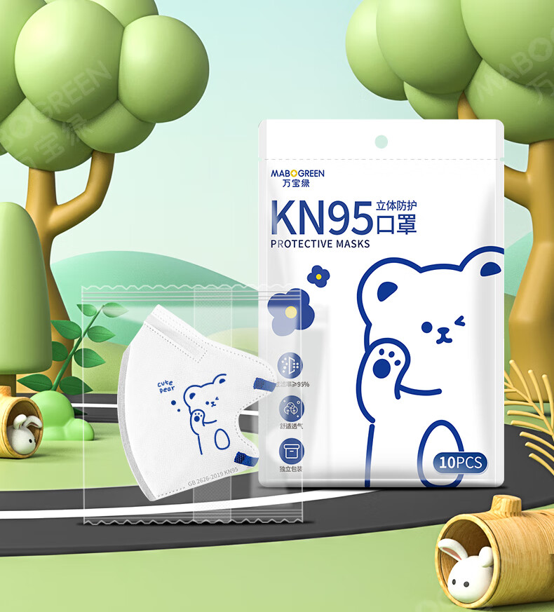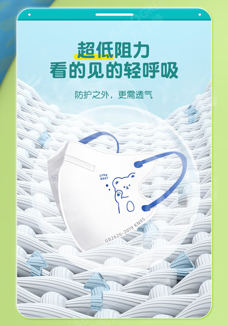 万宝绿 儿童口罩kn95一次性口罩3D立体0-3岁3-6岁6-12岁独立包装婴幼儿宝宝保暖透气黑白色 60只【五色混搭】KN95透气款 【8-12岁儿童】独立包装