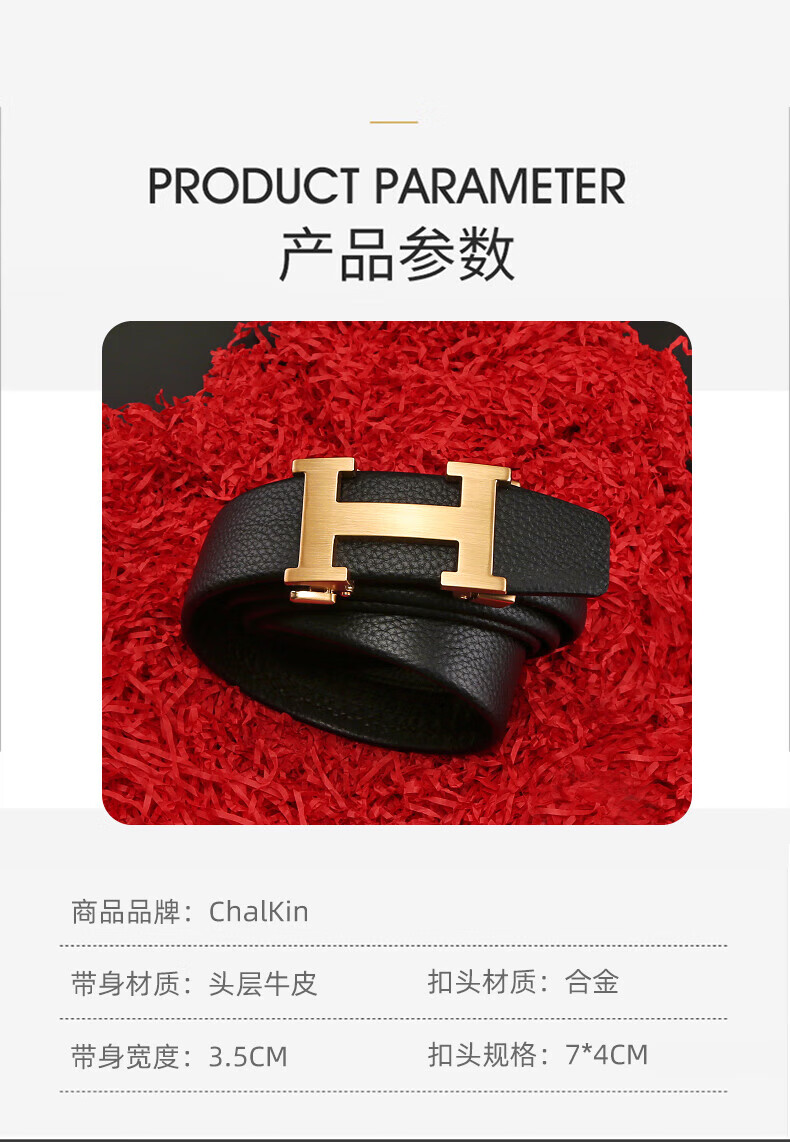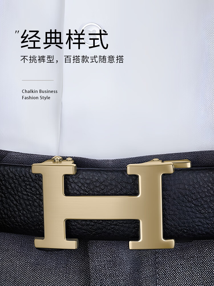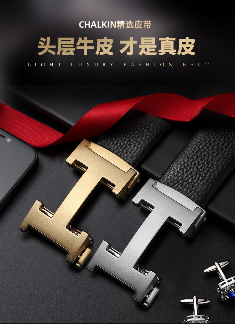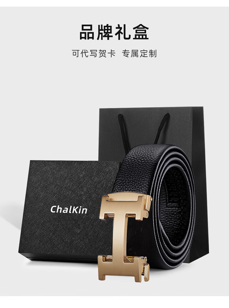 CHALKIN皮带男真皮自动扣男士腰带头层牛皮高端正品裤带2026新款生日礼物 62枪色 125cm