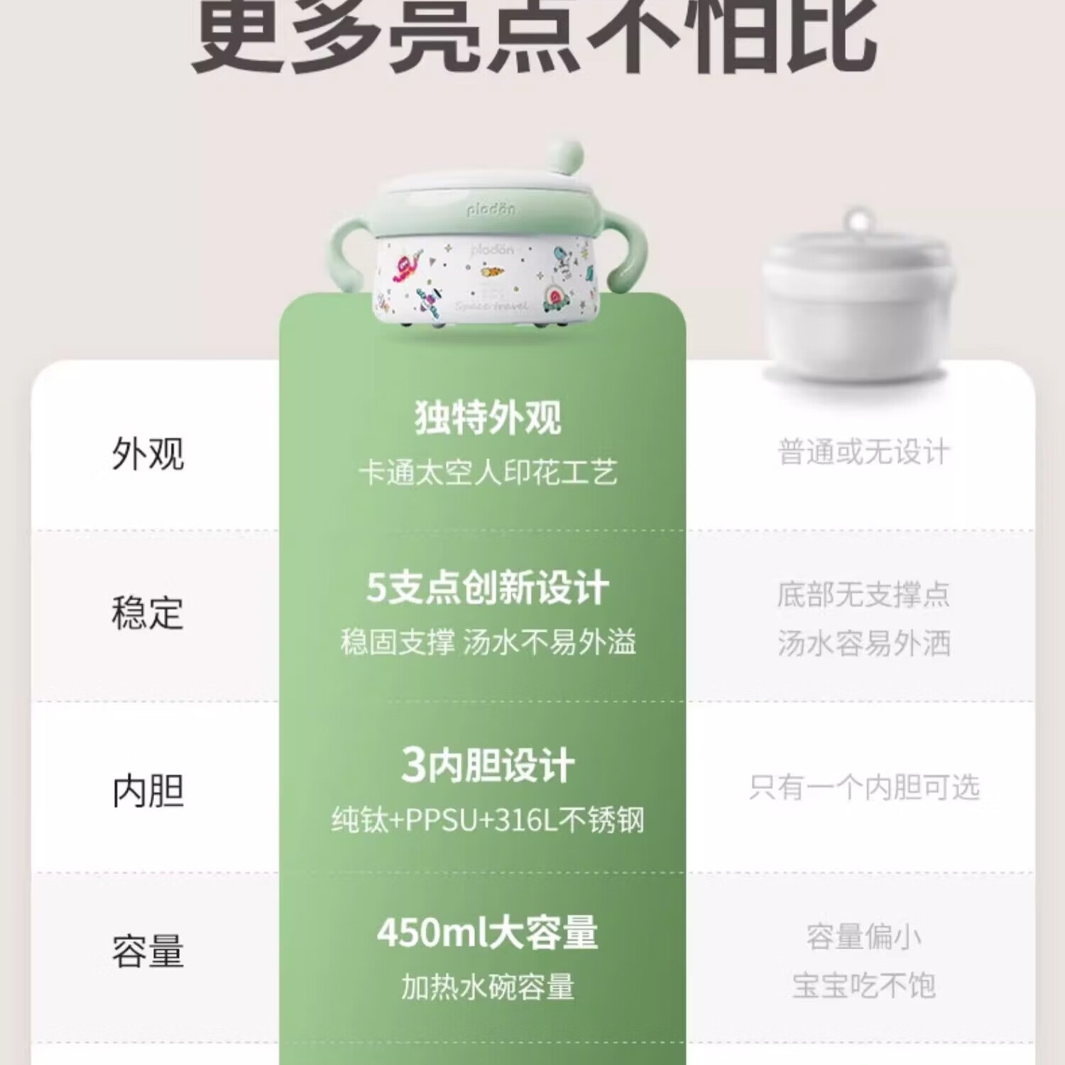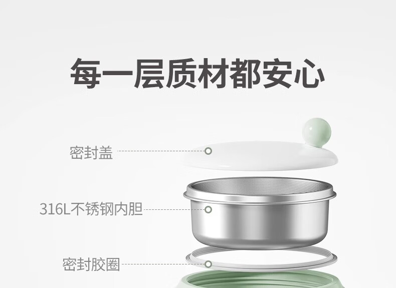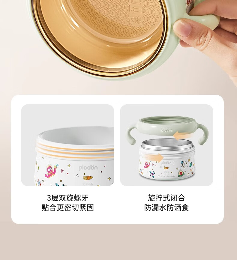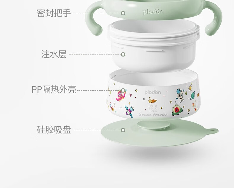 浦利顿PLODON婴儿专用辅食碗多层隔热锁温大容量不锈钢便携恒温注水碗 【钛内胆】全阶段|保鲜保温 婴儿辅食推荐
