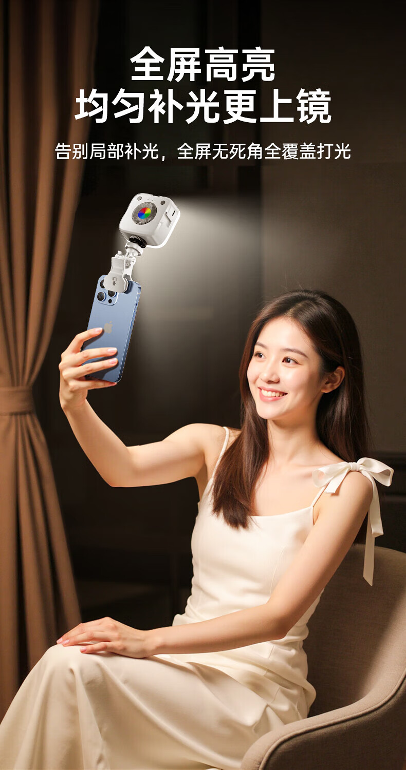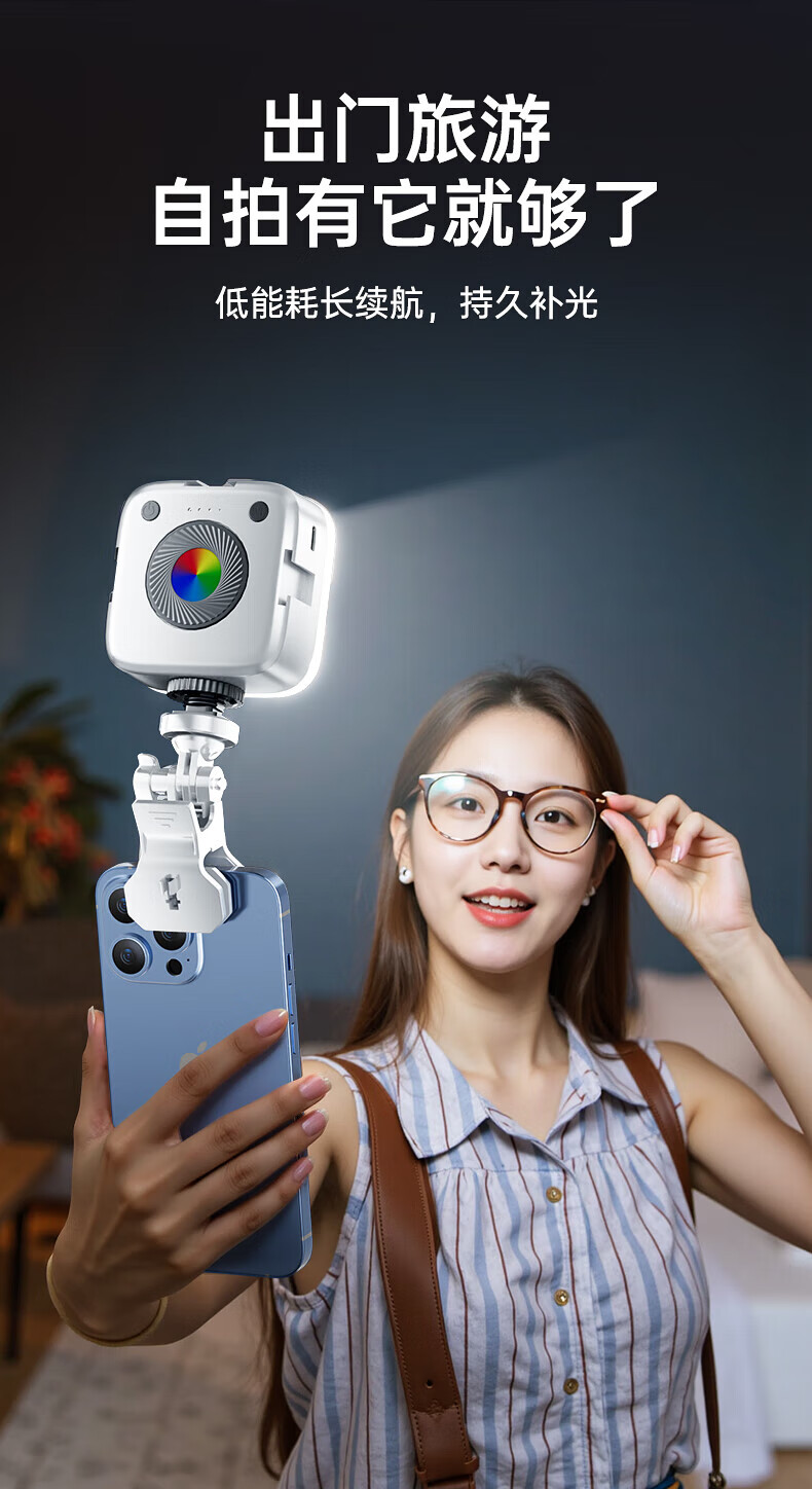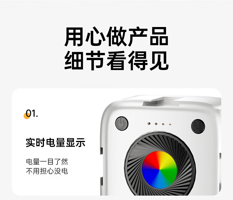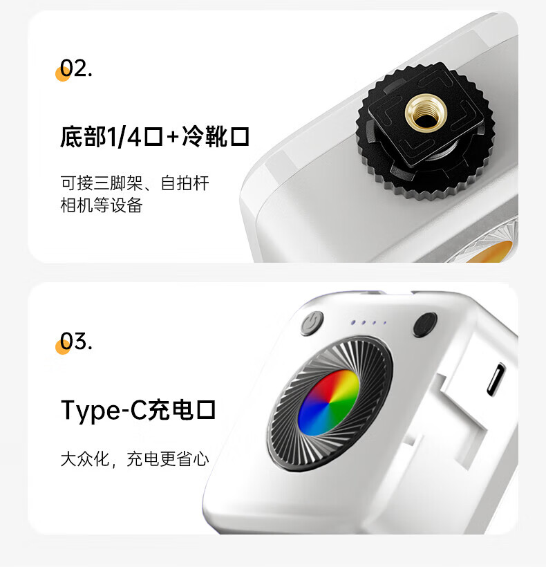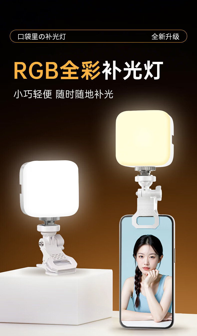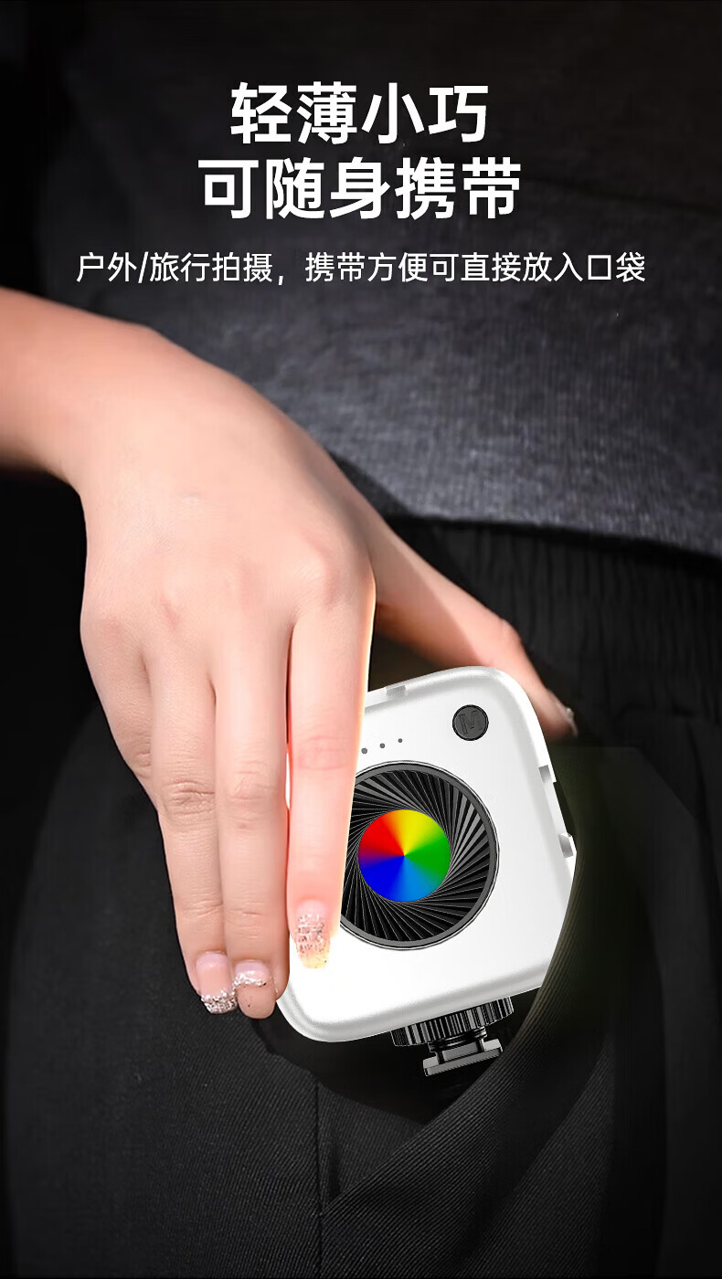 纪曼图【甄选百货】RGB全彩补光灯便携式LED口袋灯手机自拍摄影相机拍照 RGB全彩充电款+1/4夹子云台