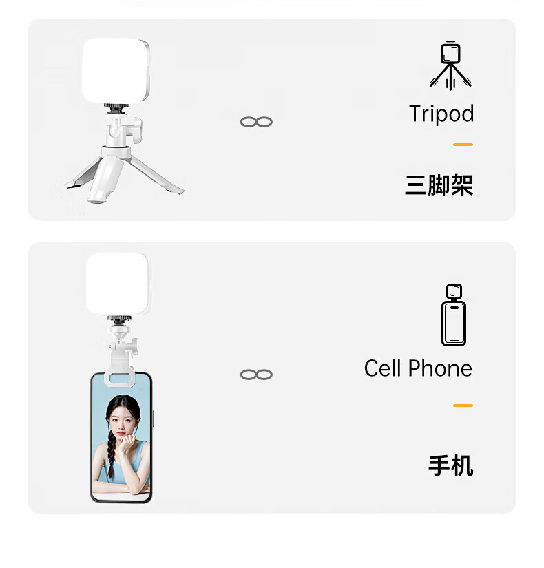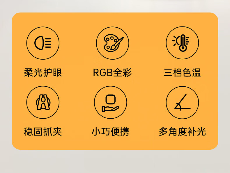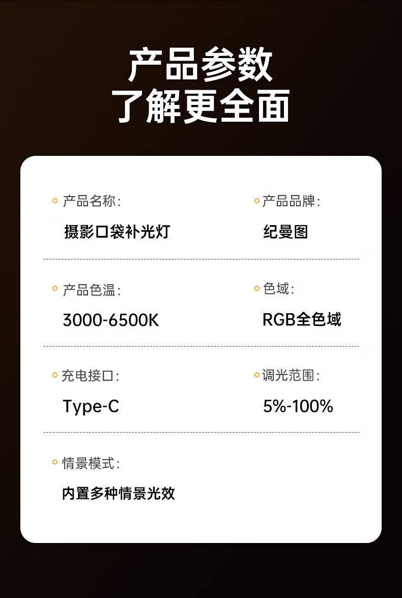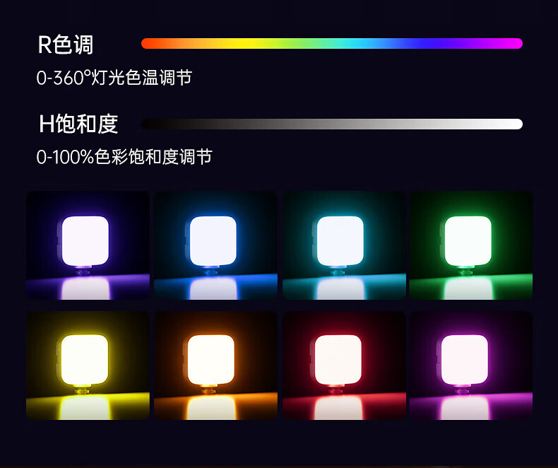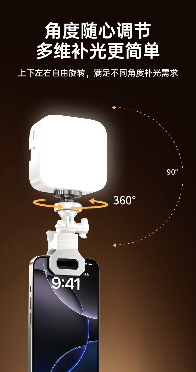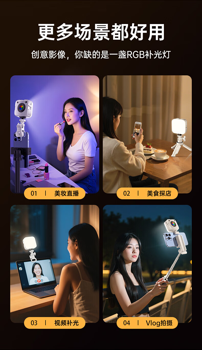 纪曼图【甄选百货】RGB全彩补光灯便携式LED口袋灯手机自拍摄影相机拍照 RGB全彩充电款+1/4夹子云台