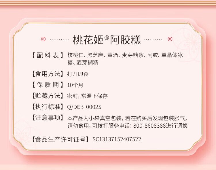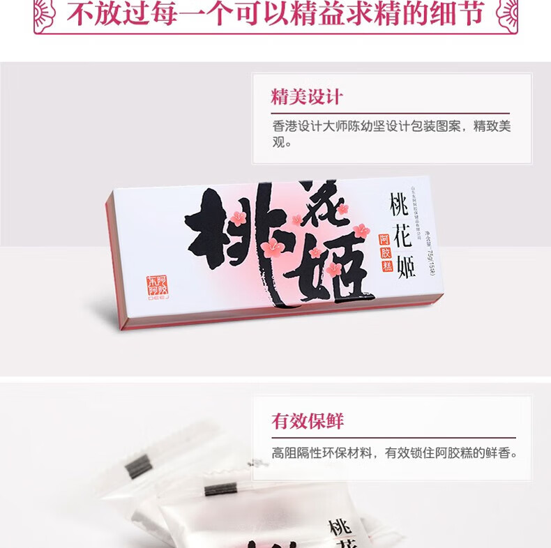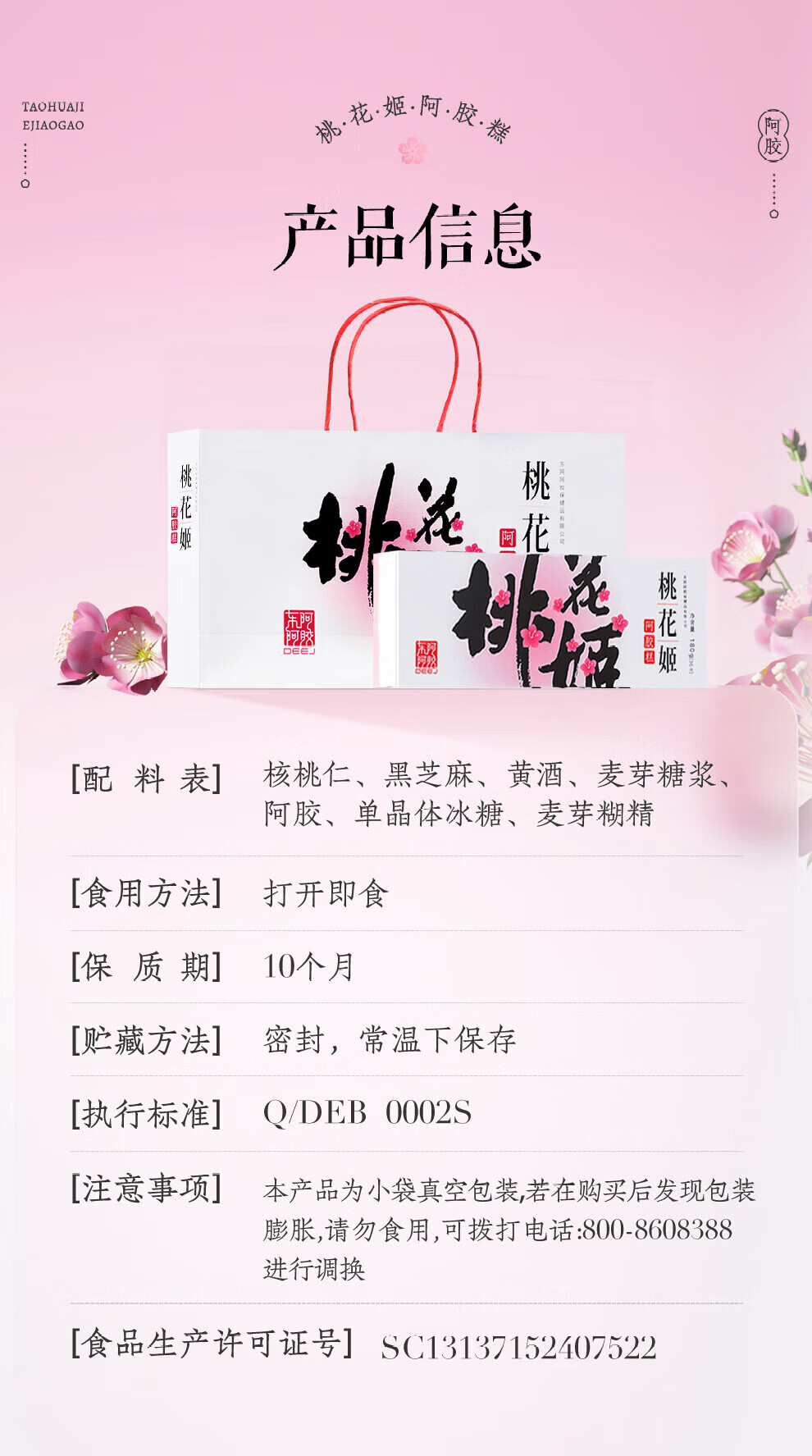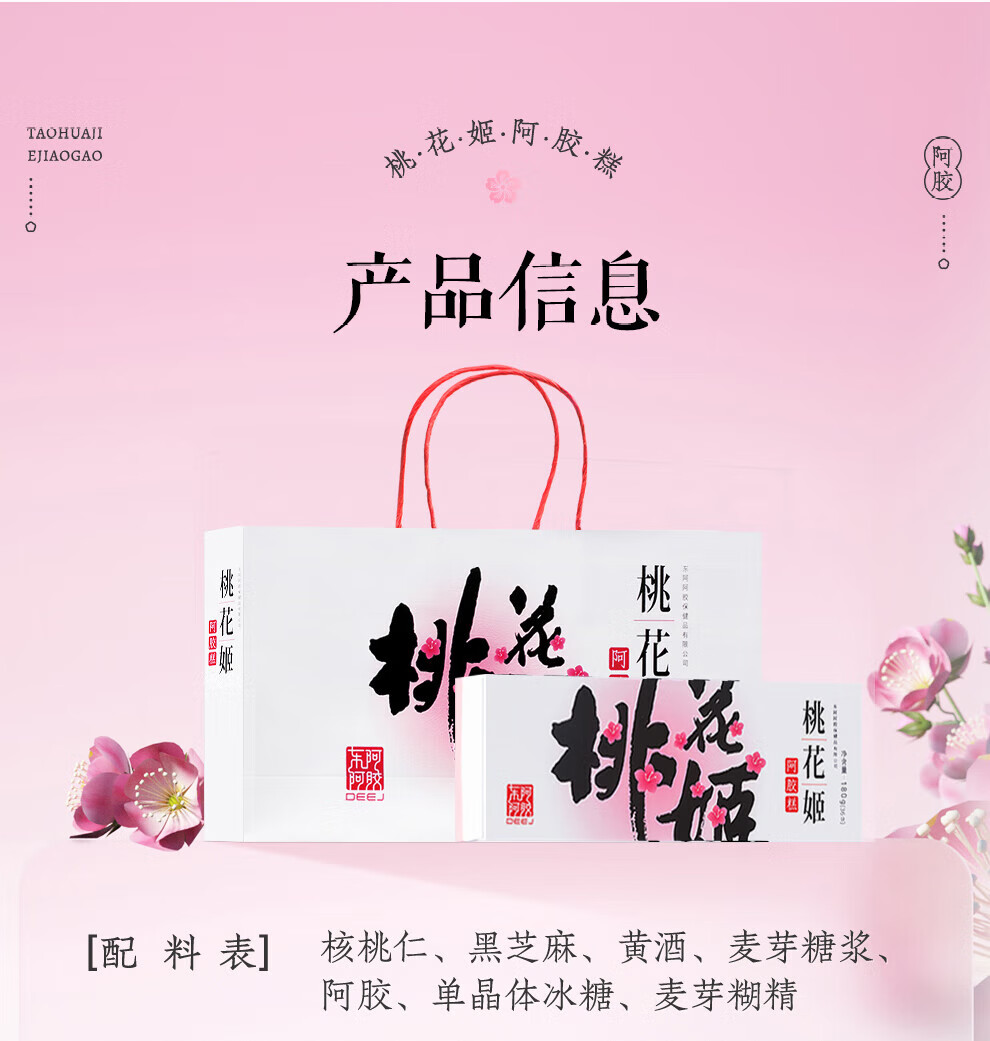 东阿阿胶桃花姬 即食阿胶糕 礼盒营养品 元旦礼物送女生 新年礼物 送长辈 阿胶糕180g*1盒【自吃滋补优选】