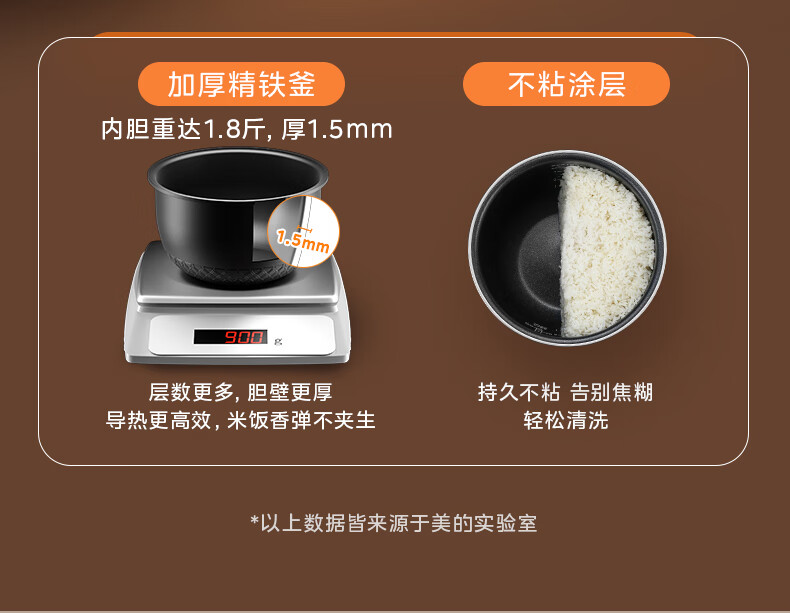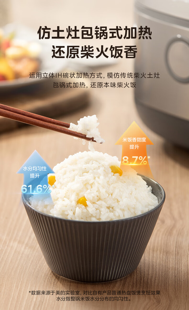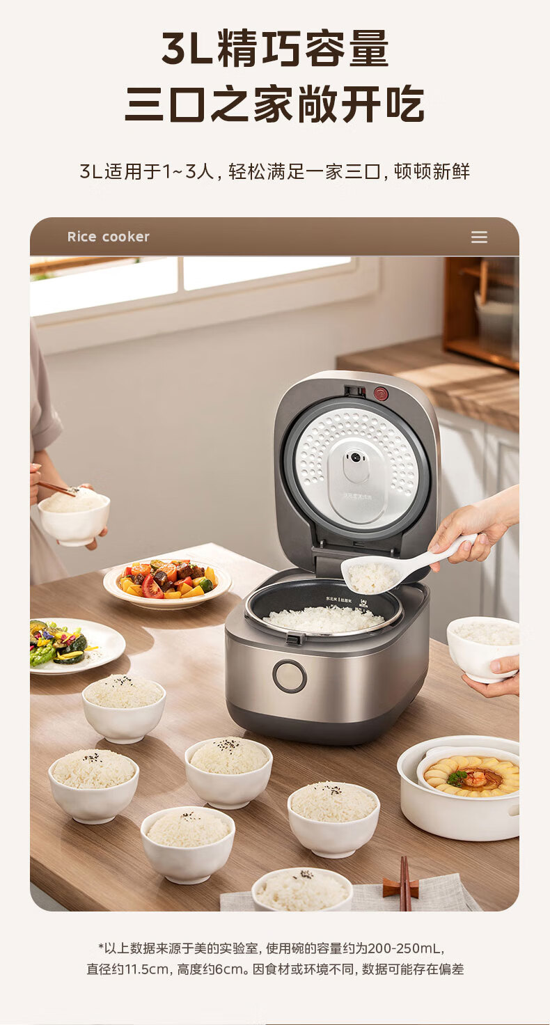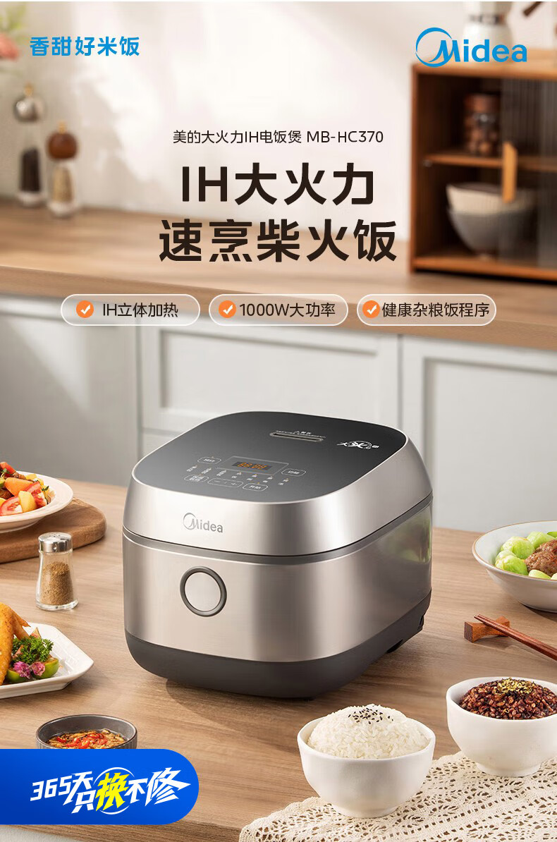 美的(Midea)电饭煲3L IH加热 加厚精铁釜内胆杂粮饭2-3人多功能家用智能预约电饭锅MB-HC370