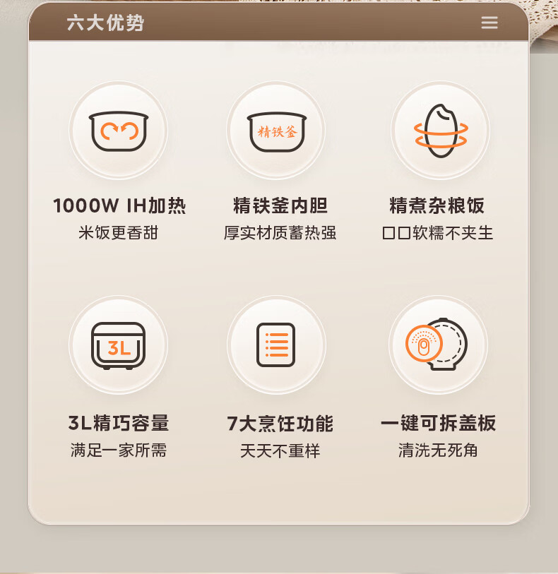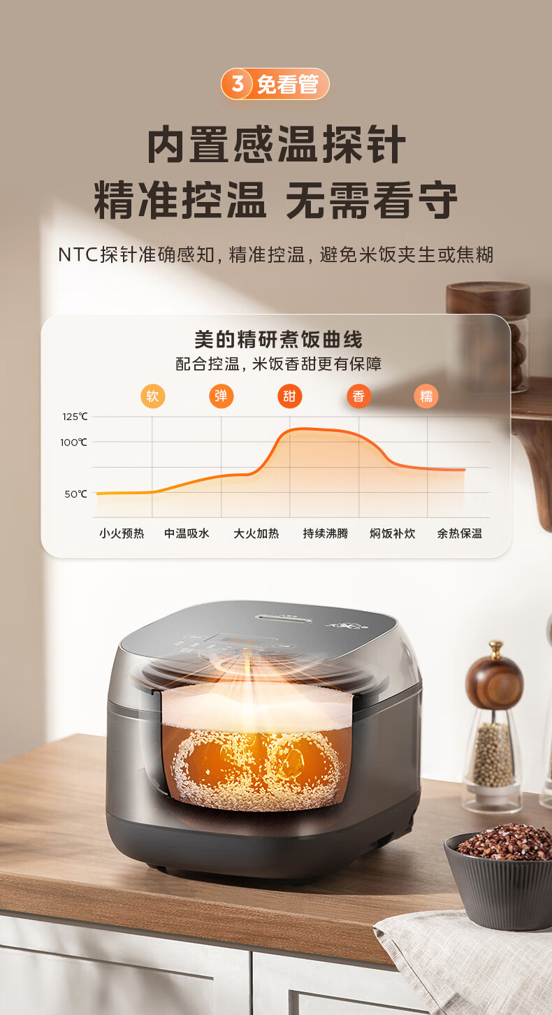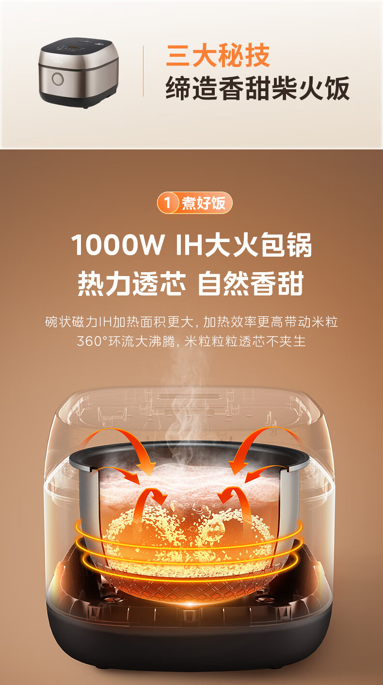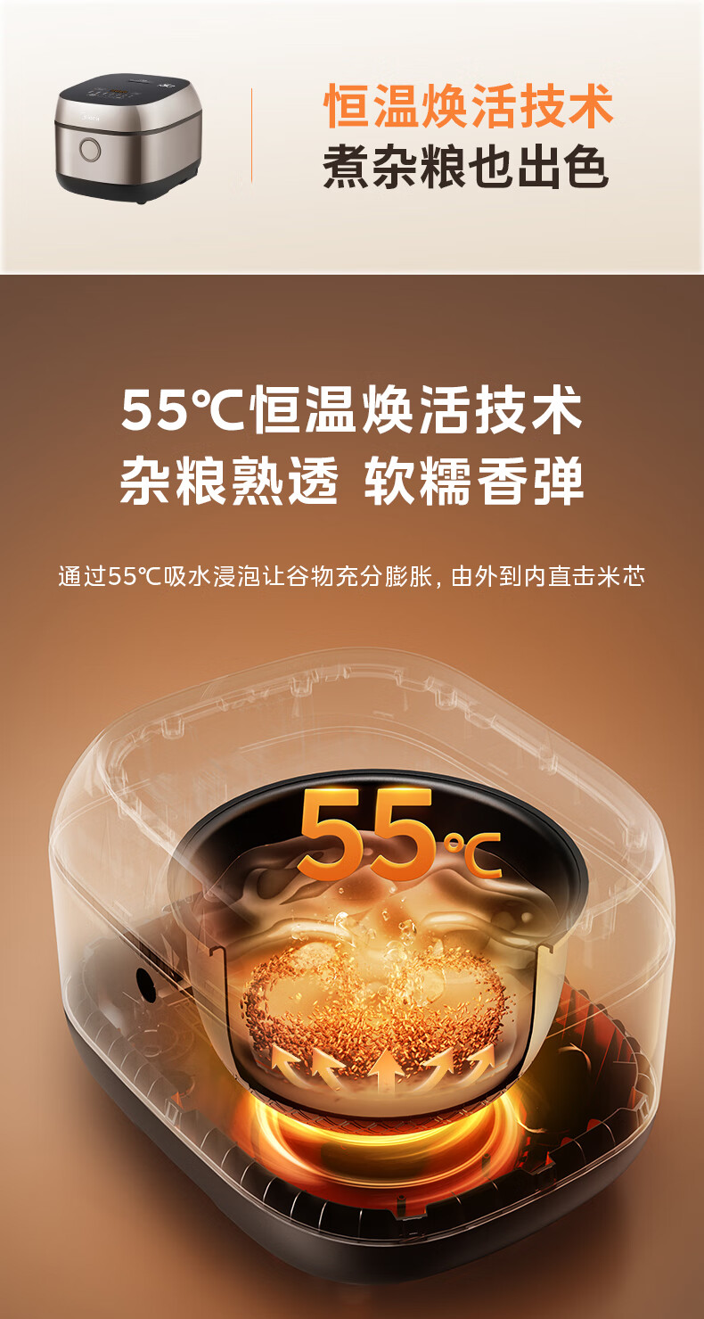 美的(Midea)电饭煲3L IH加热 加厚精铁釜内胆杂粮饭2-3人多功能家用智能预约电饭锅MB-HC370
