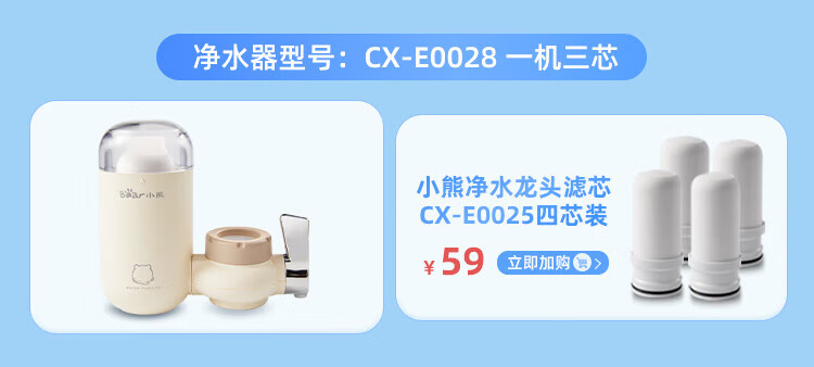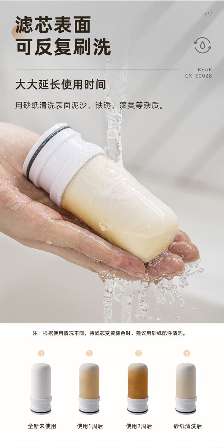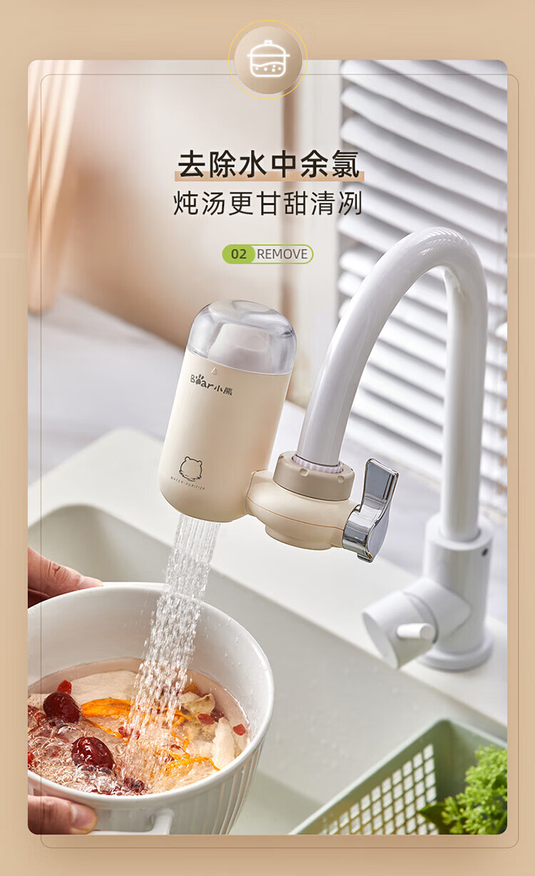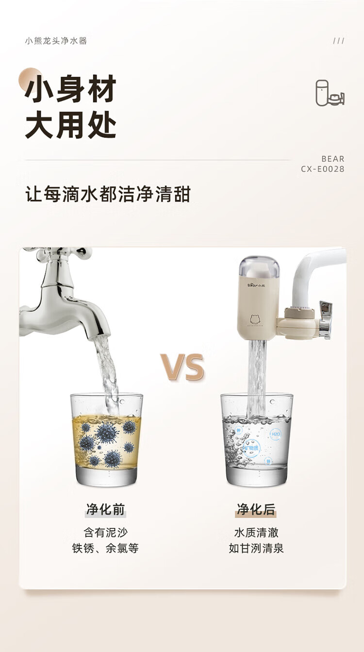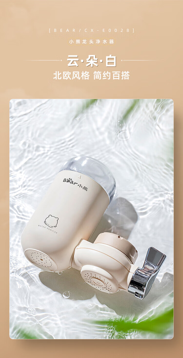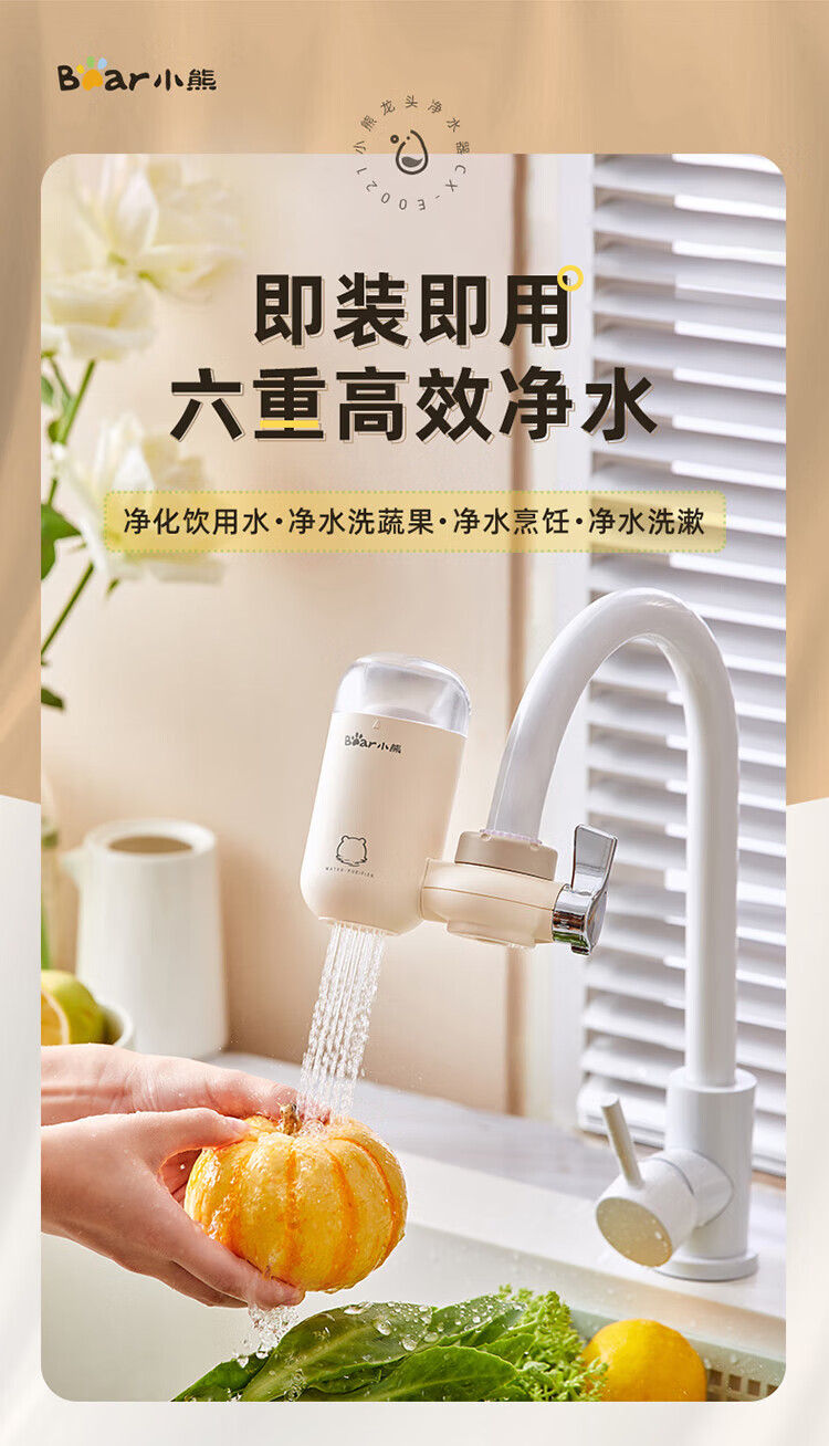 小熊(Bear)净水器水龙头 家用自来水前置过滤器净水机净化器一体 厨房净化可清洗滤芯滤水器 CX-E0028 1机3芯