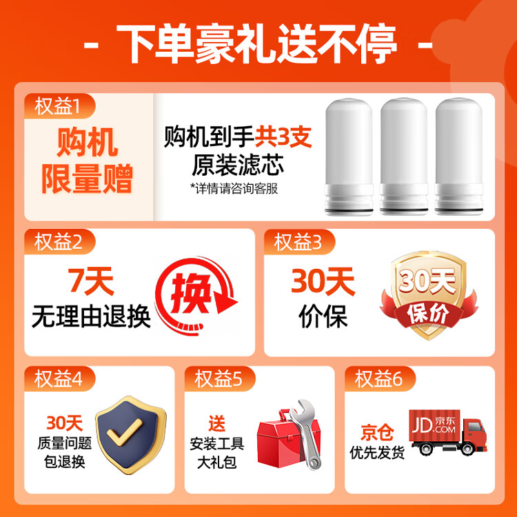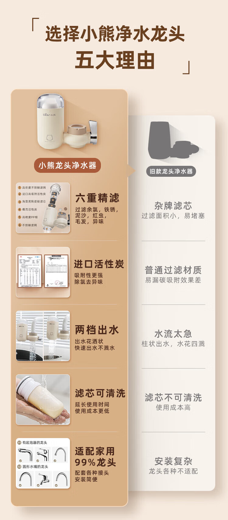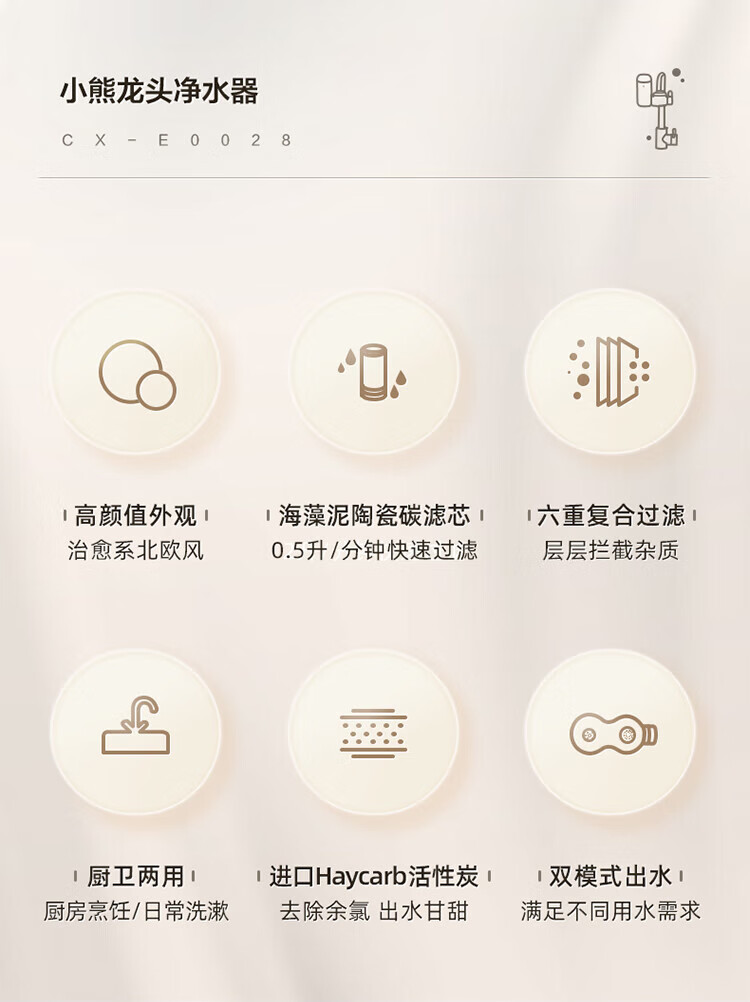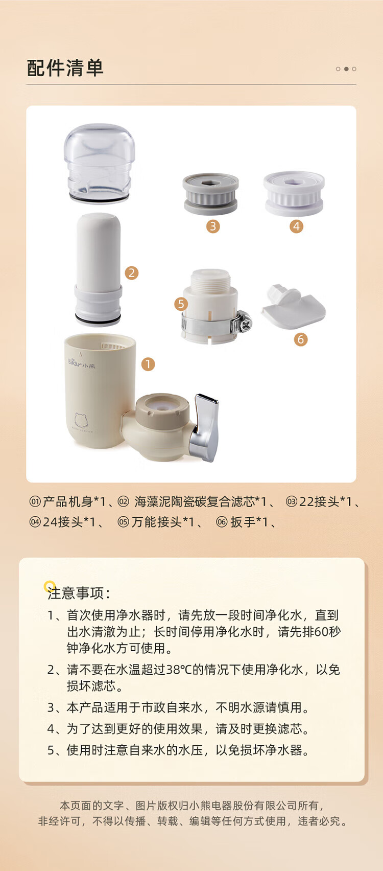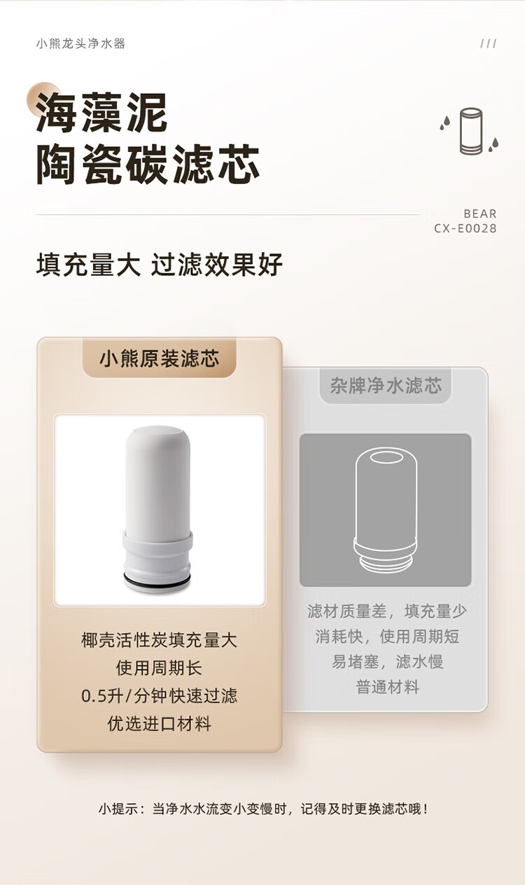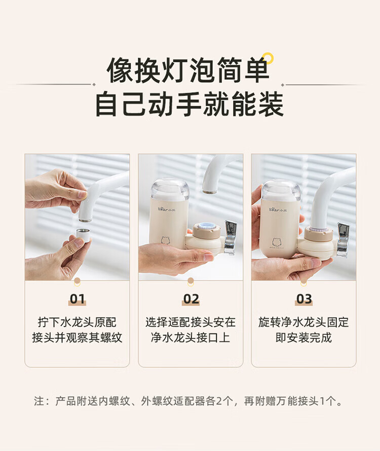 小熊(Bear)净水器水龙头 家用自来水前置过滤器净水机净化器一体 厨房净化可清洗滤芯滤水器 CX-E0028 1机3芯