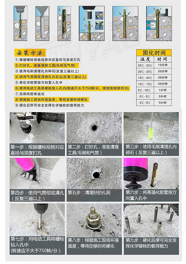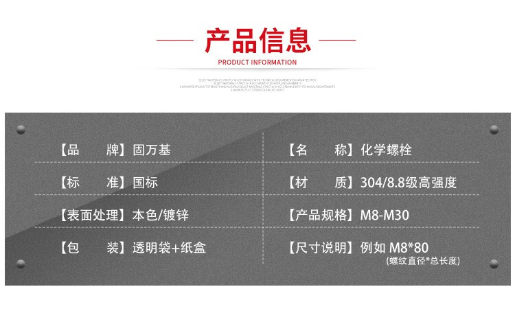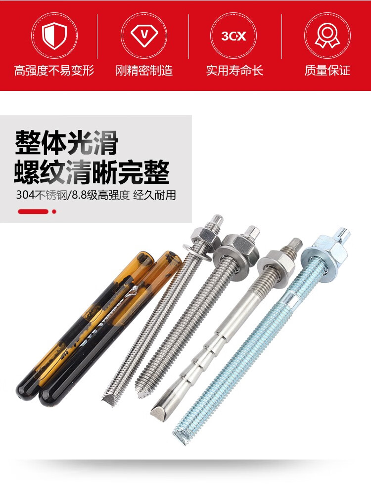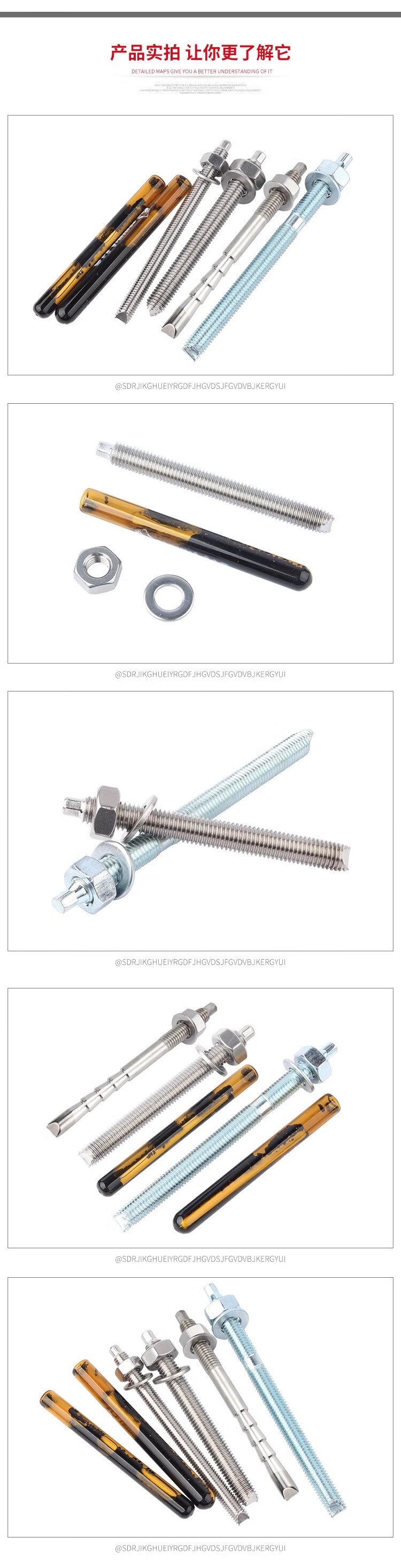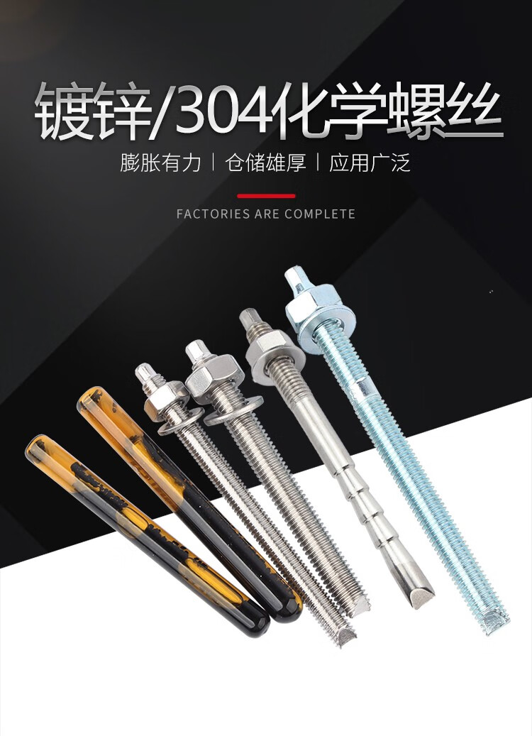 固万基 304不锈钢化学膨胀螺栓化学锚栓药剂倒锥化学螺丝加长M8M10M12M30紧固件大全 (8.8级)化学螺栓+药剂 M16x190[1套]