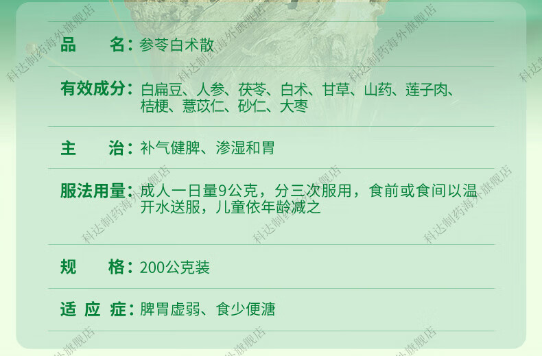 【科达制药 官旗正品】参苓白术散颗粒200g 补气健脾胃虚弱食少便溏汉方中成药非日本
