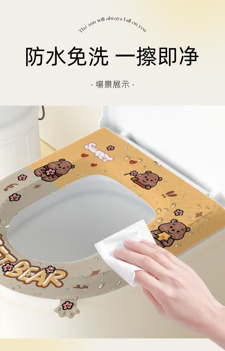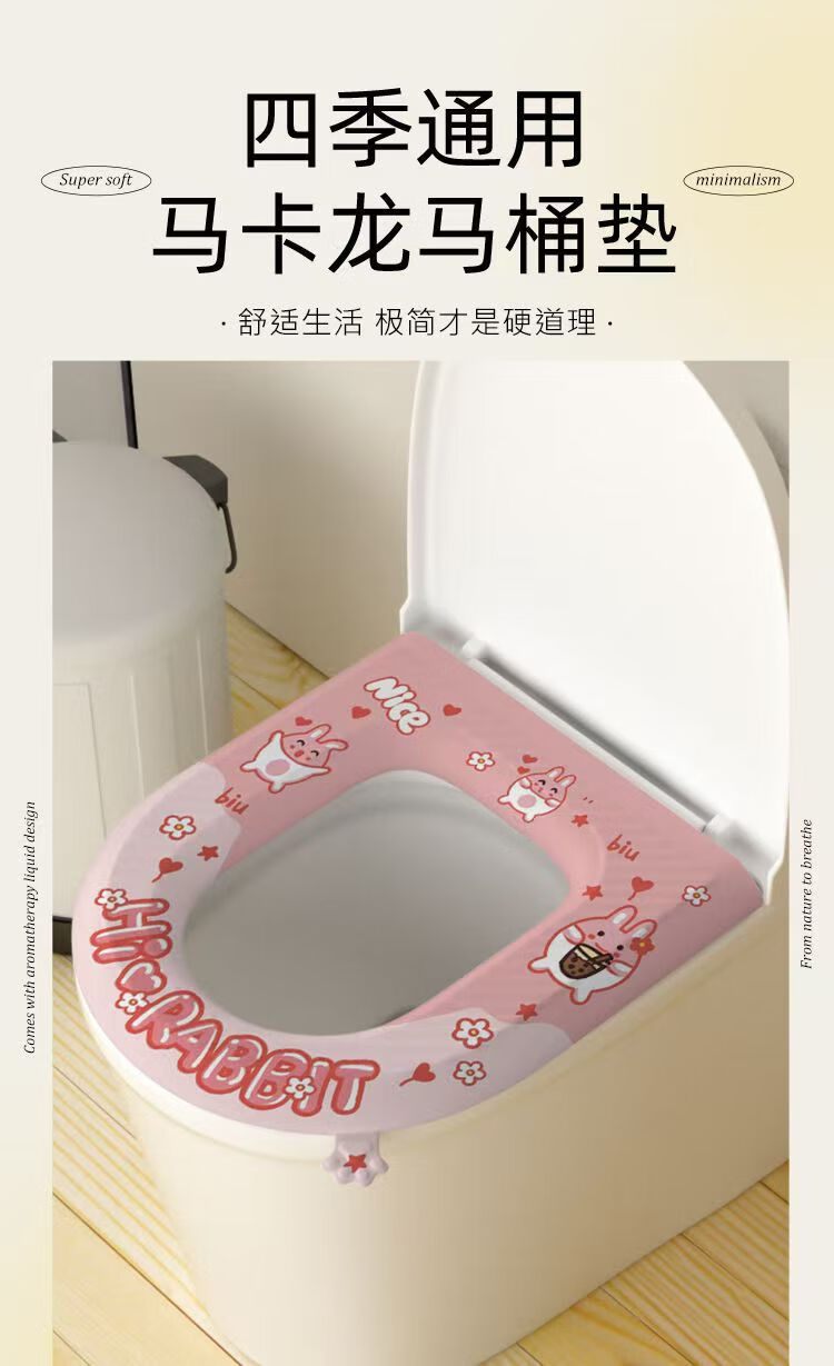 WuEVA防水加厚马桶坐垫四季通用坐便垫马桶坐便圈垫马桶垫子通用款 粉色兔子
