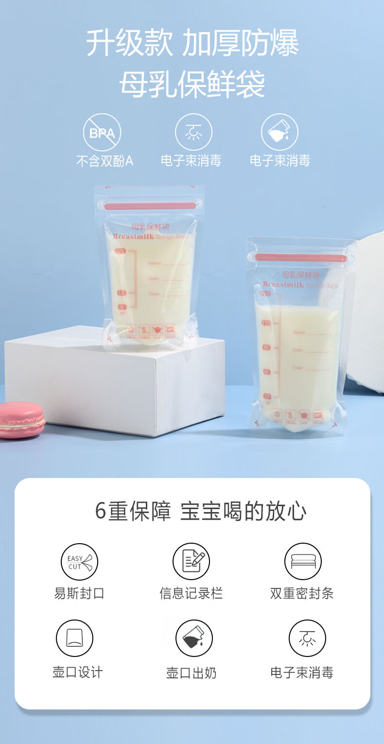 储奶袋一次性便携装奶袋母乳存奶保鲜袋奶水冷冻存乳袋100ML150ML 100ML*60片送记号笔