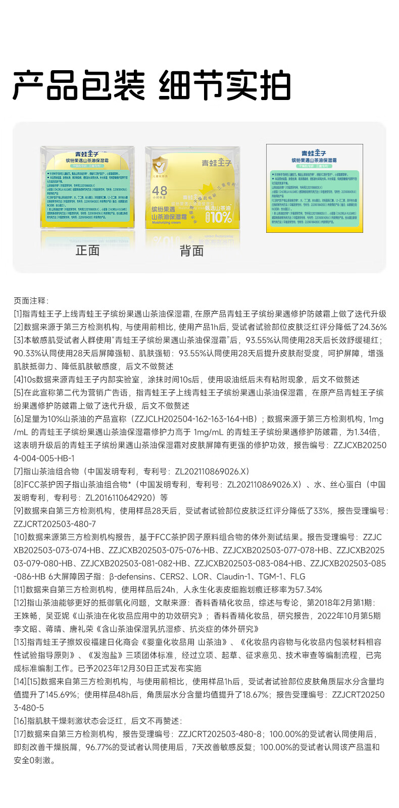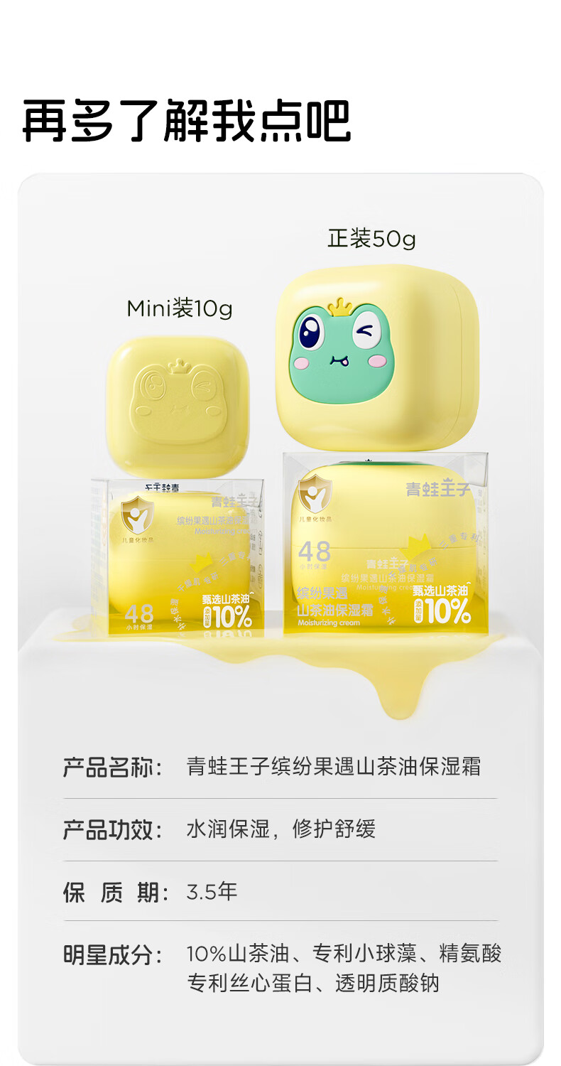 青蛙王子儿童山茶油面霜舒缓补水保湿 3-6-12岁宝宝修护润肤霜面霜50g