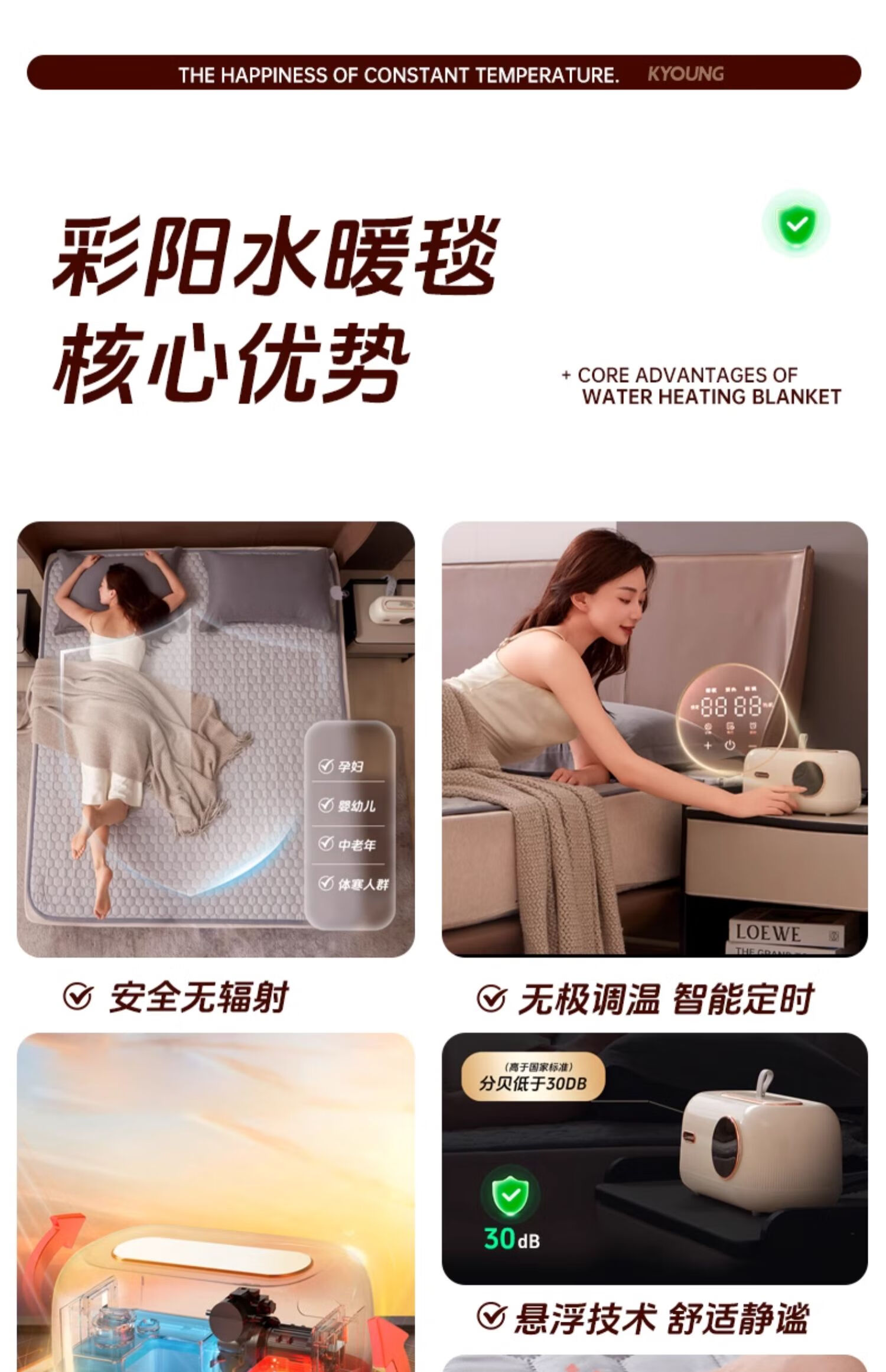彩阳智能水暖毯数码静音电热毯超声波定时除螨控温单双人电褥子 遥控升级款-超声波静音 双人加大 200cm*180cm