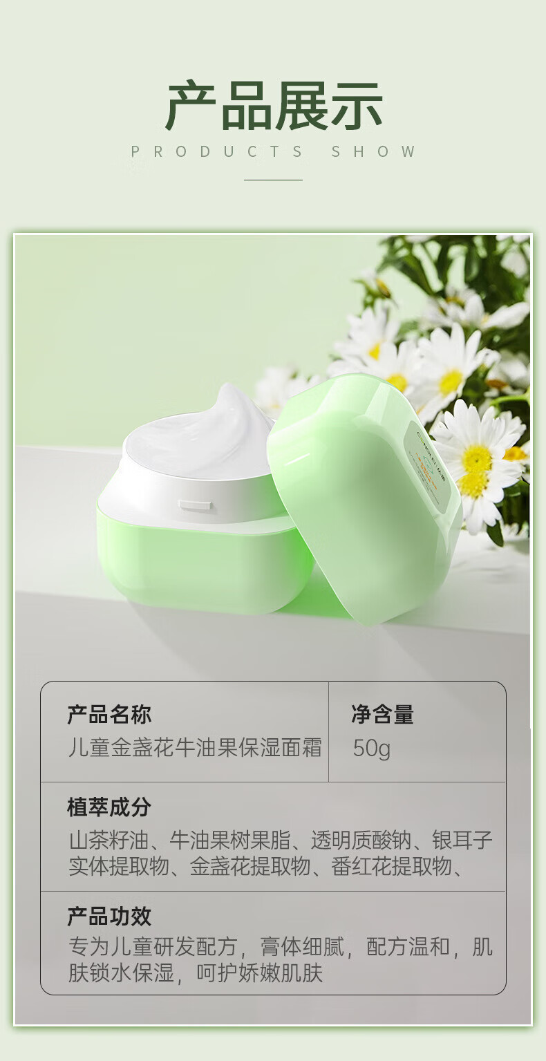 丛蕾儿金盏花牛油果面霜秋冬保湿宝宝专用 白色 50g