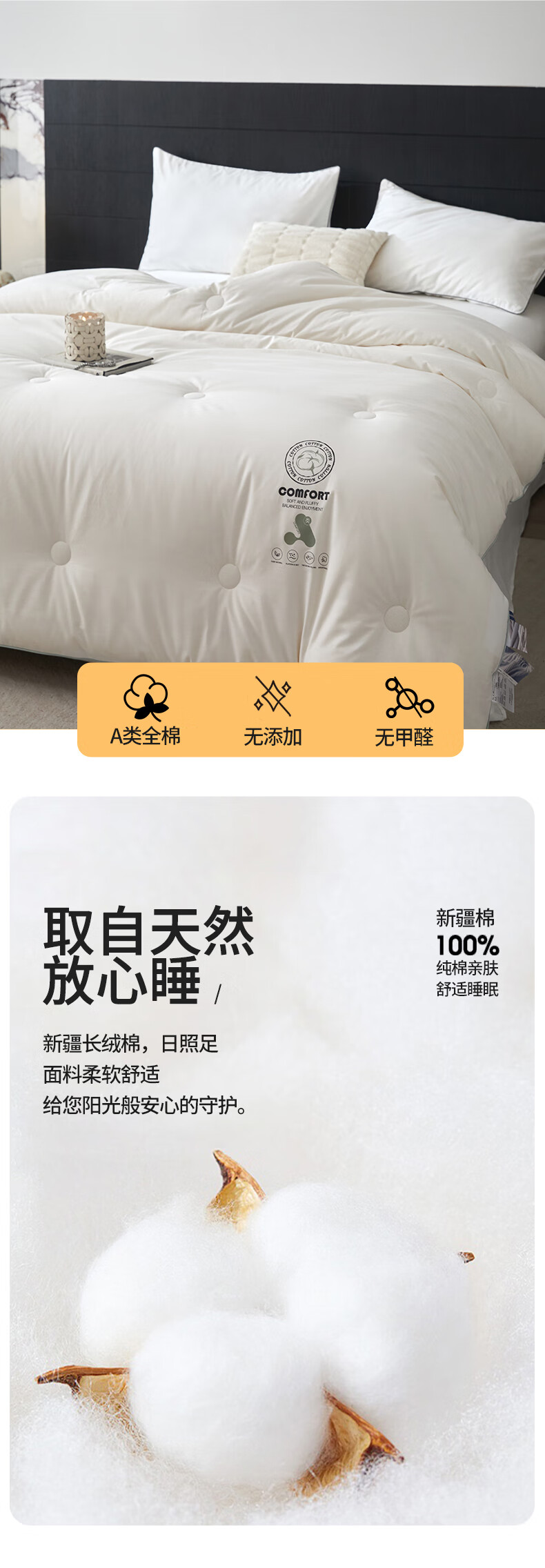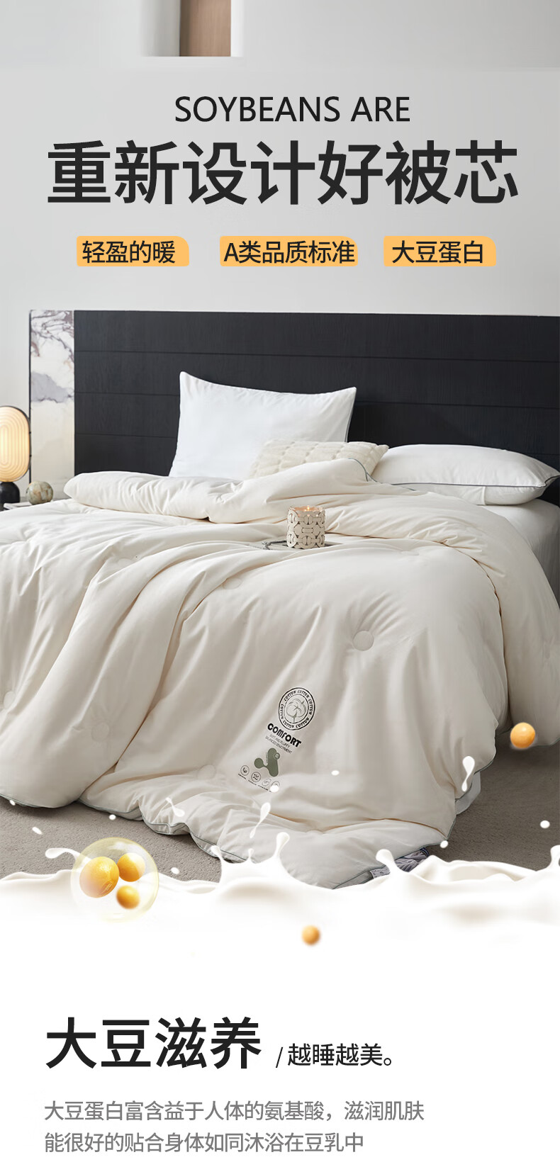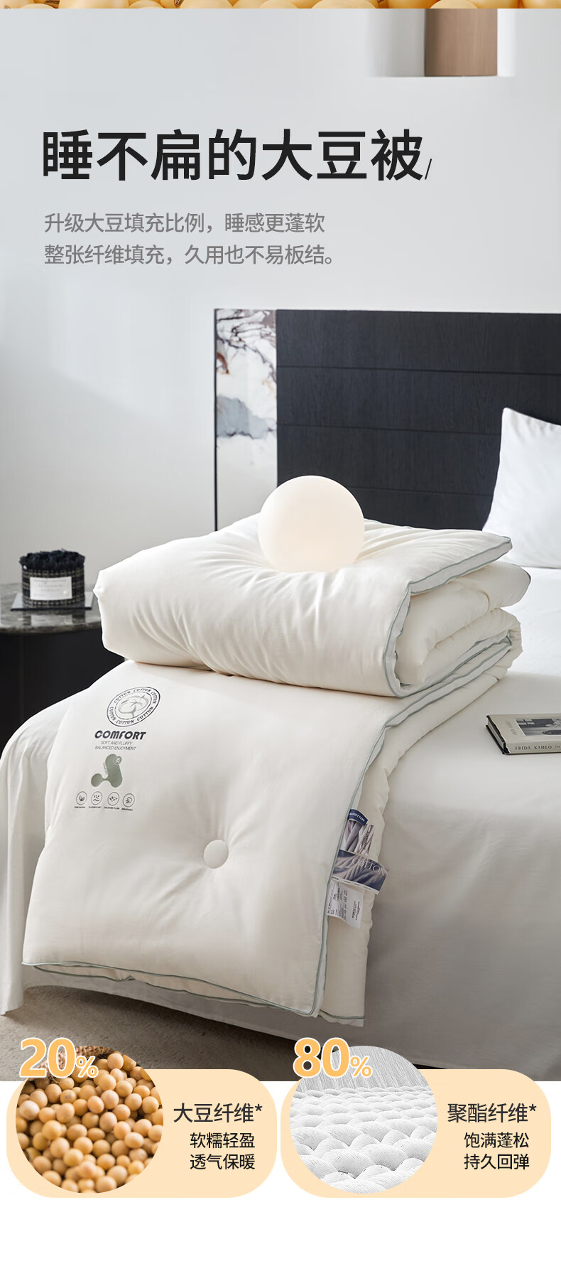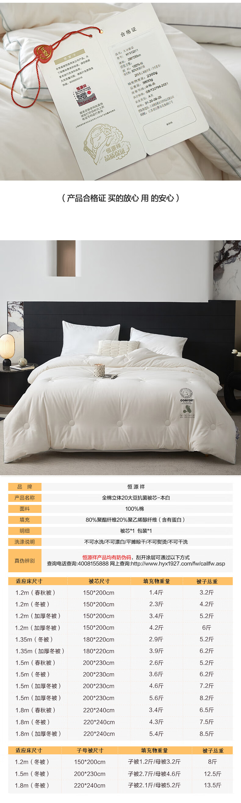 恒源祥大豆纤维被褥A类全棉立体20大豆被芯抗菌被子母被芯软糯舒适被芯 全棉立体20大豆抗菌被芯-本白 150cm*200cm 春秋被