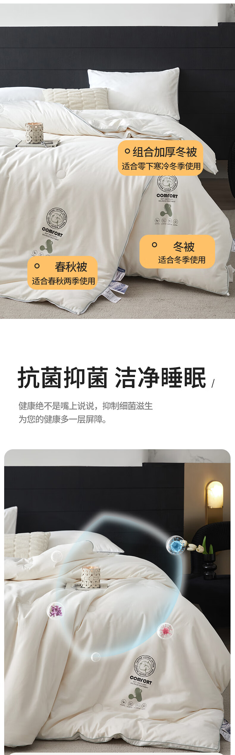 恒源祥澳洲羊毛被春秋被冬被芯加厚保暖羊毛单人被子10斤厚棉被褥 白色 150x200cm【4斤夏被】