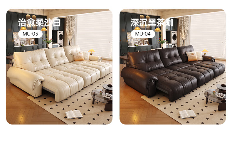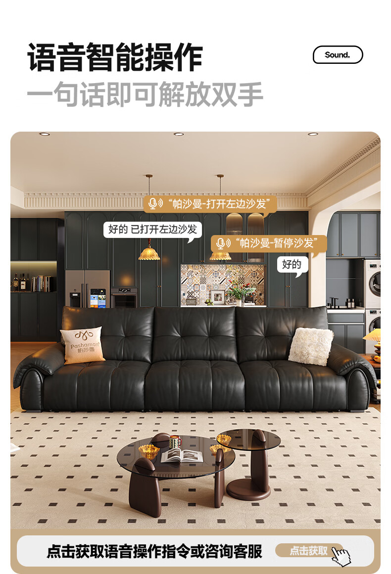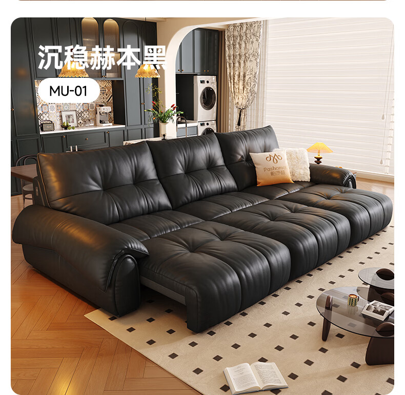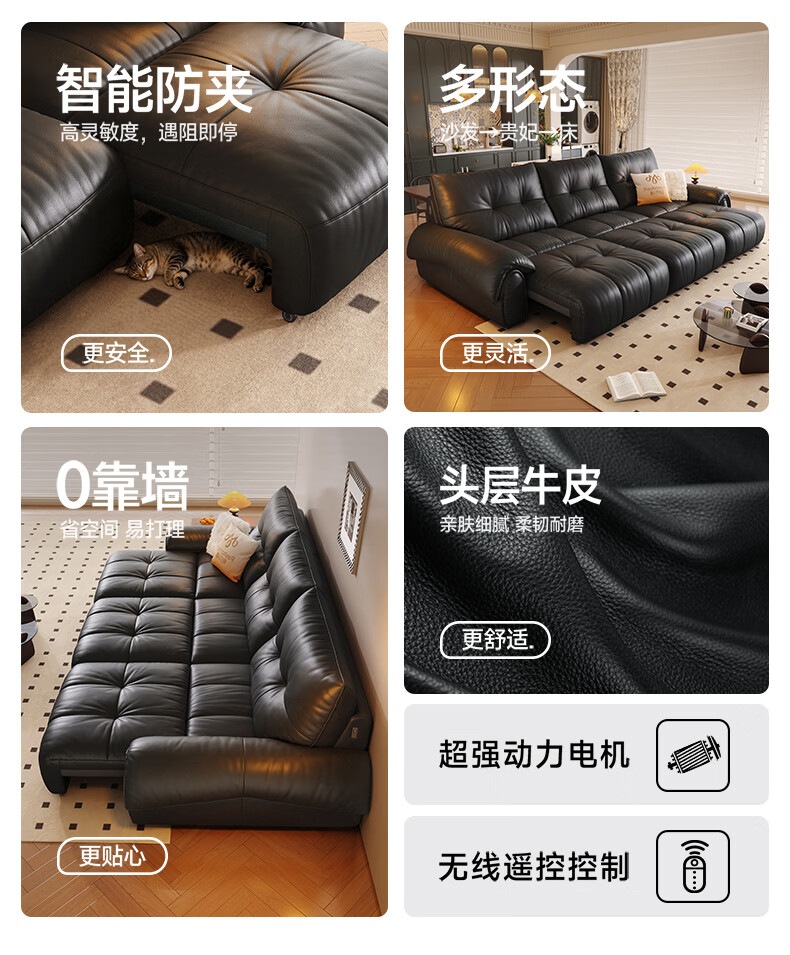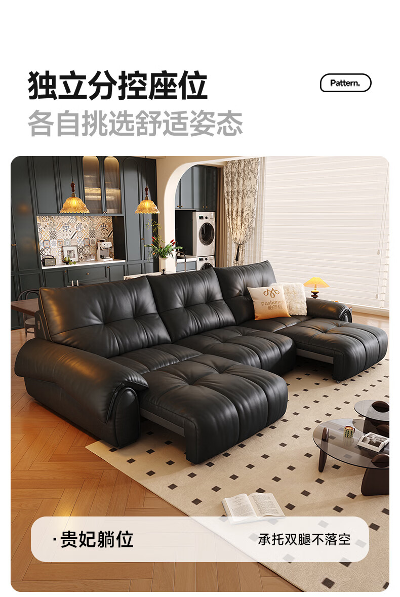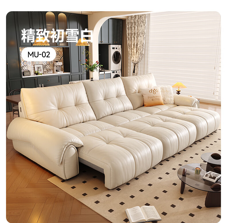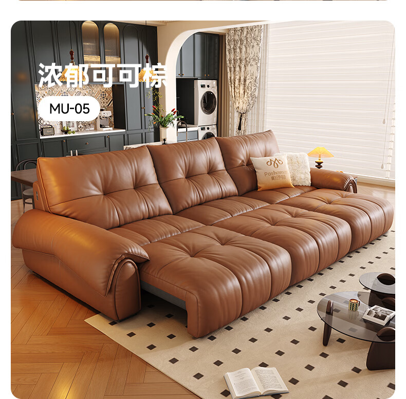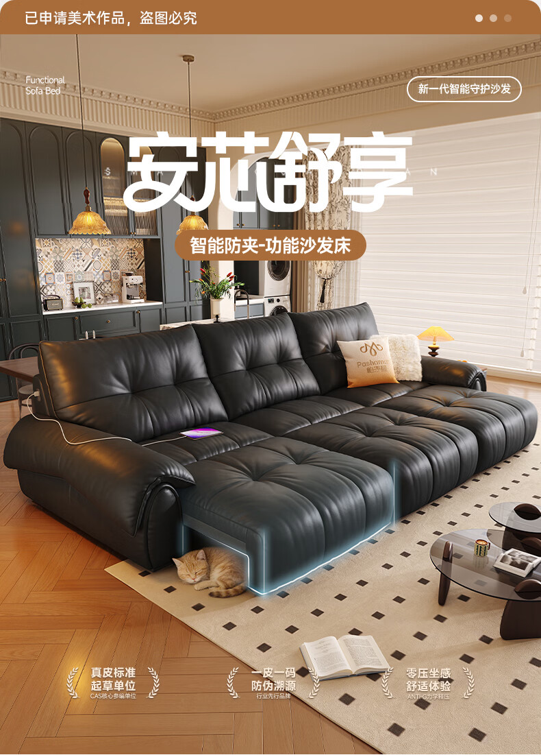 帕沙曼智能防夹功能沙发复古客厅2025新款舒适伸缩真皮电动沙发GF504-C 【三电动+语音+usb】3.37米多人位#防夹 【旗舰版】MU真皮(硅胶棉+紫罗兰+竹炭海绵)