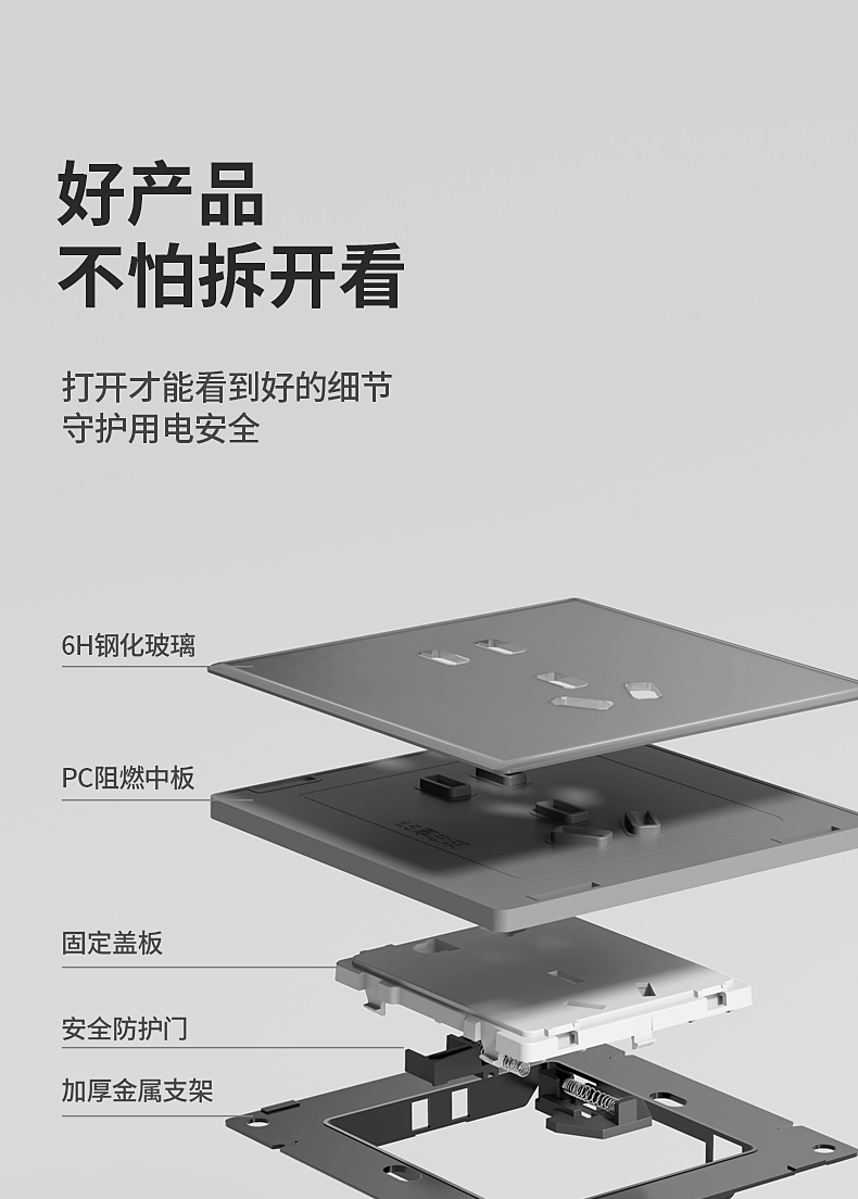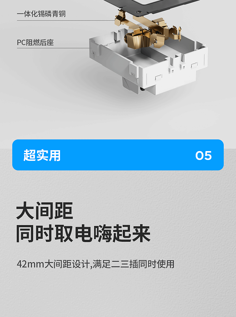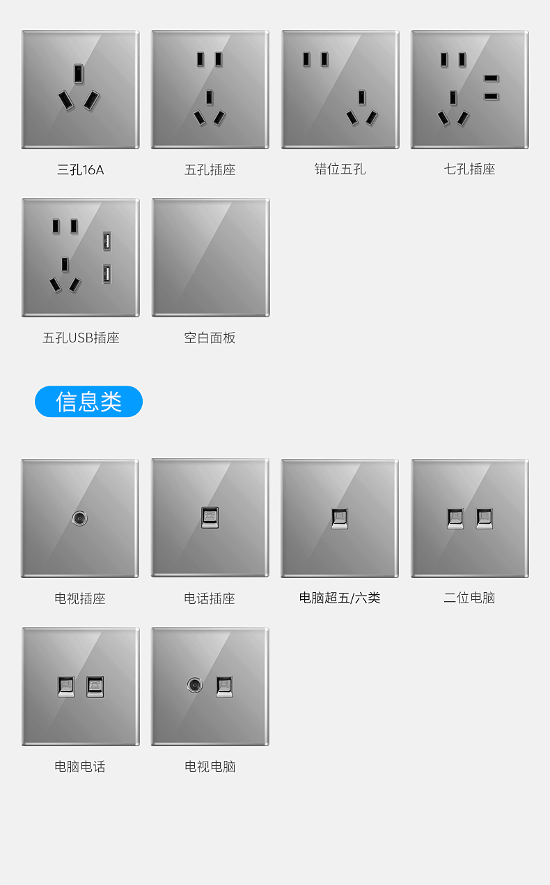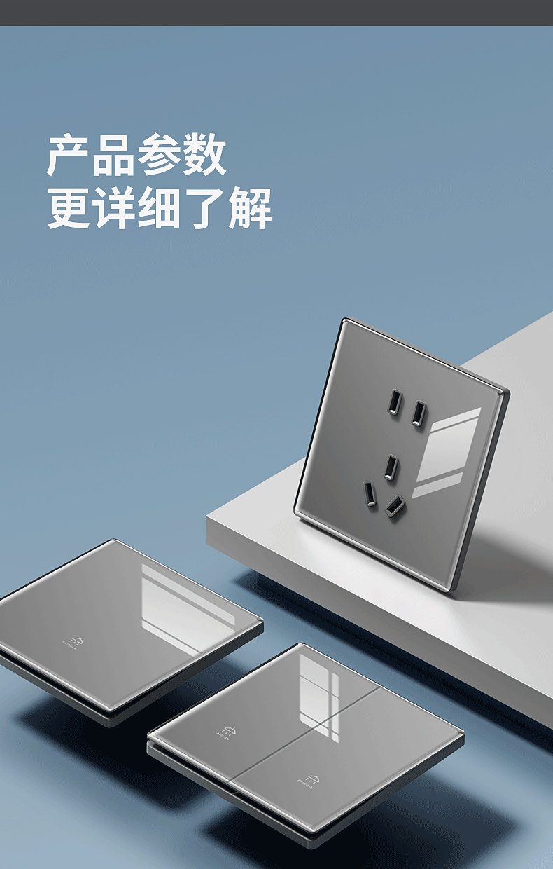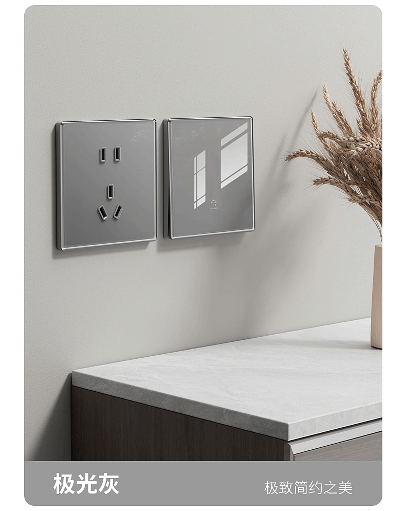 ABB开关插座面板 德典系列皓月灰 磨砂哑光奶油风 无边框 86型电源 斜五孔插座