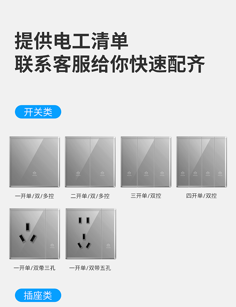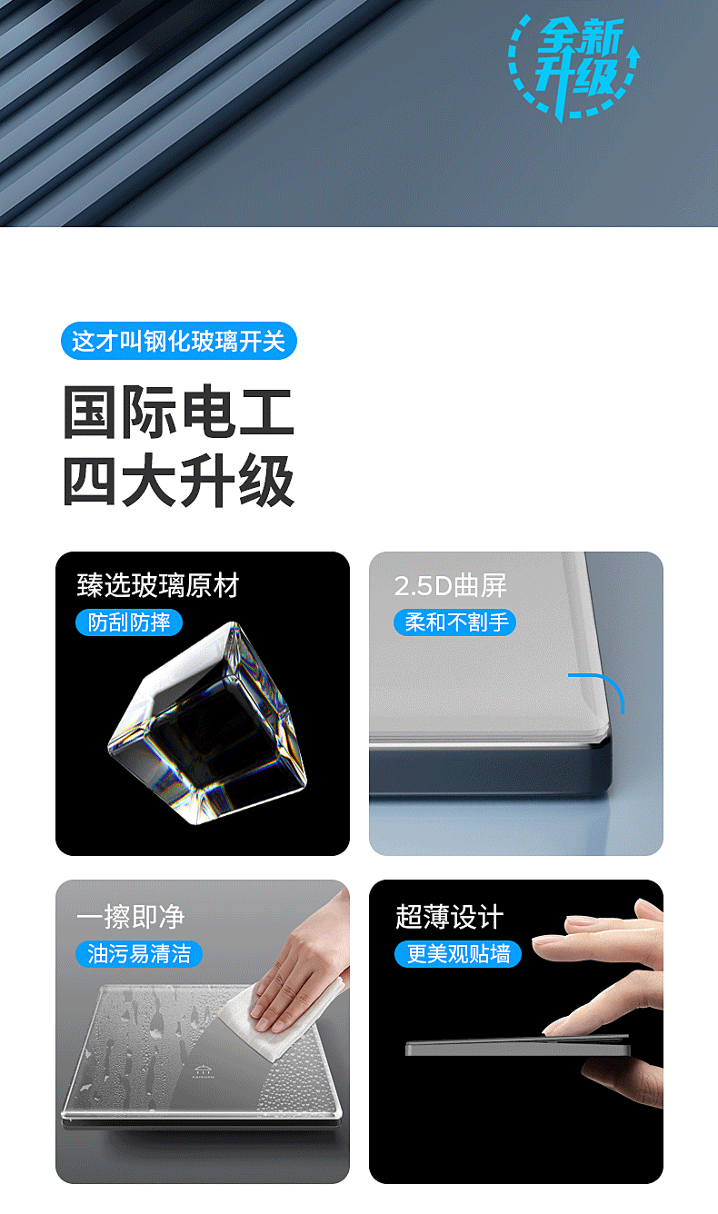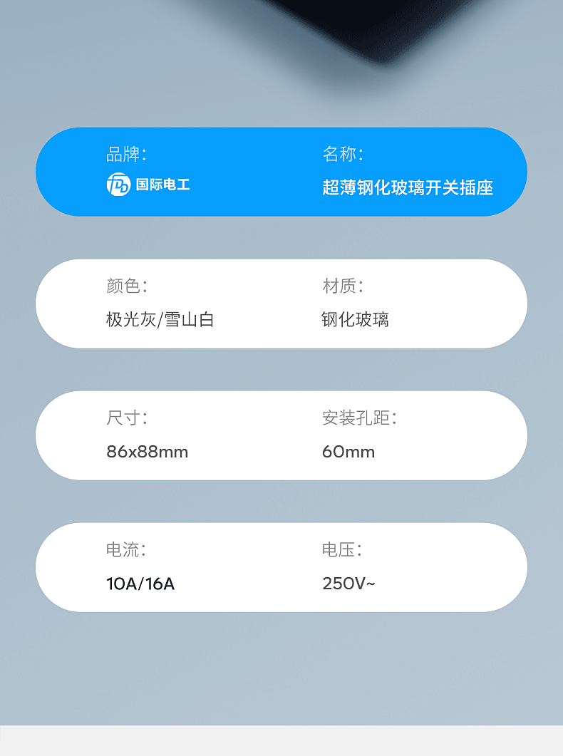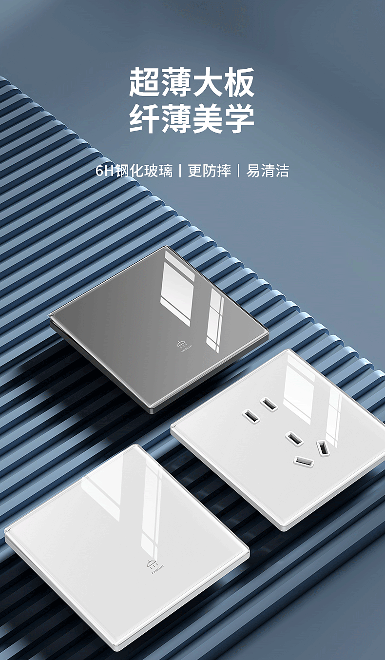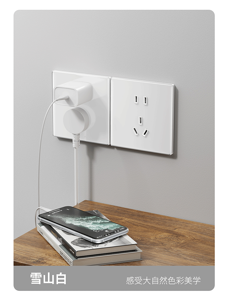 国际电工86型超薄钢化玻璃白色开关插座一开双控面板usb家用电源墙壁电源 四开双控