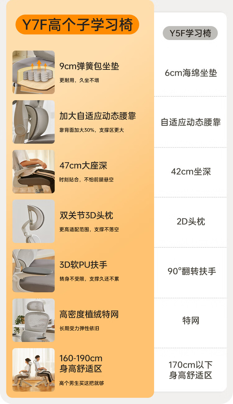 八九间Y7F高中学生学习椅青少年人体工学座椅人工力学办公椅子