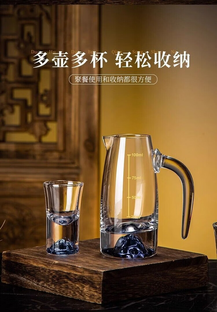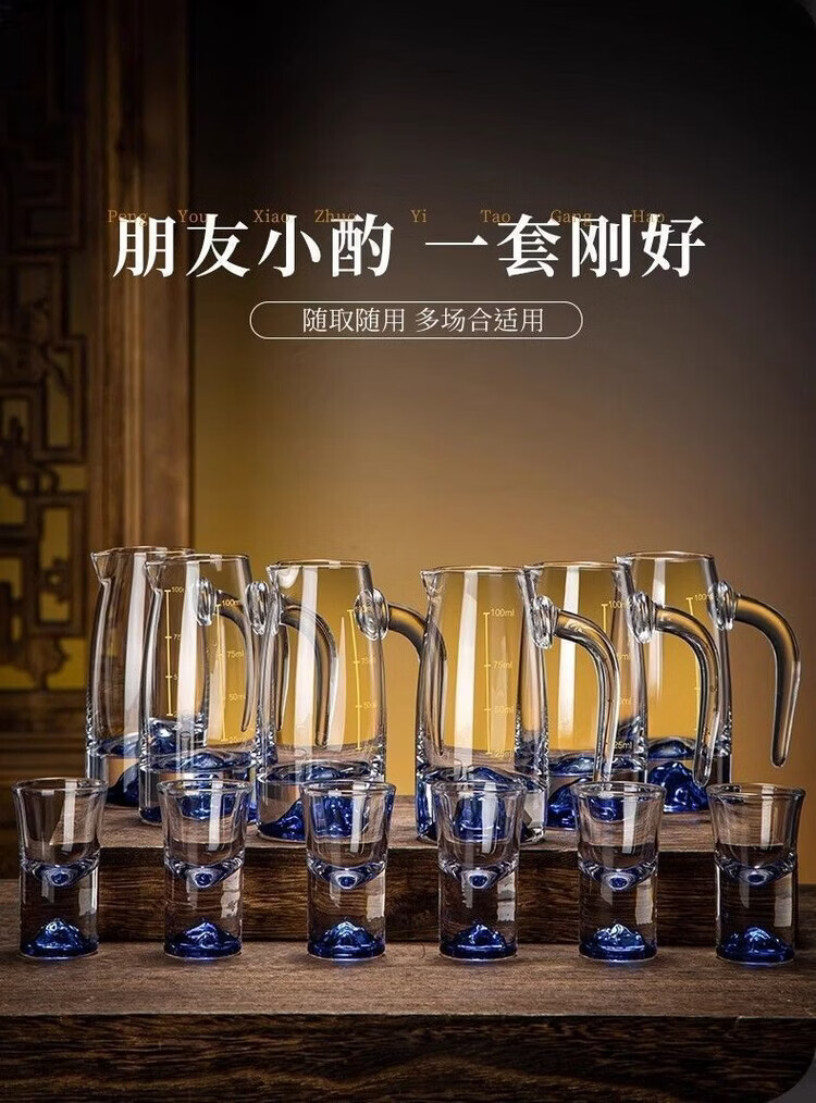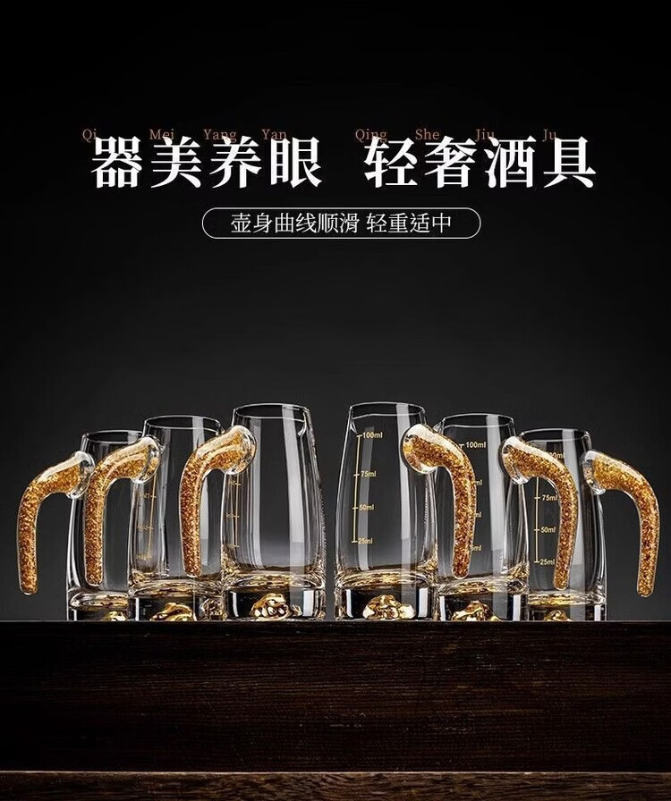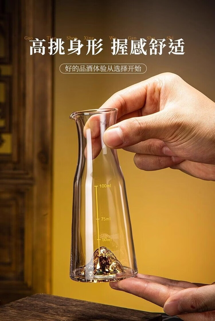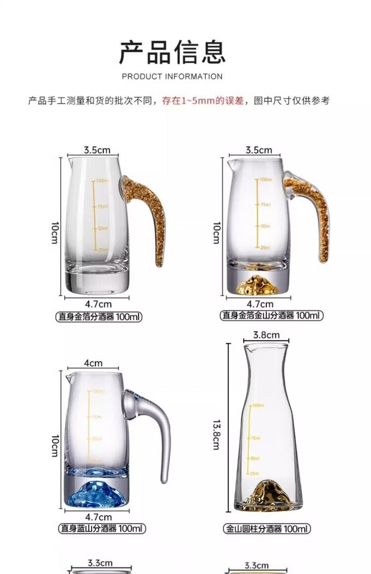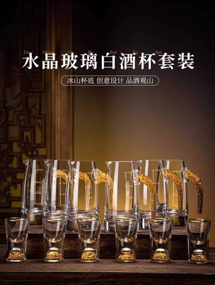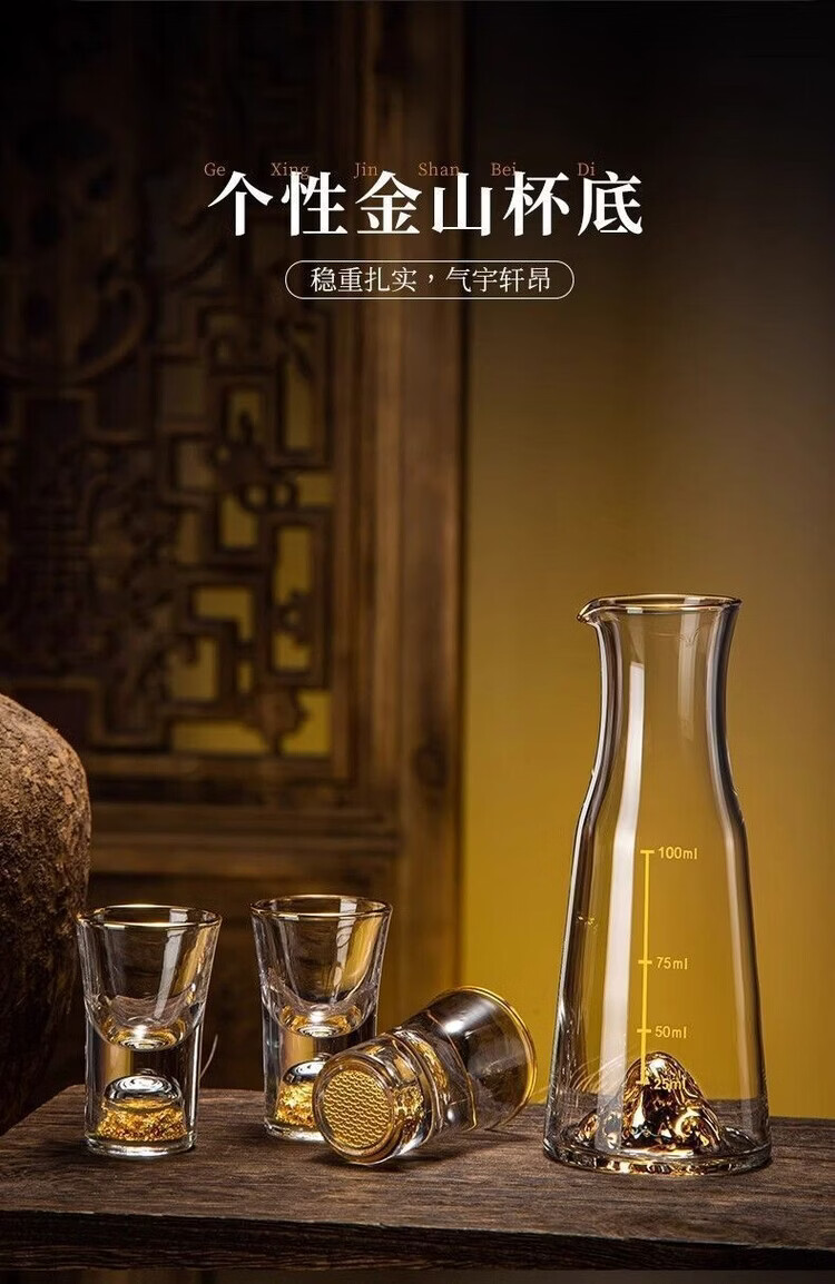 咏夏金箔白酒杯套装玻璃小号一口杯家用水晶金山刻度分酒器酒盅 【1壶2杯】金箔壶+金箔杯