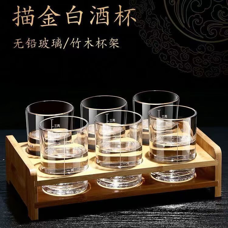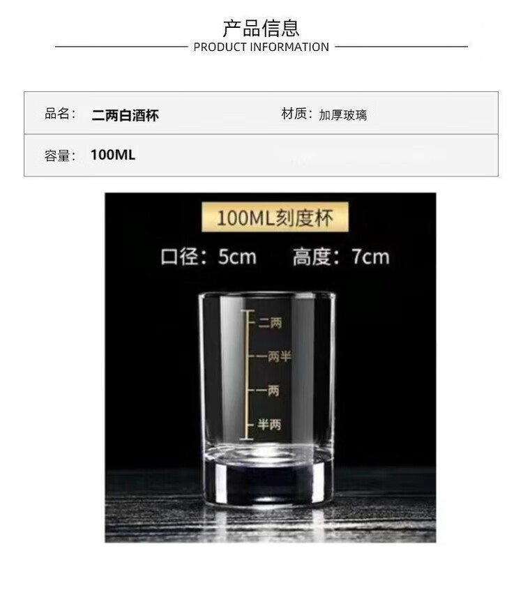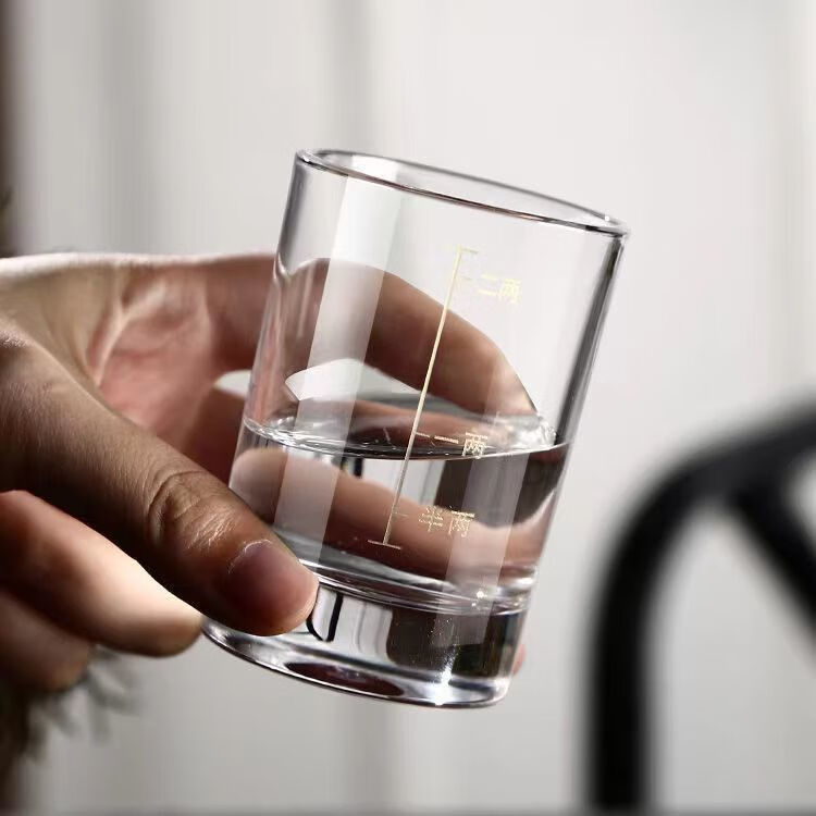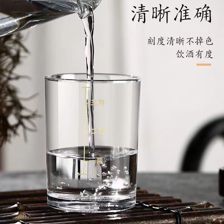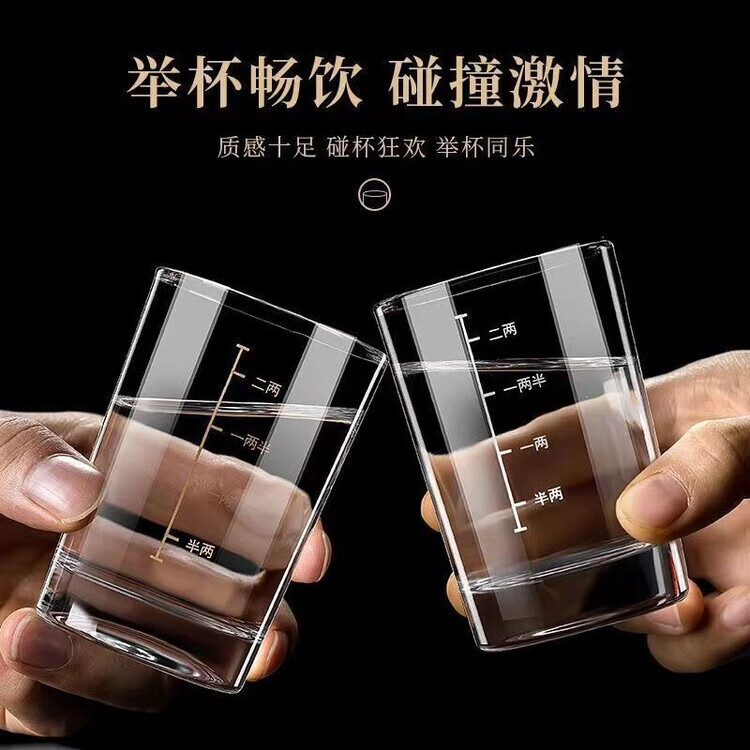 简漾钢化玻璃刻度白酒杯2两酒杯家用老式酒具洋酒烈酒啤酒杯高档酒杯 2只装白酒杯