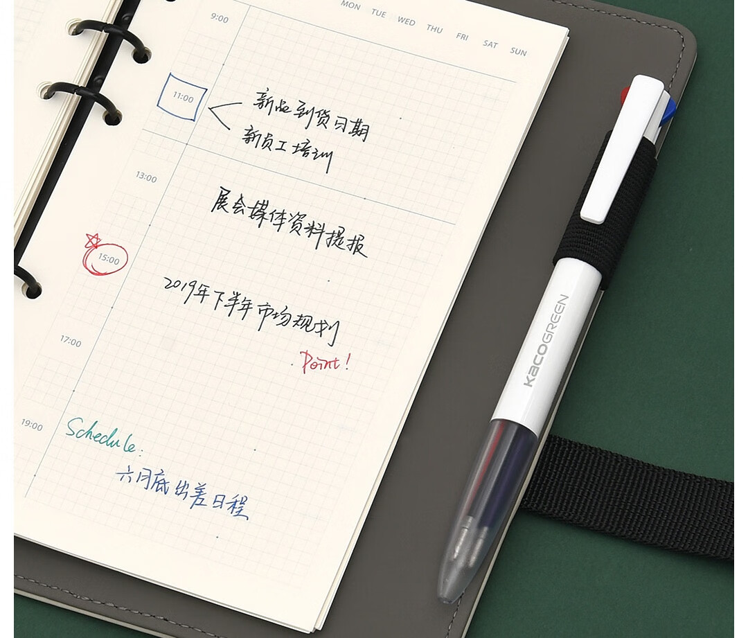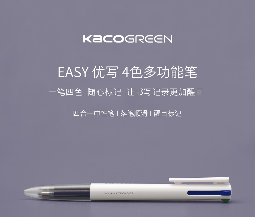 【开学必备】KACO优写 多功能四合一中性笔 按动多色水笔0.5mm简约4色手帐笔彩色签字笔(中性笔2支 4支装替芯1袋)K1041