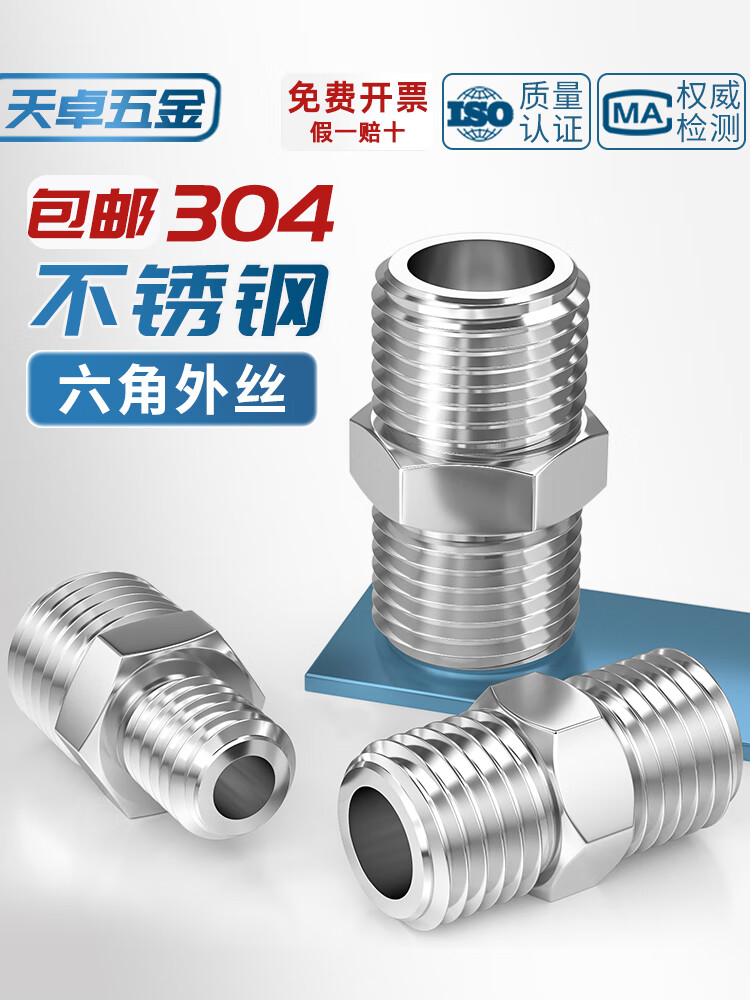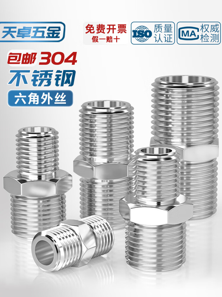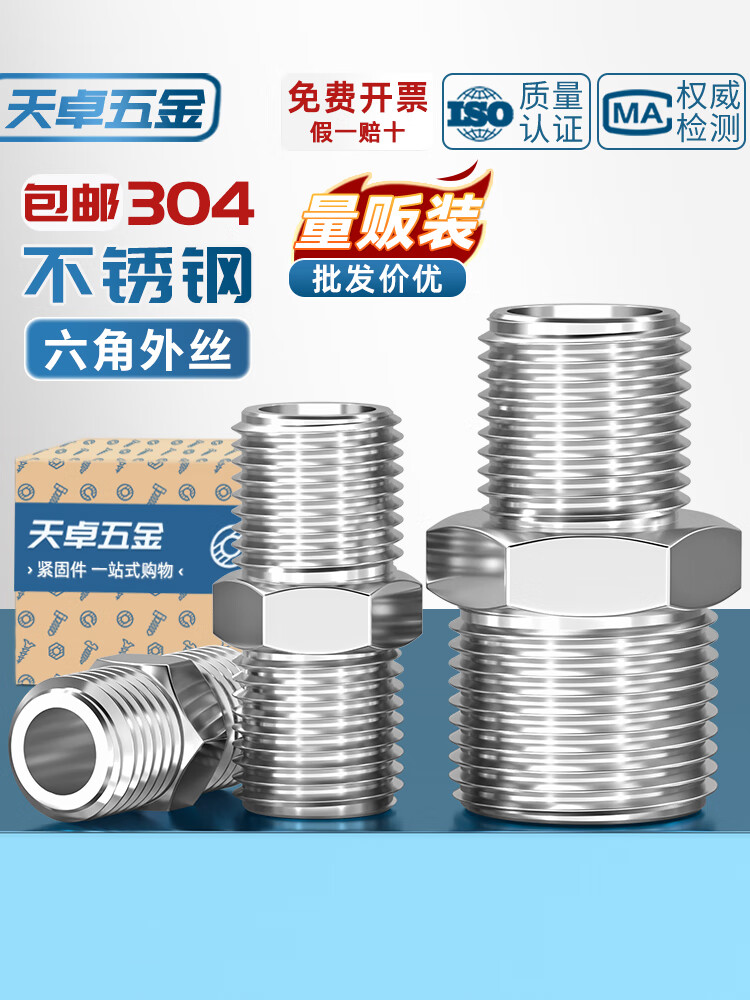 天卓五金304不锈钢六角外丝高压加厚直接接头双头外螺纹变径头2分4分对丝 304变径外丝 1/2-3/4【1个】