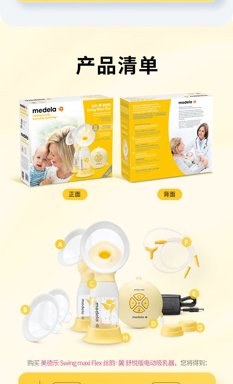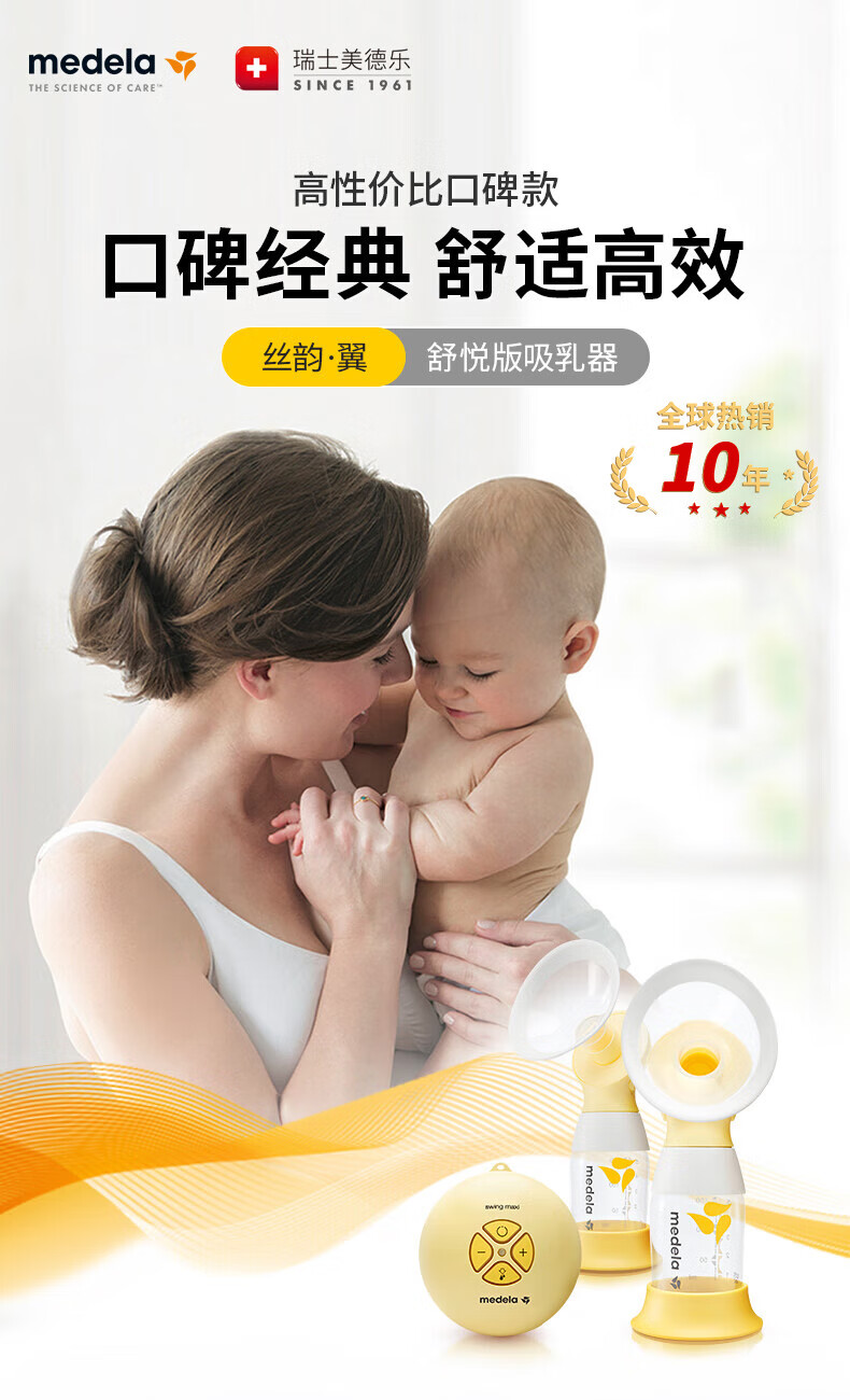 美德乐(Medela)吸奶器电动吸奶器双边吸乳器母乳集奶器挤奶器丝韵·翼舒悦版