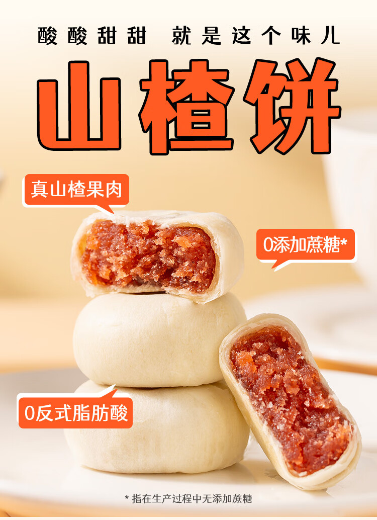 法米诺山楂饼无蔗糖酥软薄皮健身早餐代餐山楂果肉馅饼糕点心散装300g 山楂饼袋装300g(10个装)