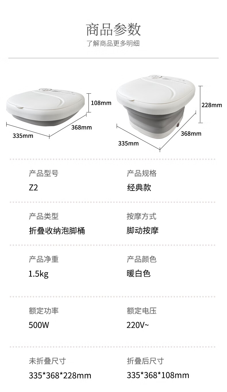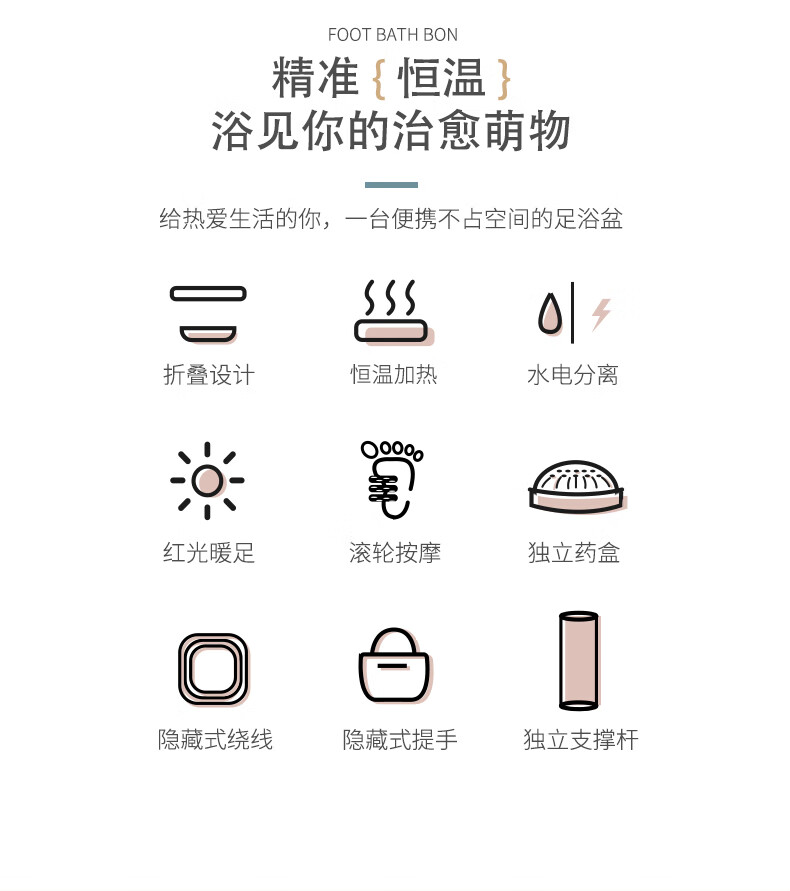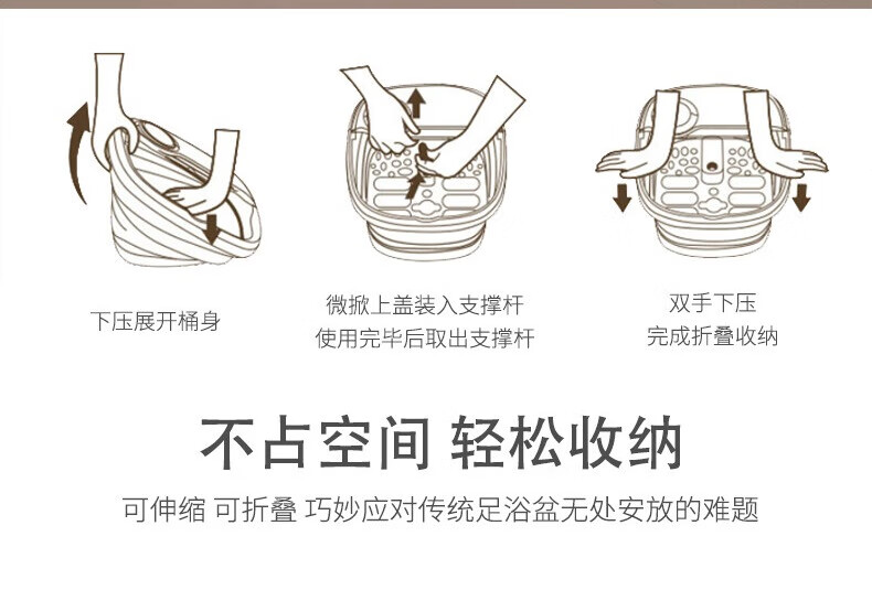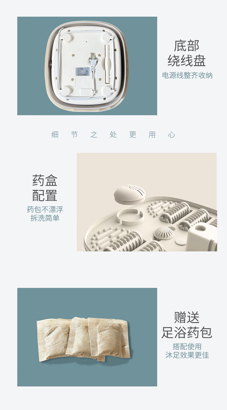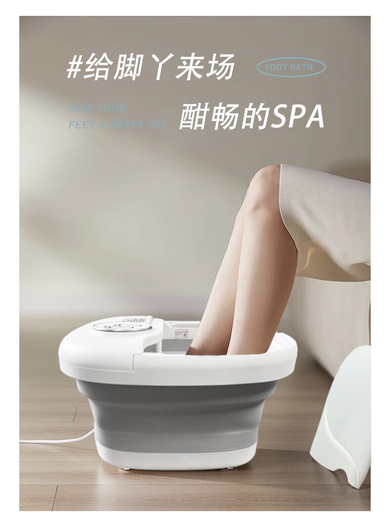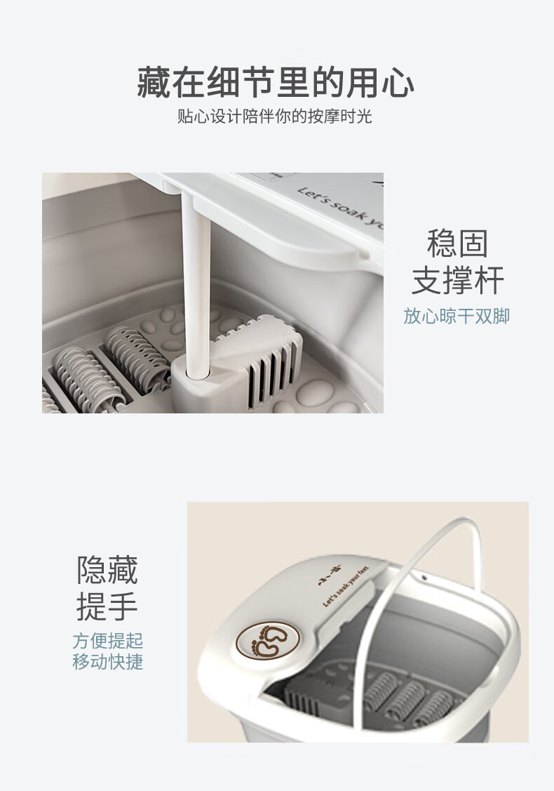 小昔X熊同源带支撑杆折叠足浴盆 泡脚桶 智能恒温加热洗脚盆 滚轮按摩红光气泡足浴桶泡脚盆节日送礼 【经典款】