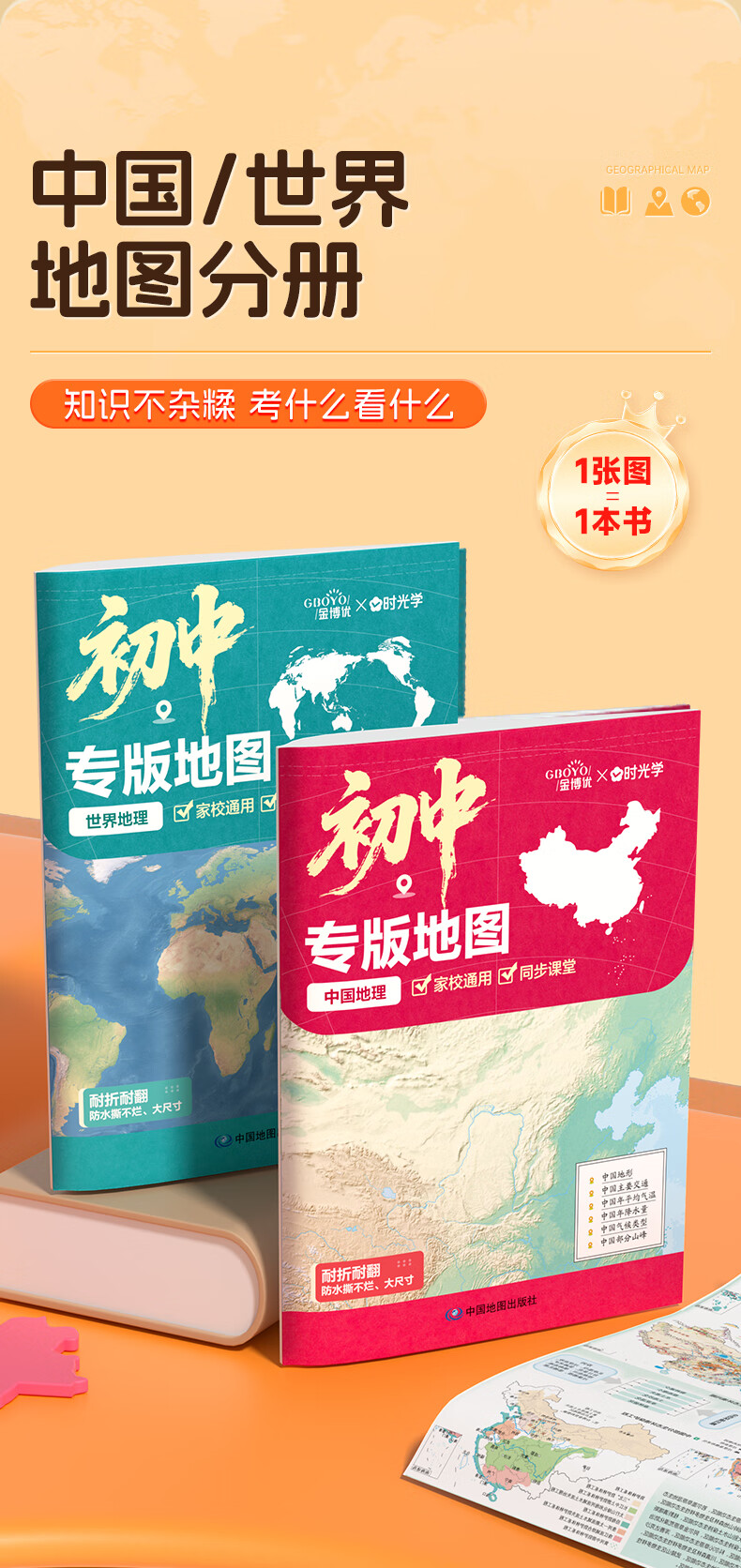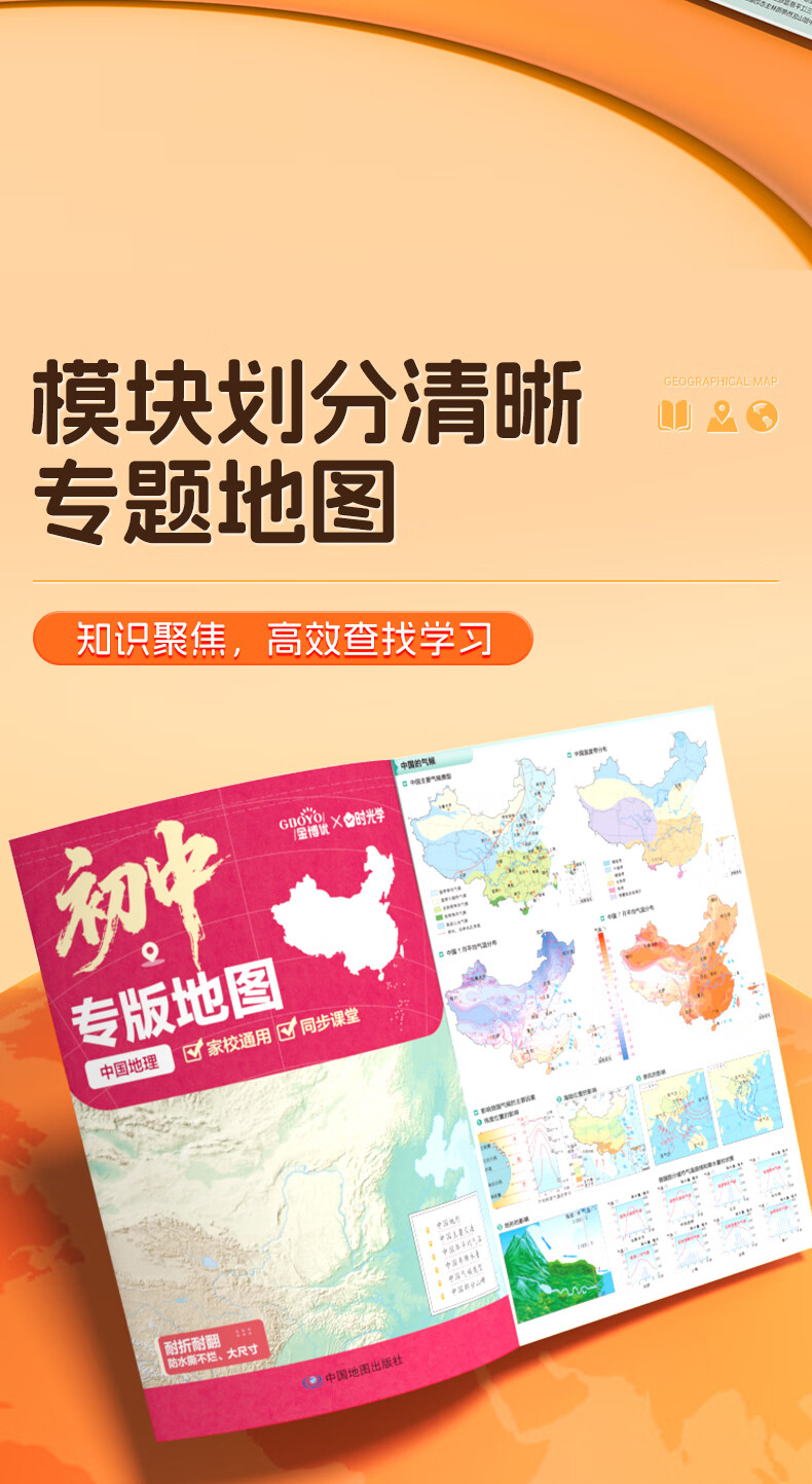 【时光学】初中学生专版地图初中生专用初一二三年级中学地理图册中国地图新版学生专用版地图册知识聚焦高效查找学习初中通用 初中学生专版地图【2册】
