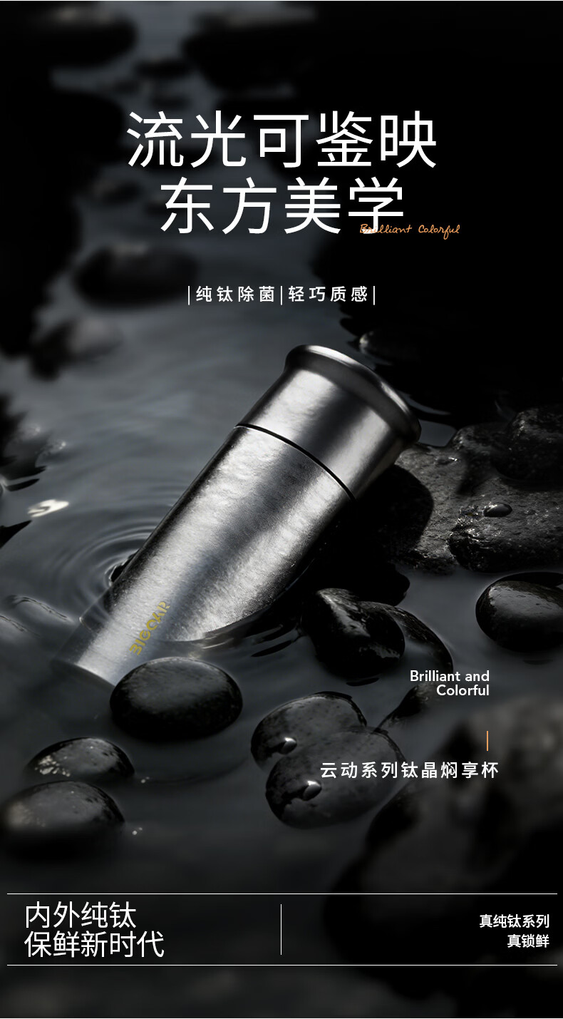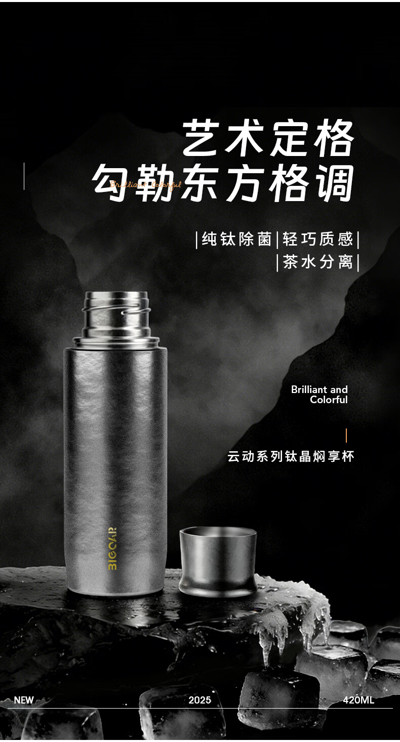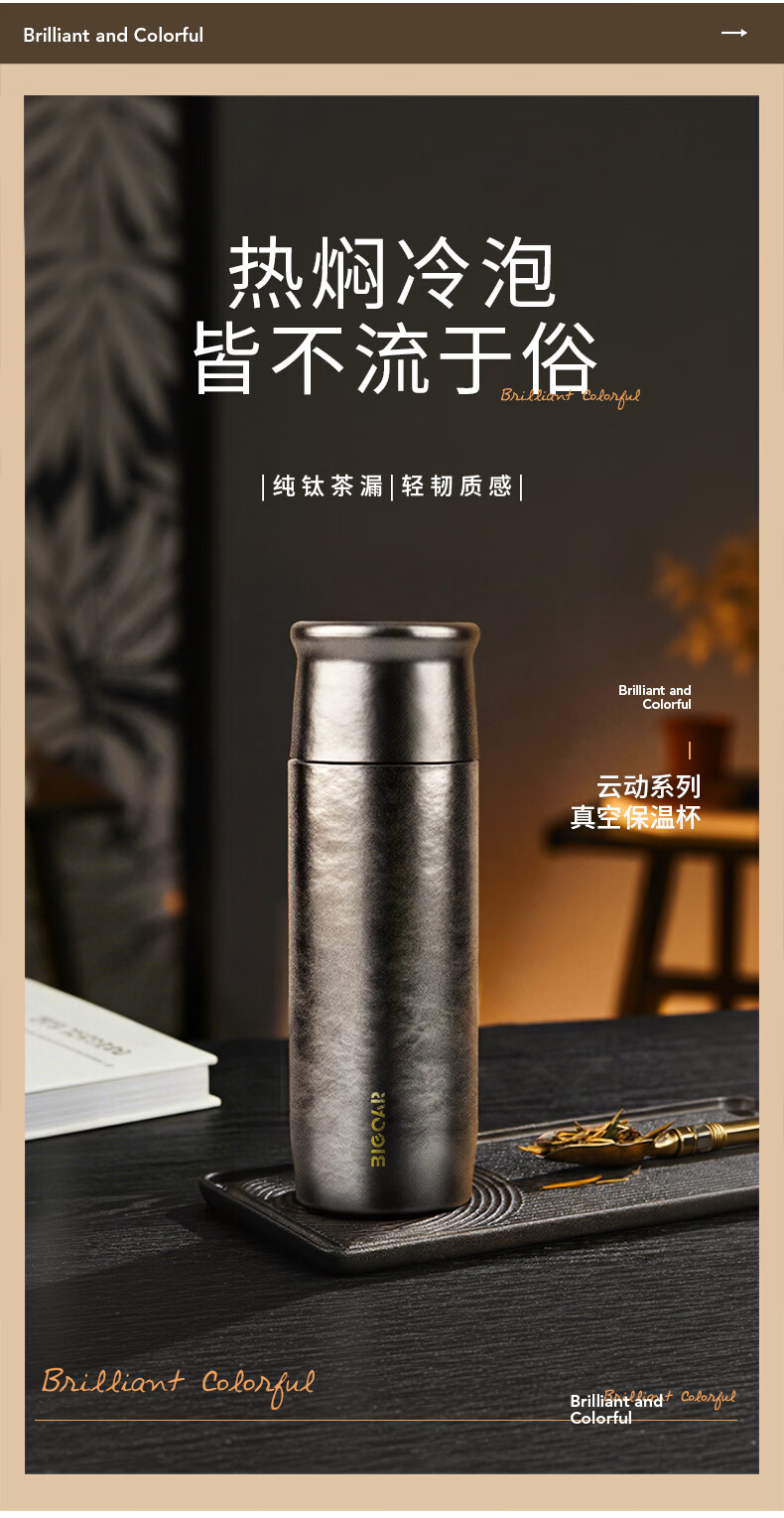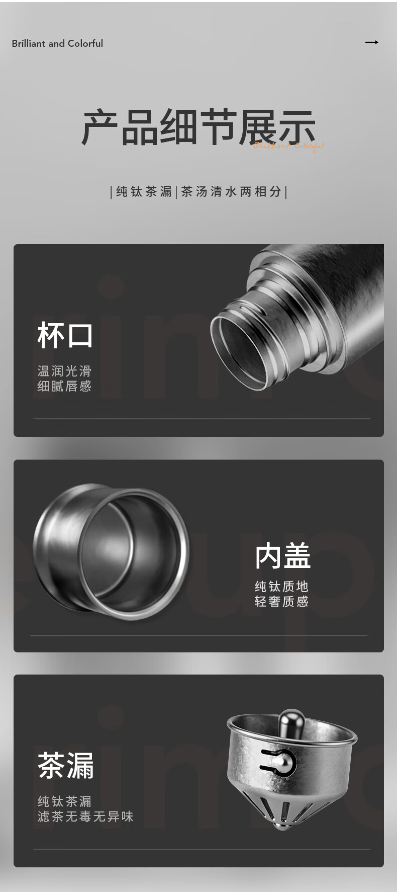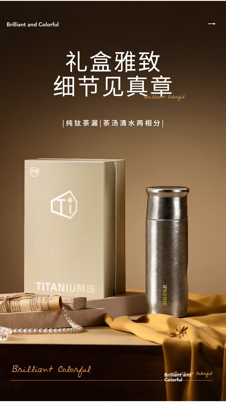 大卡纯钛保温杯高档焖茶杯茶水分离养生泡茶水杯商务办公礼品钛杯定制 青釉星碎【纯钛+礼盒】430ml