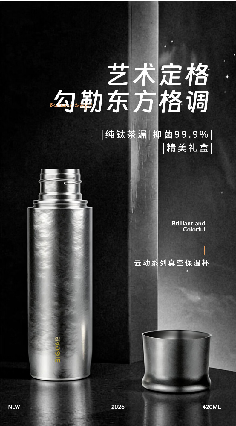 大卡纯钛保温杯双层钛高端钛闷茶杯闷泡水杯户外车载高颜值水杯 钛空本【内外纯钛+礼盒】430ml