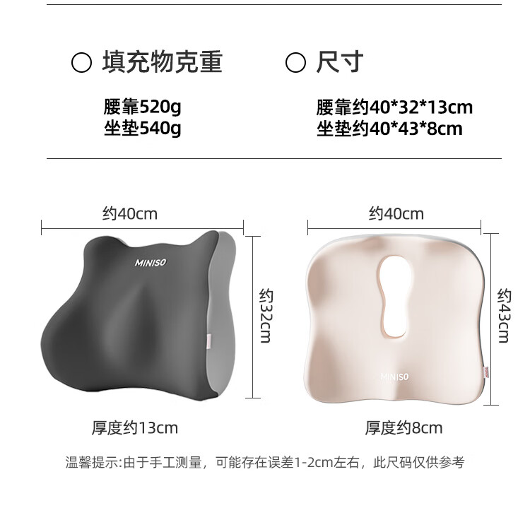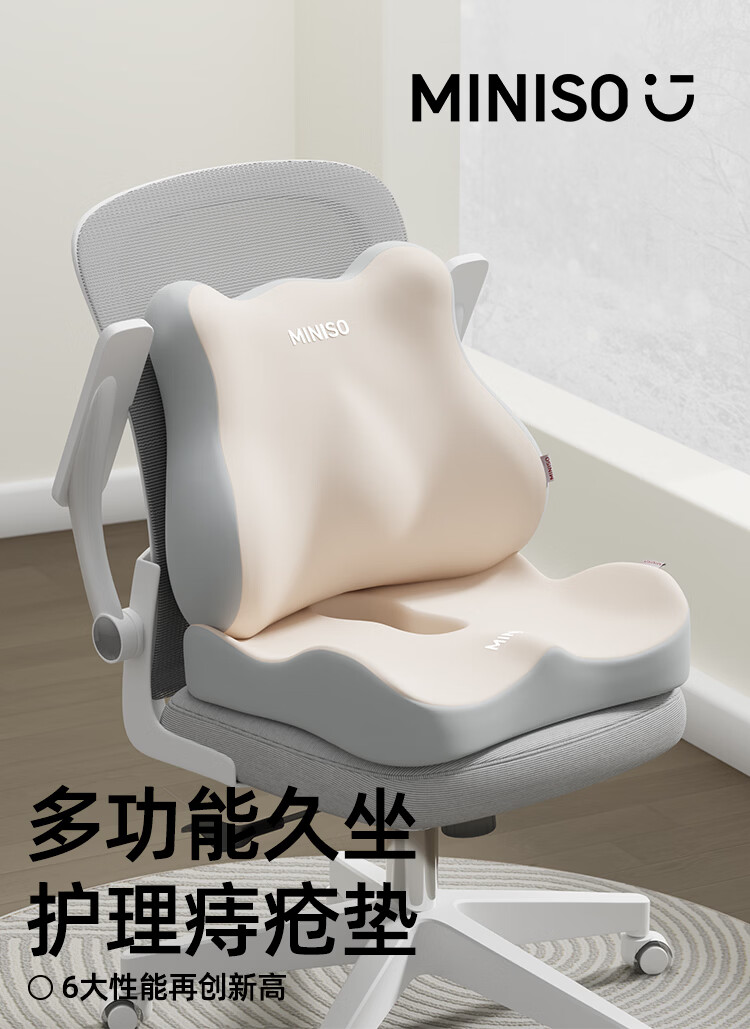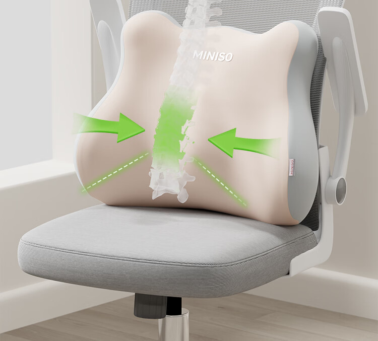 名创优品(MINISO)腰靠垫 办公室腰枕靠枕护腰工位坐垫久坐神器座椅子托靠背 【灰绿拼色】腰靠1个装