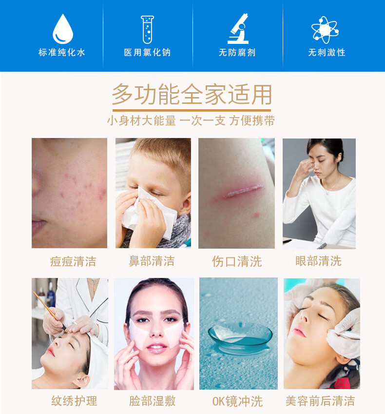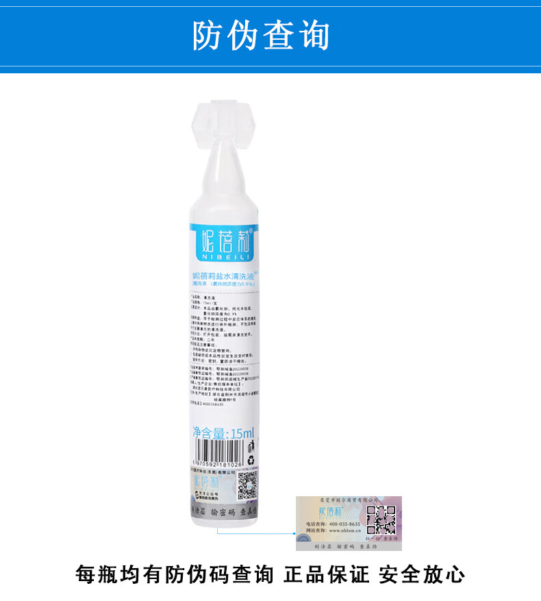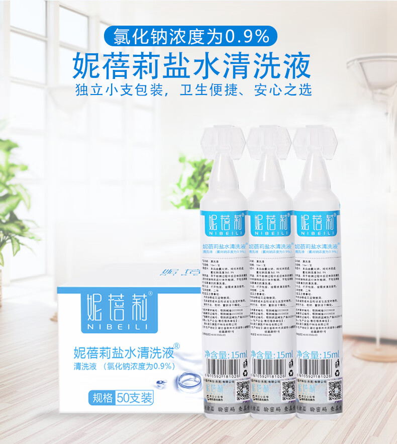 妮蓓莉生理盐水15ml*20支洗鼻洗眼敷脸漱口冲洗伤口0.9%氯化钠不可注射