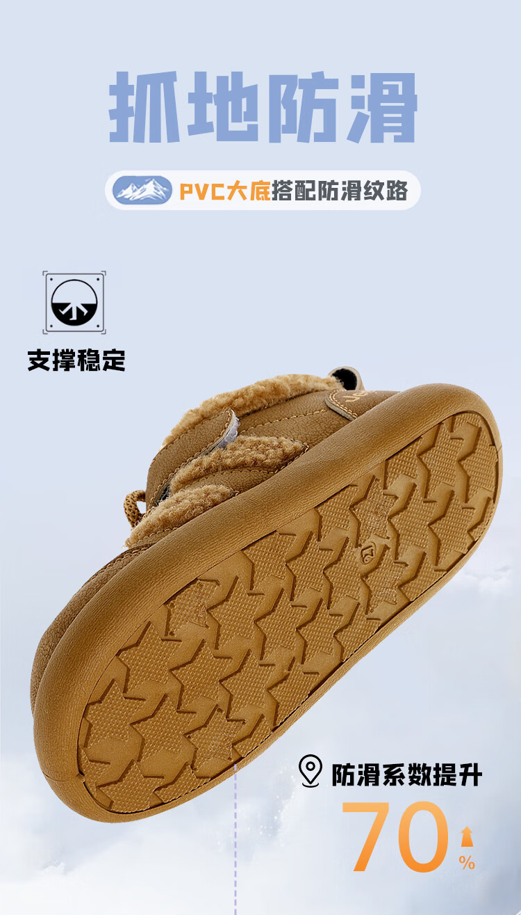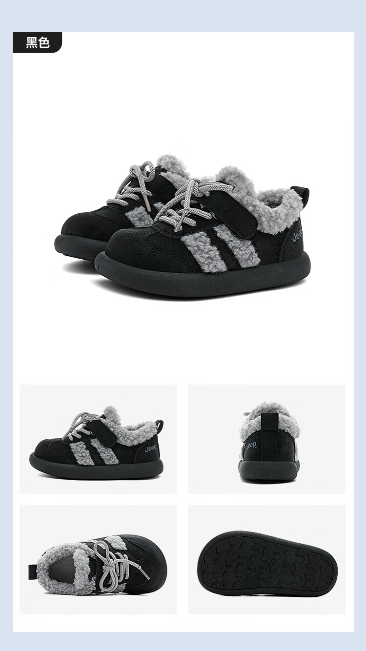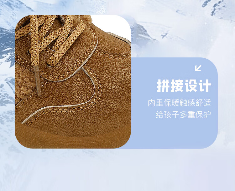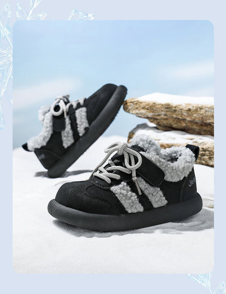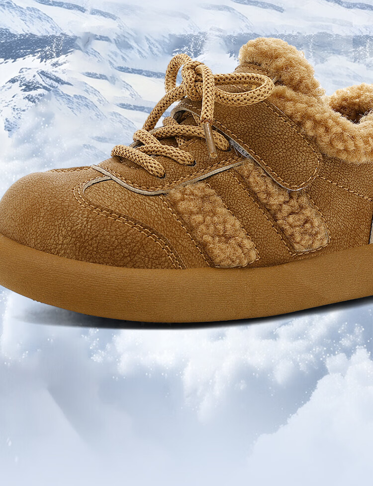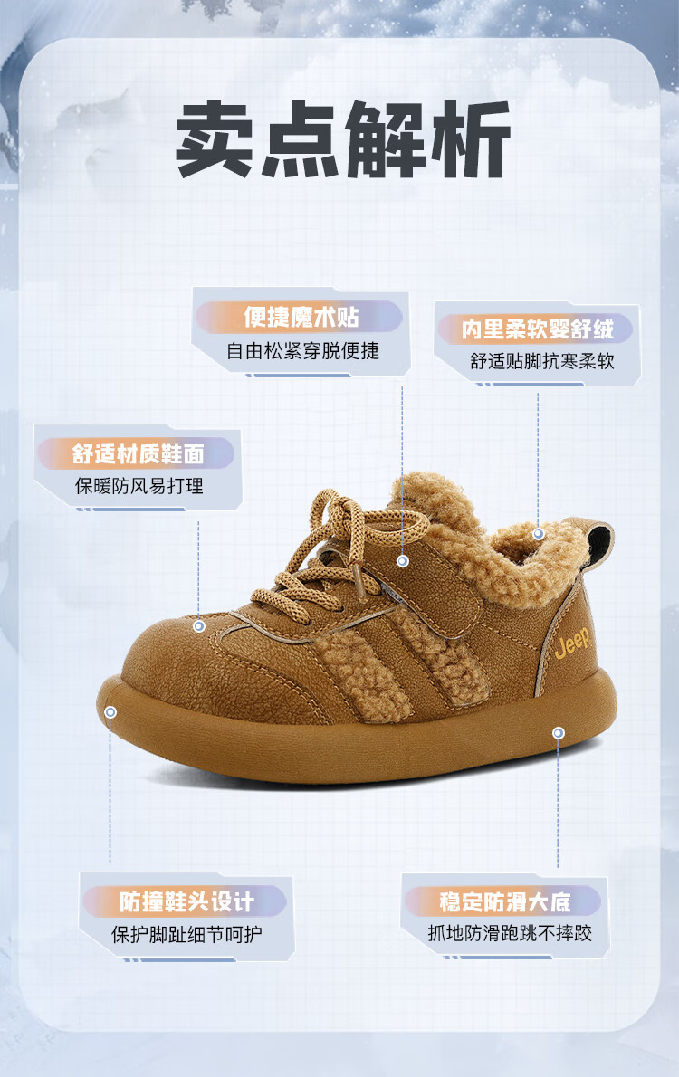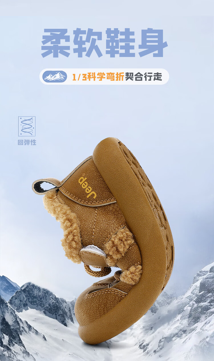 JEEPjeep儿童大棉鞋冬季跑步防滑运动儿童板鞋潮加绒加厚保暖软底冬鞋 浅棕色 28