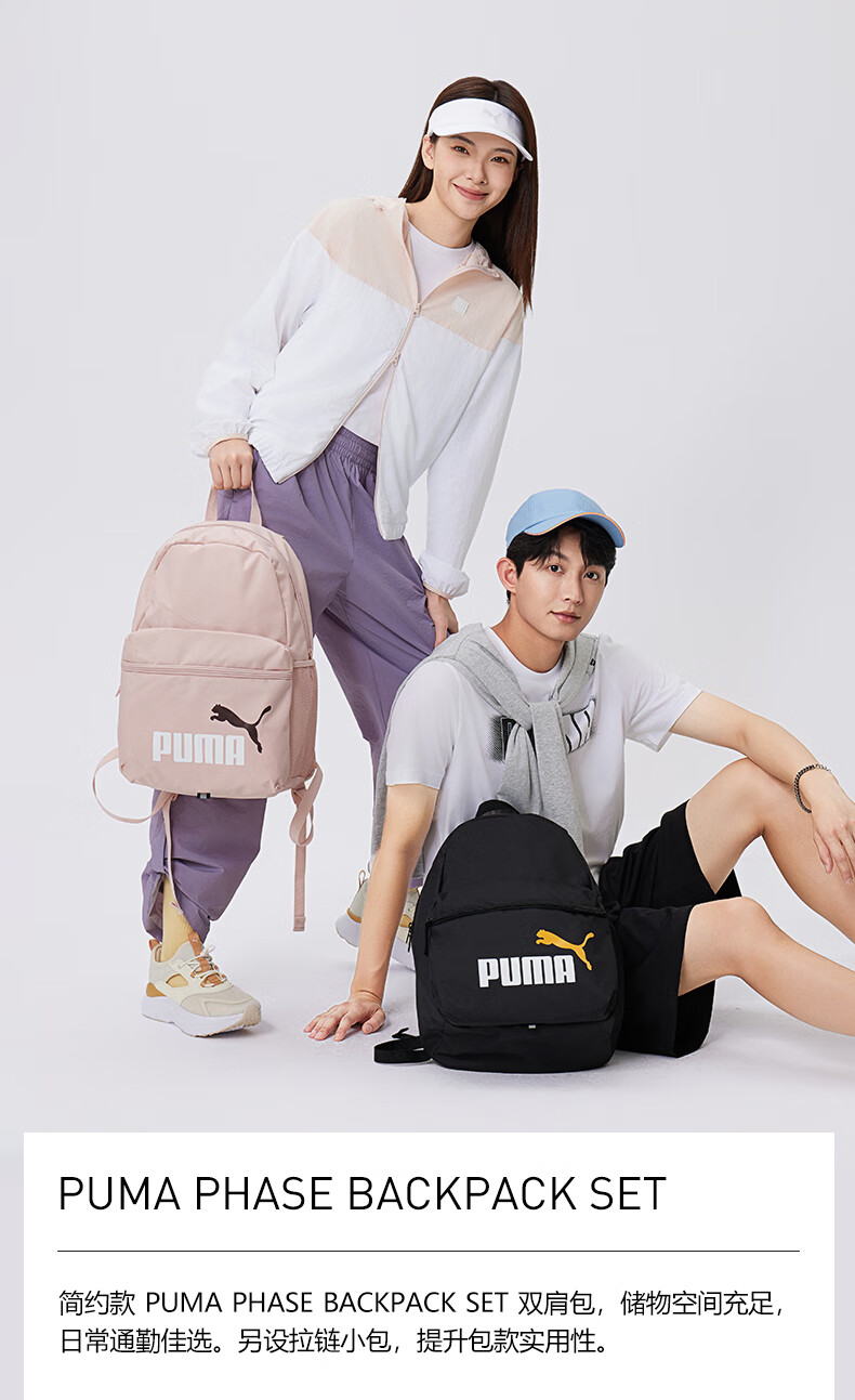 彪马(PUMA)通勤旅行大容量双肩包男女款收纳口袋学生书包078560 玫瑰粉-白-咖紫色-06 OSFA