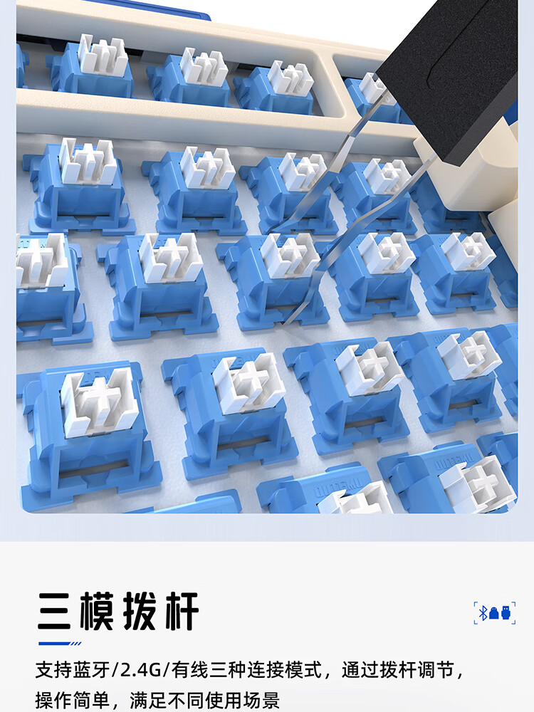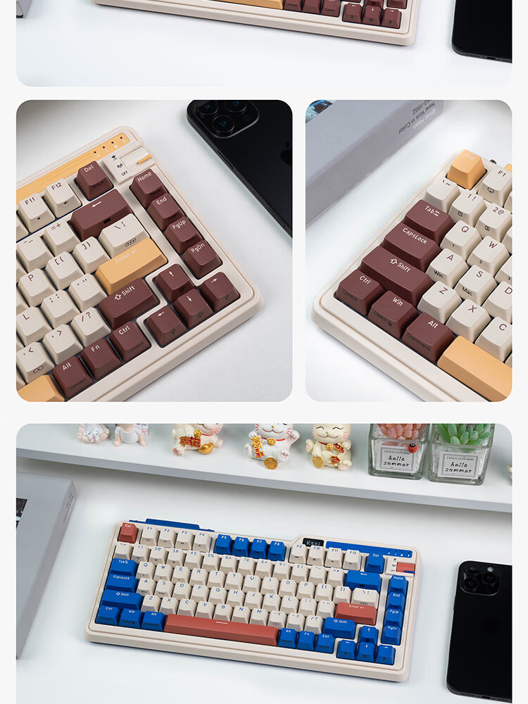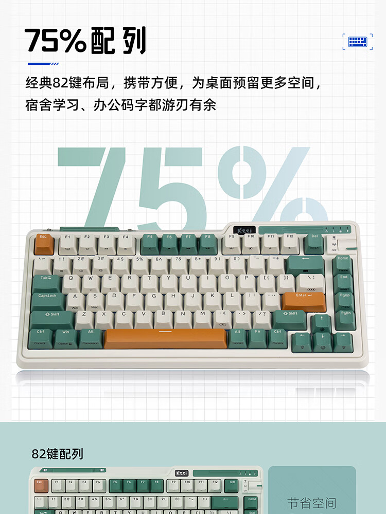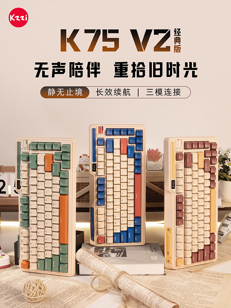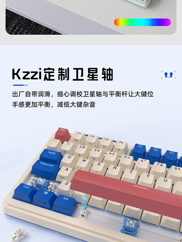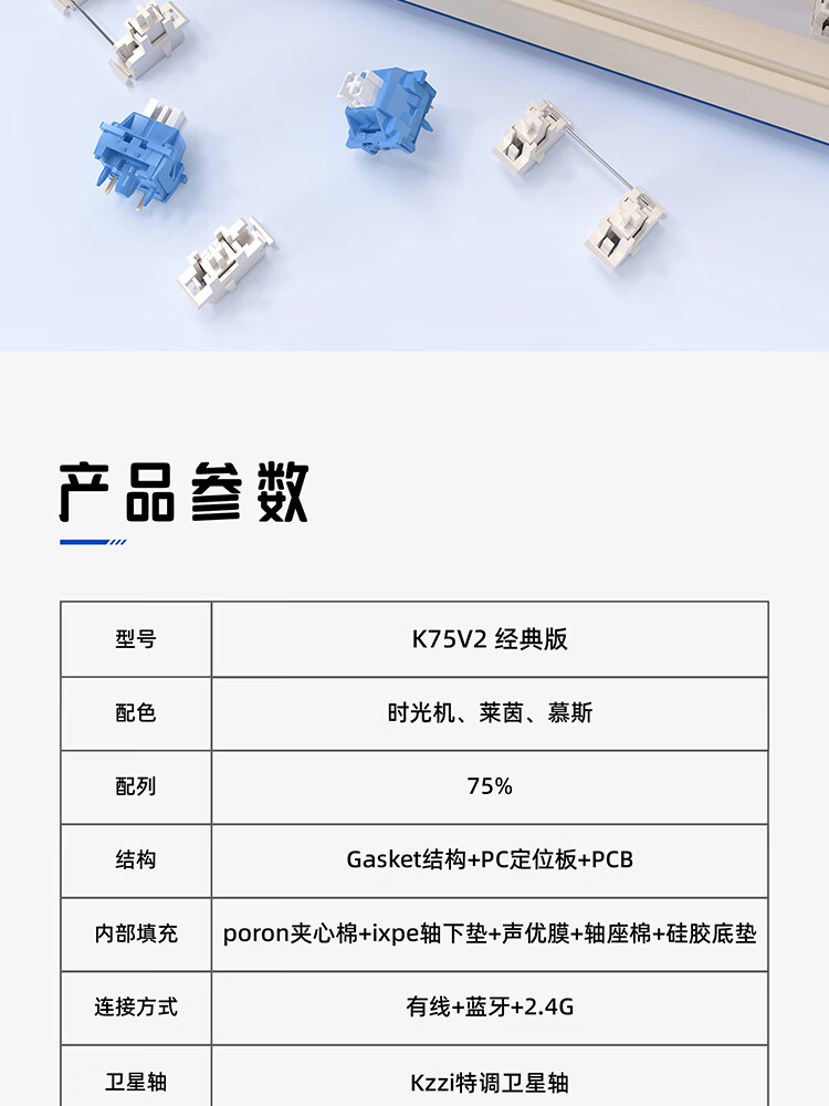 珂芝(KZZI)K75V2三模客制化机械键盘无线蓝牙有线电竞游戏家用办公82键RGB光PBT键帽Gasket莱茵蓝莓静音轴