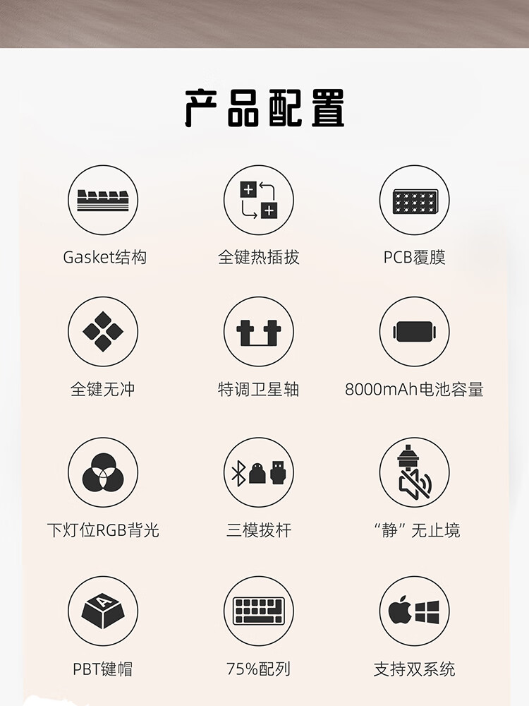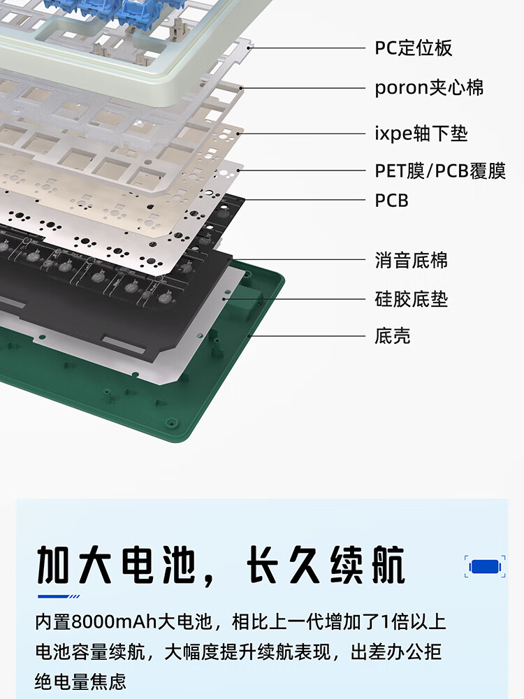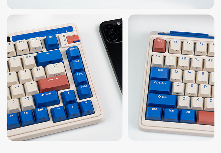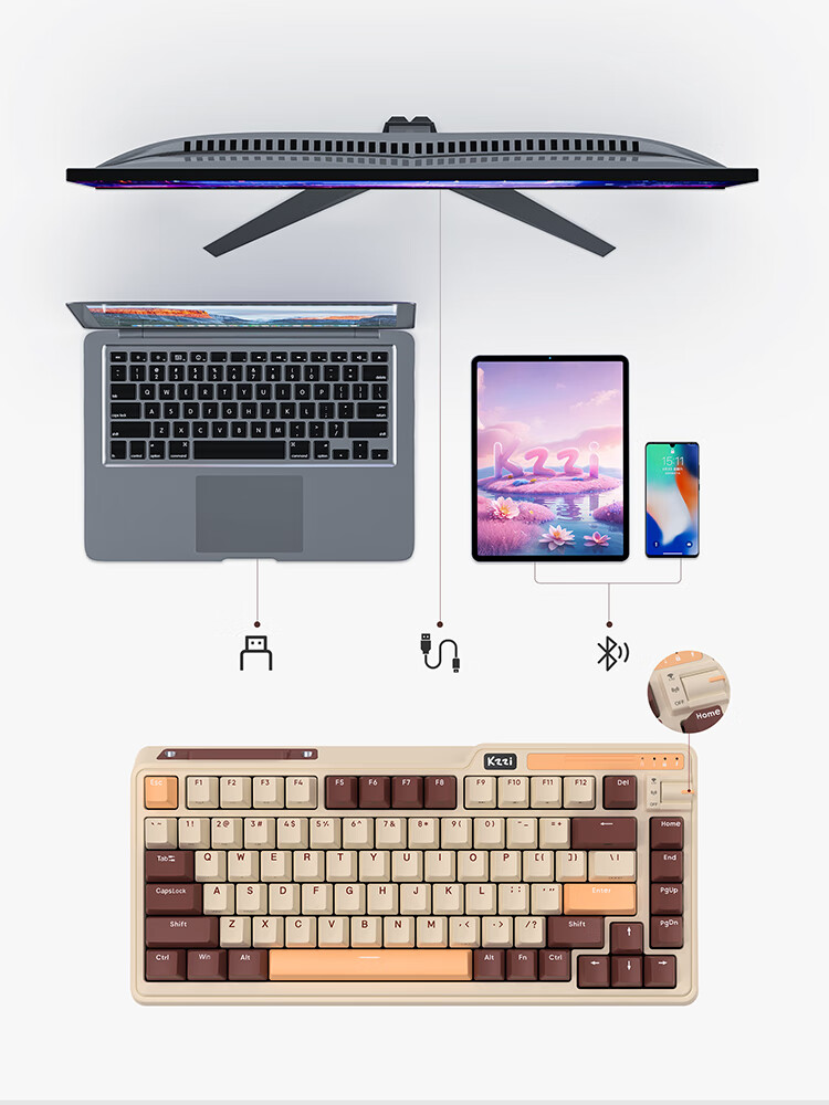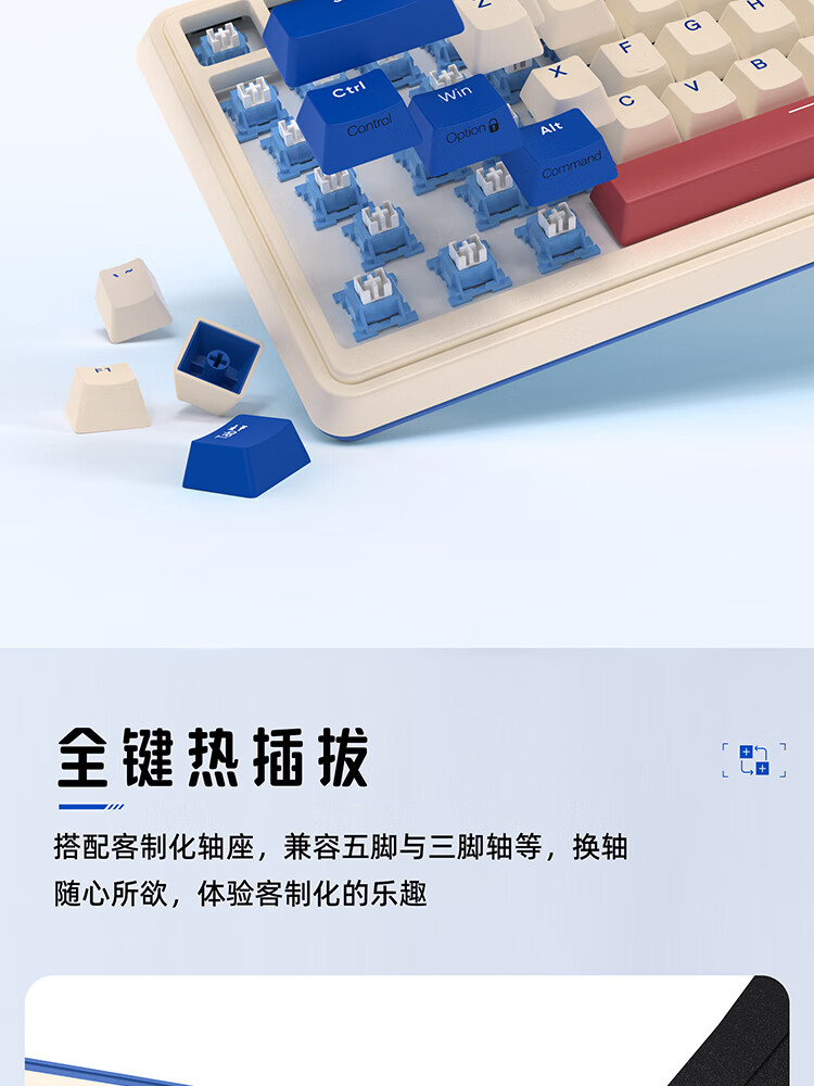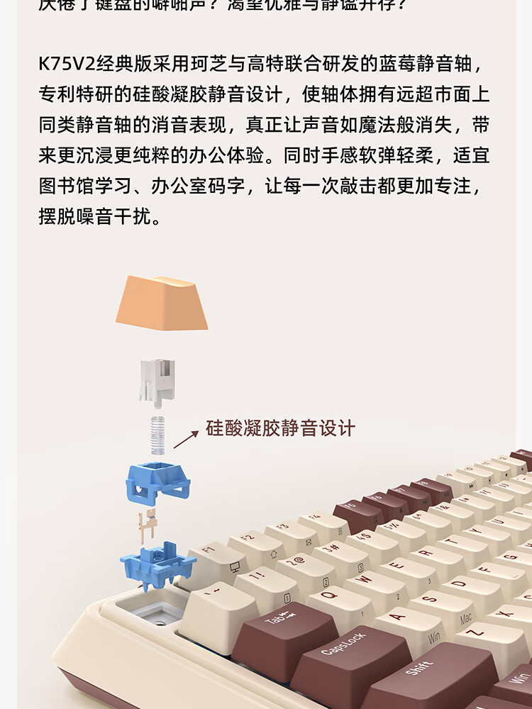 珂芝(KZZI)K75V2三模客制化机械键盘无线蓝牙有线电竞游戏家用办公82键RGB光PBT键帽Gasket莱茵蓝莓静音轴