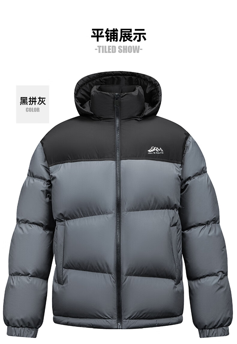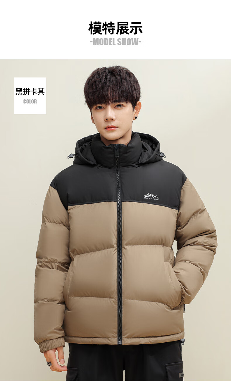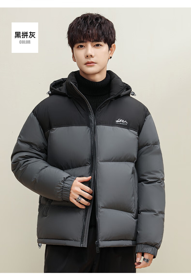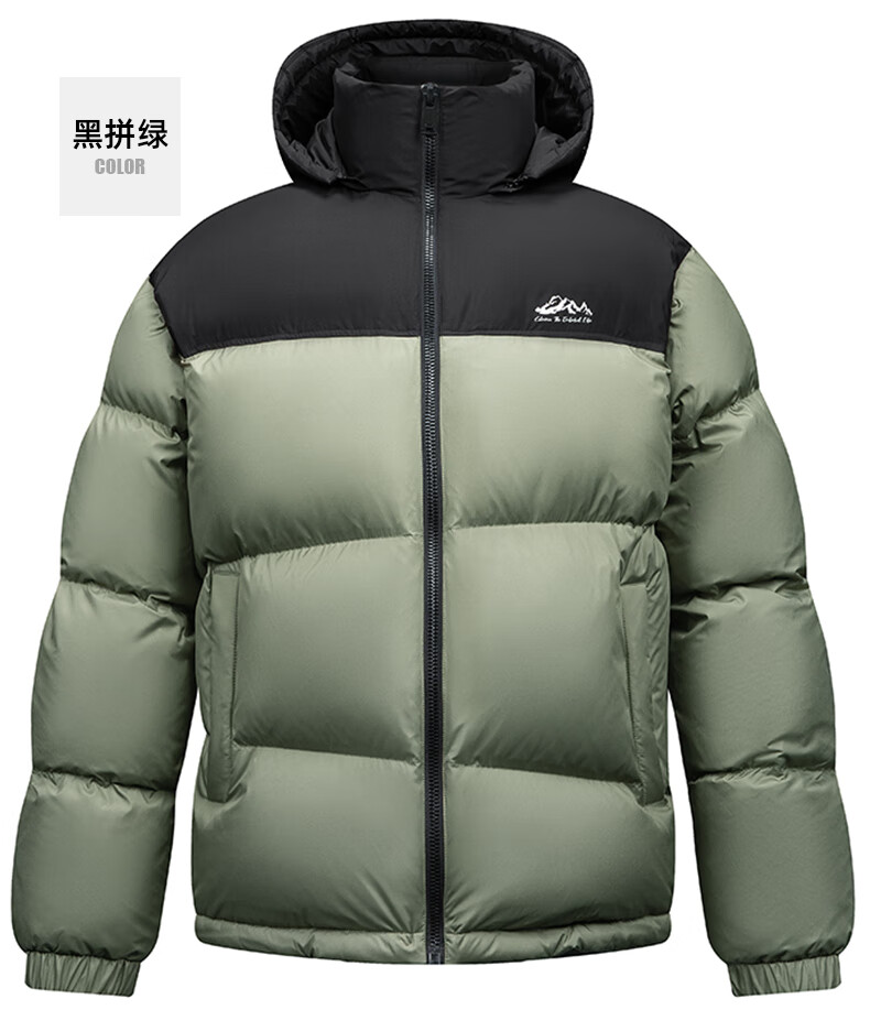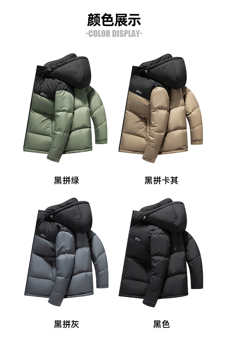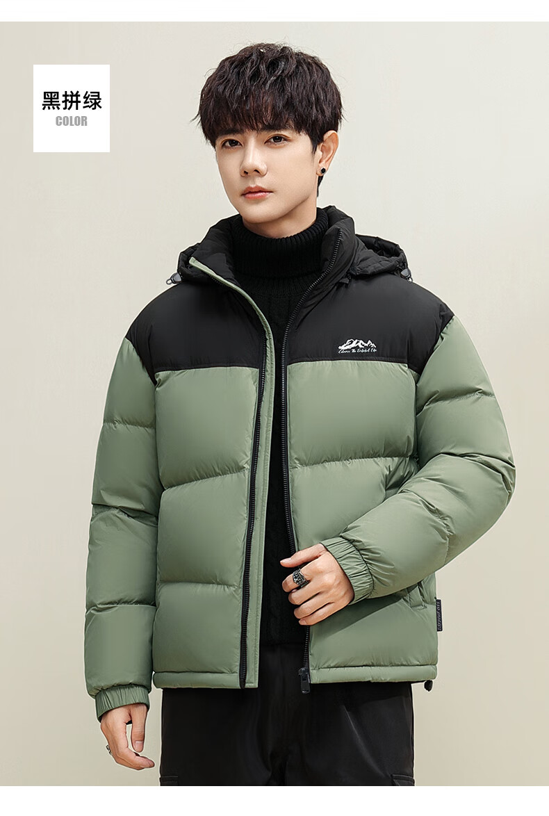 鸭鸭(YAYA)羽绒服男女同款短款连帽厚款拼色面包服情侣保暖2025冬季新款外套 黑拼绿色 2XL 185(建议165-185斤)