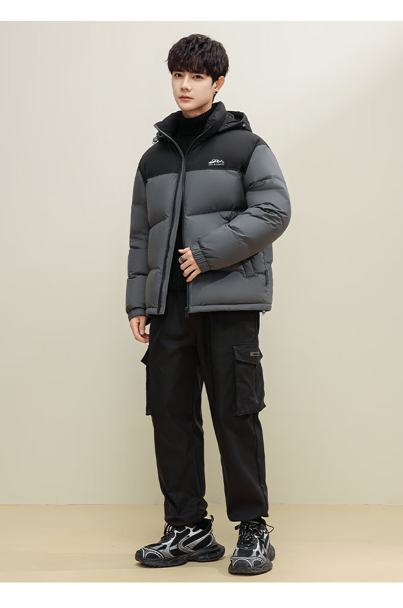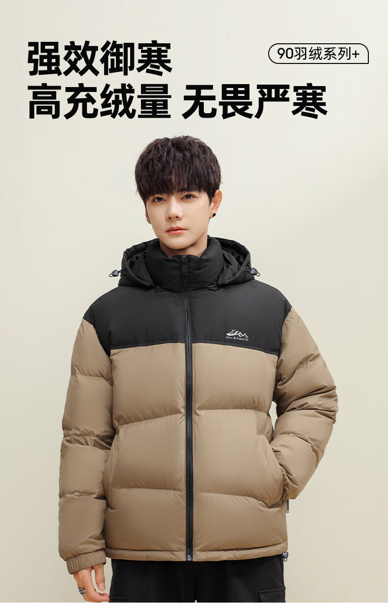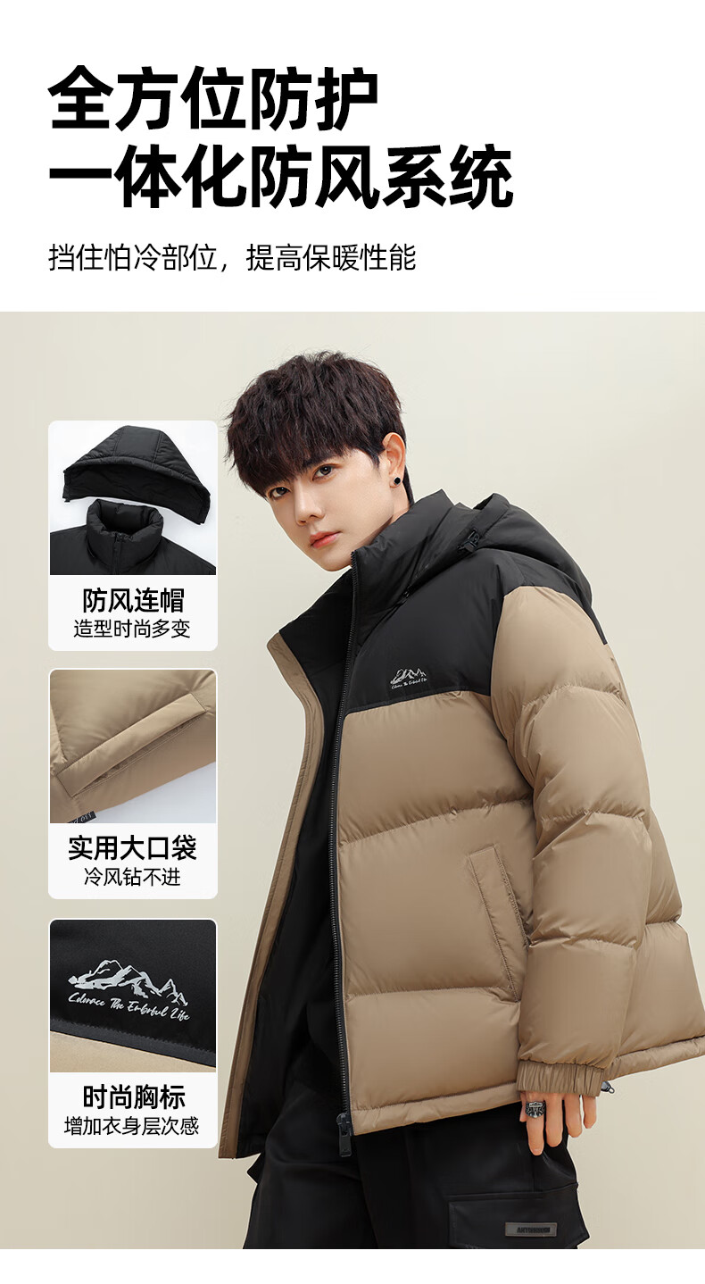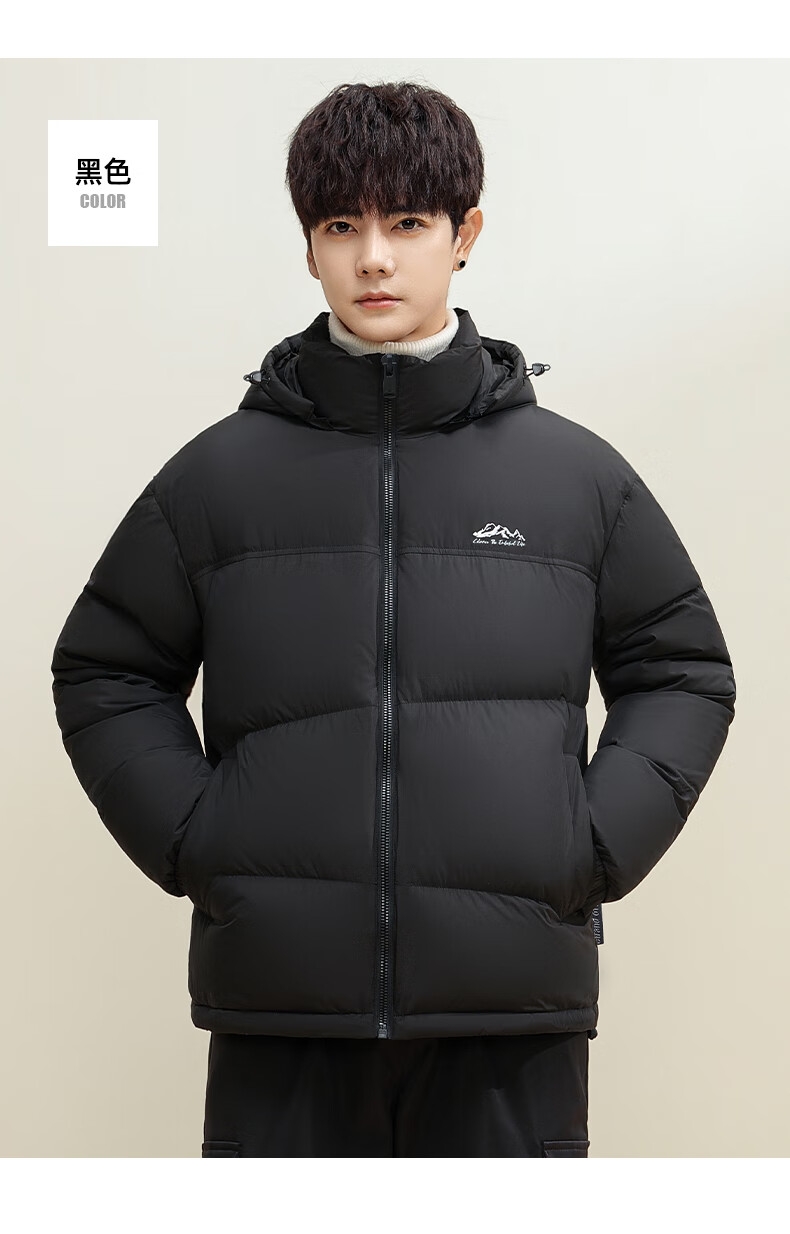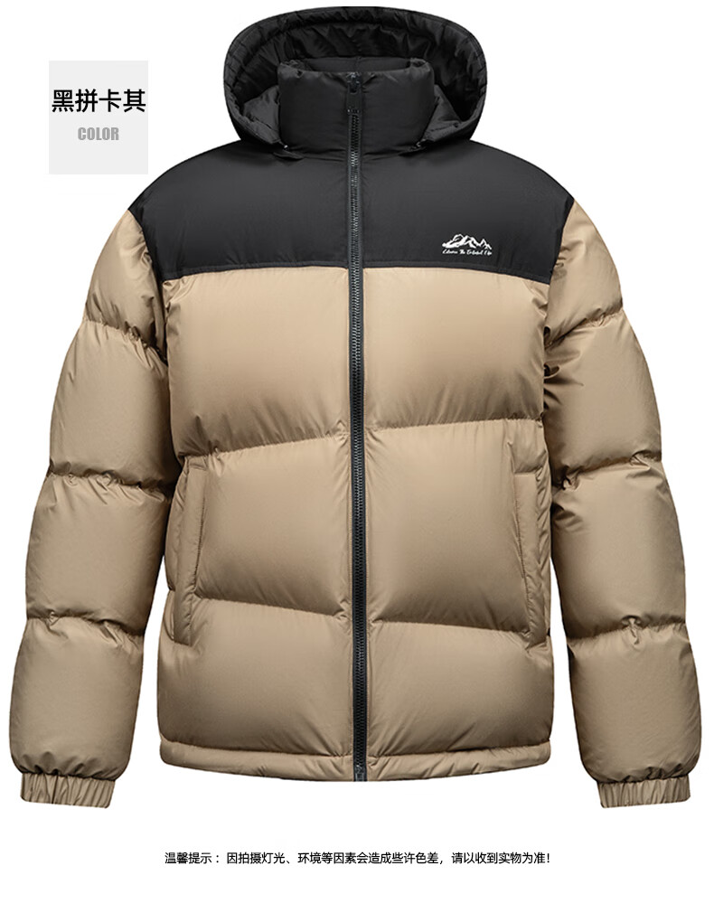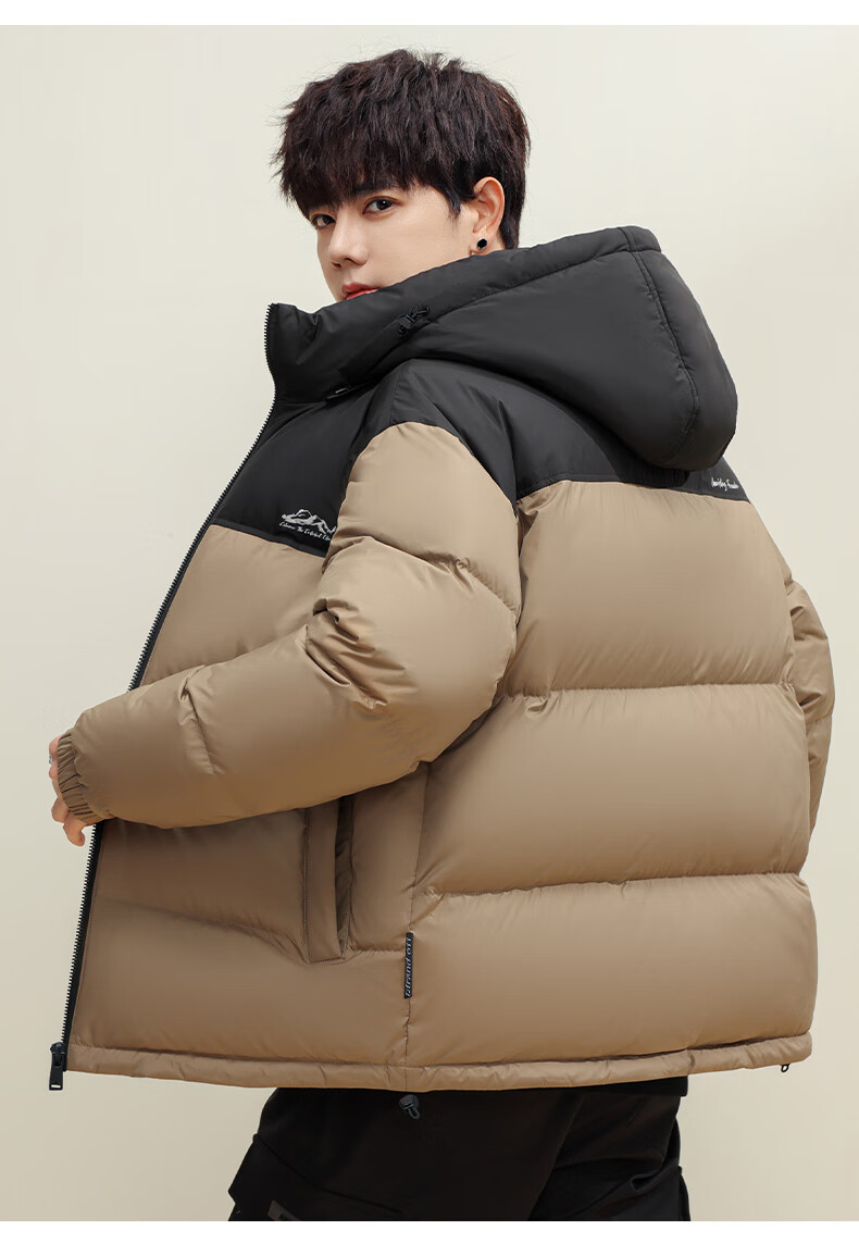 鸭鸭(YAYA)羽绒服男女同款短款连帽厚款拼色面包服情侣保暖2025冬季新款外套 黑拼绿色 2XL 185(建议165-185斤)