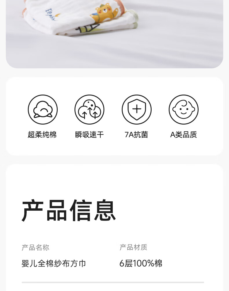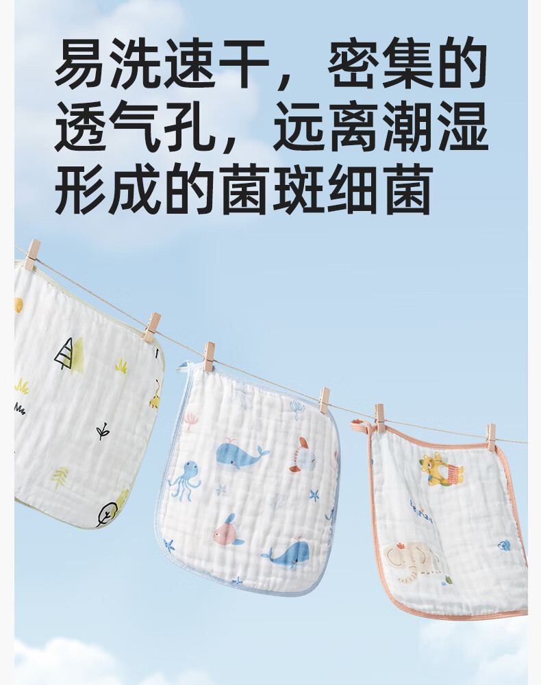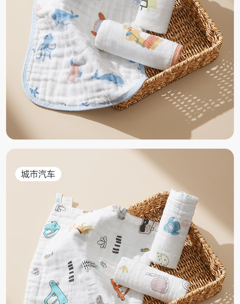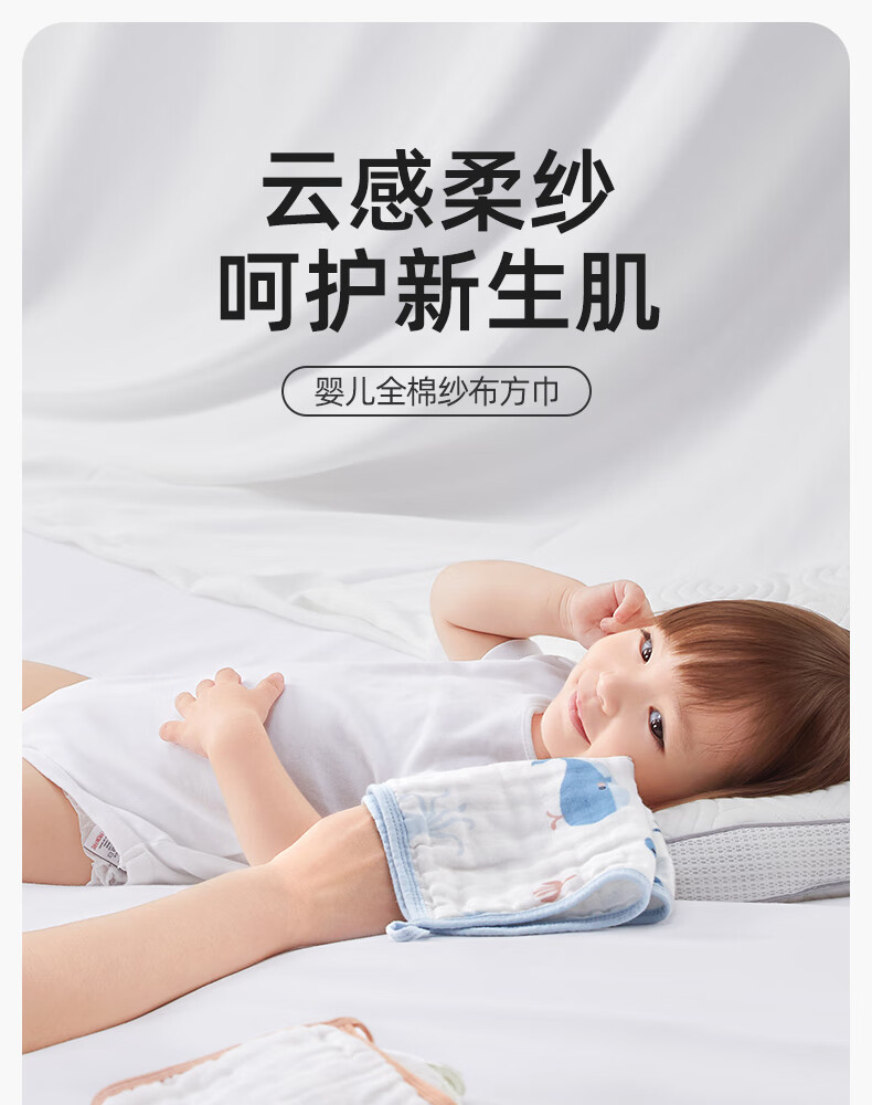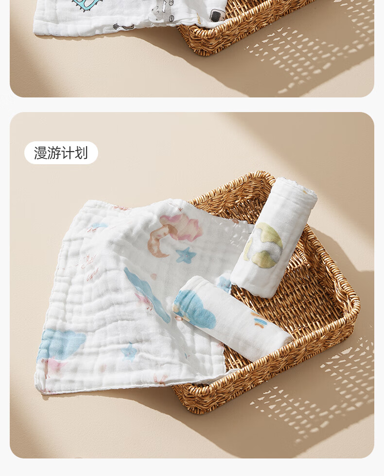 十月结晶婴儿面巾6层6条装A类纯棉卡通小方巾透气速干日常换洗30*30cm