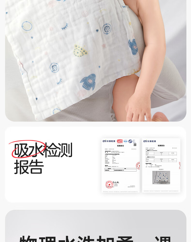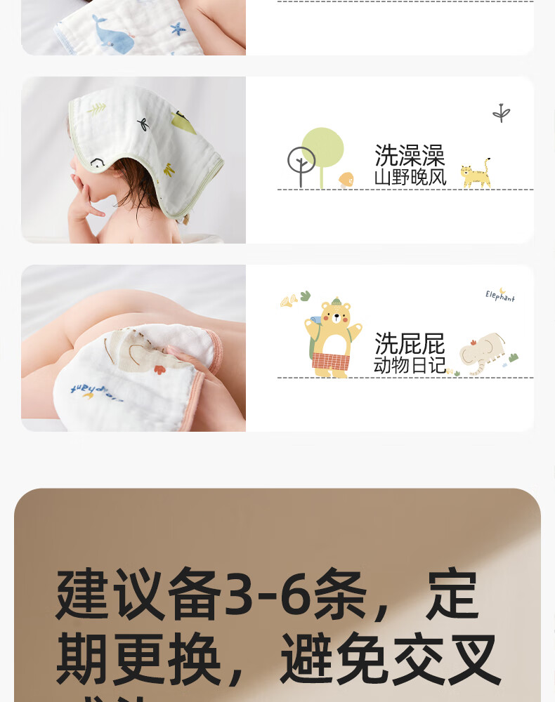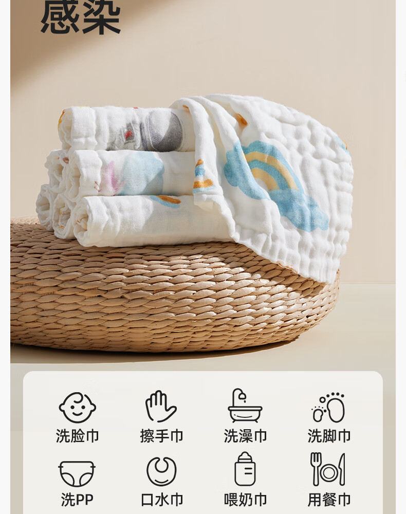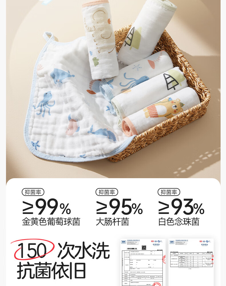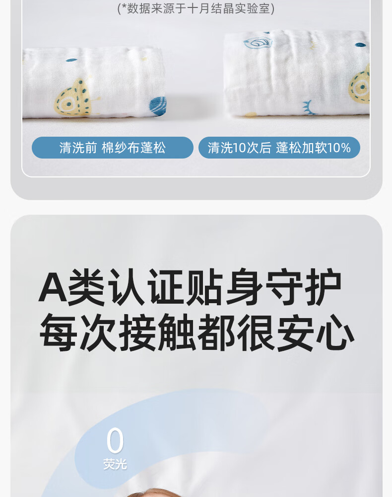 十月结晶婴儿面巾6层6条装A类纯棉卡通小方巾透气速干日常换洗30*30cm