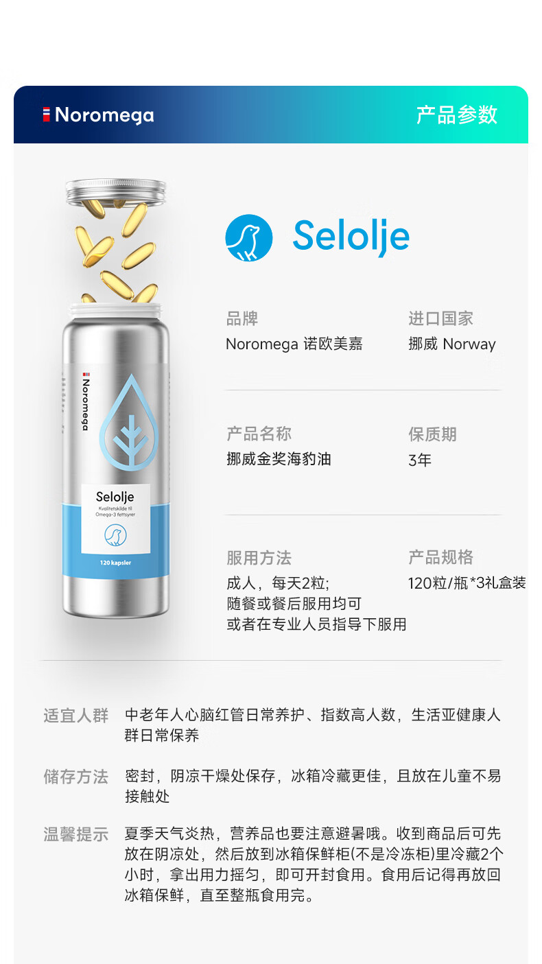 NOROMEGA【年货送健康】海豹油胶囊礼盒深海高纯鱼油omega3成人dha120粒*3