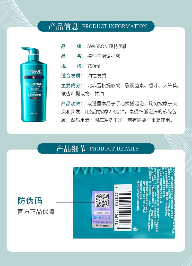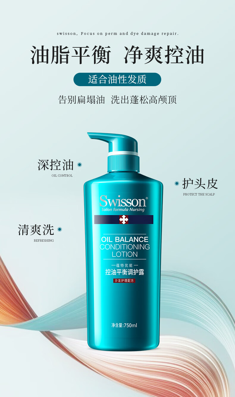 蕴特优能(SWISSON)洗发水控油蓬松去屑洗头膏女男士柔顺洗发露液护发素洗护套装正品 控油平衡洗发水750ml