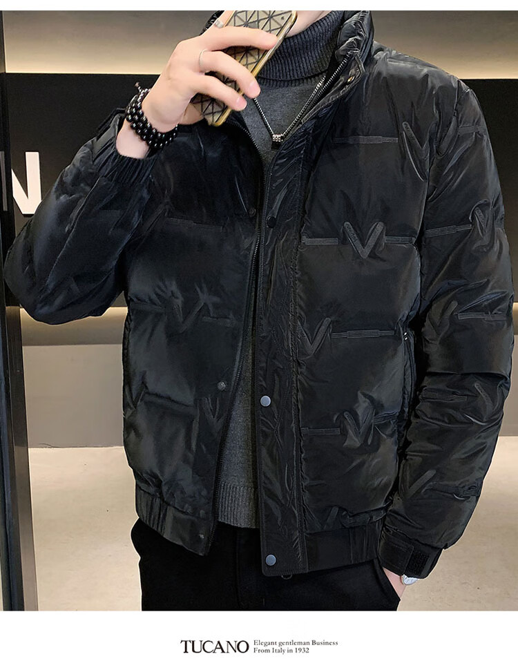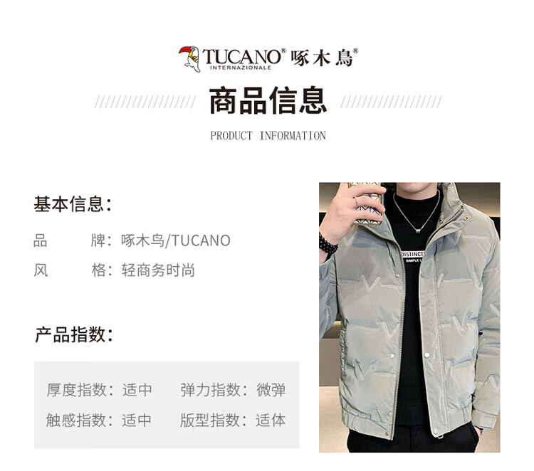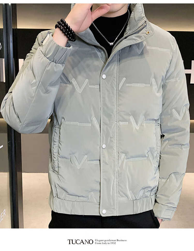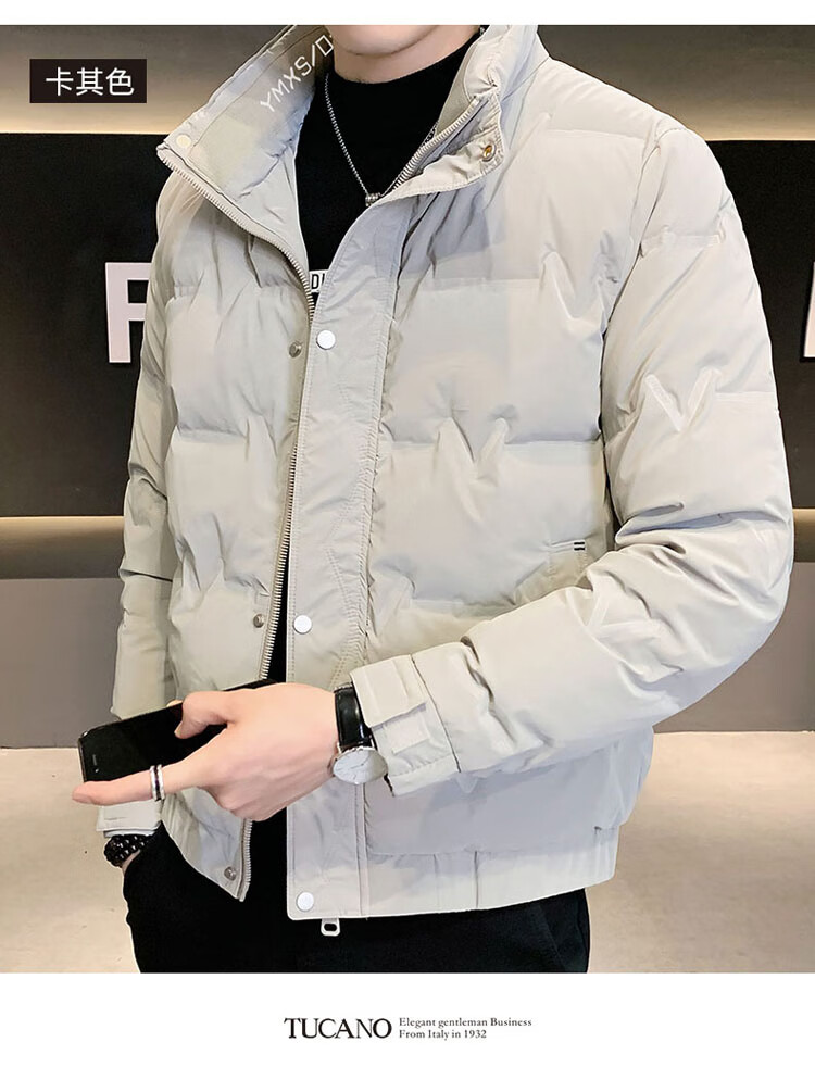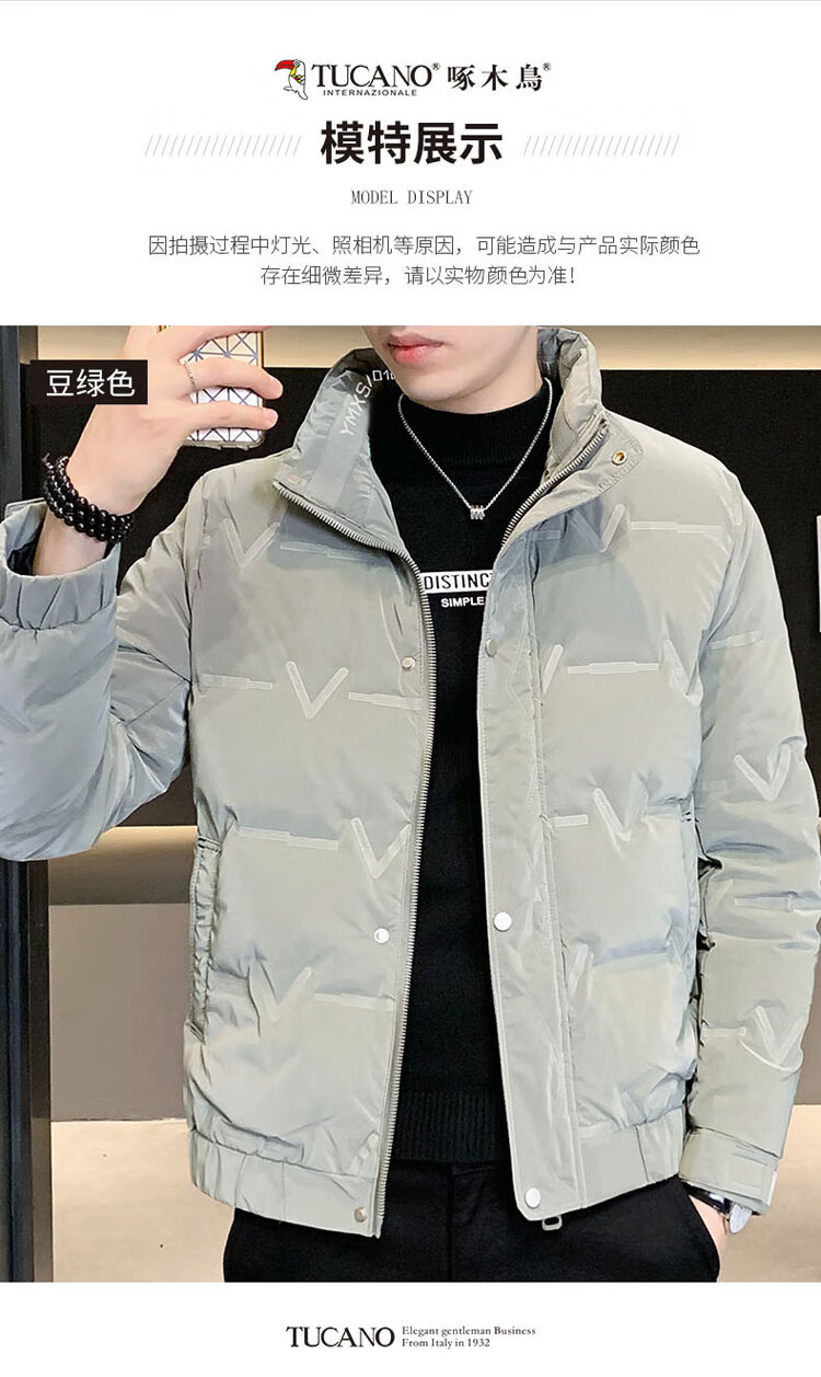 啄木鸟(TUCANO)羽绒服男款立领外套男冬季保暖面包服防寒休闲工装上衣 豆绿 XL