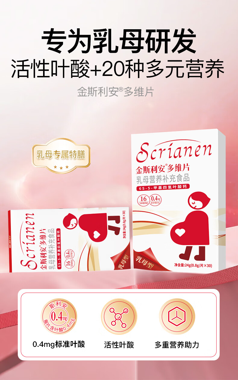 斯利安活性叶酸6S-5-甲基四氢叶酸钙 乳母专款30粒 女士备孕孕妇适用