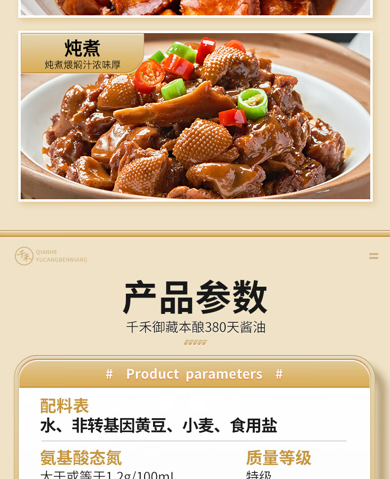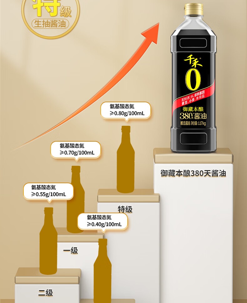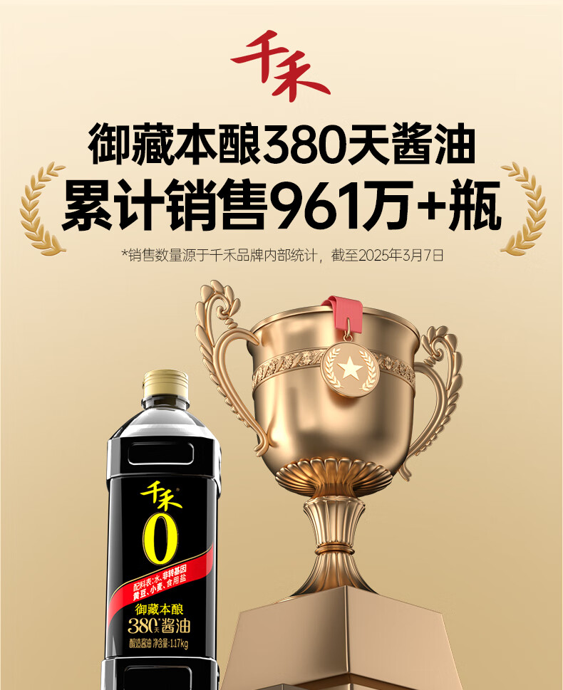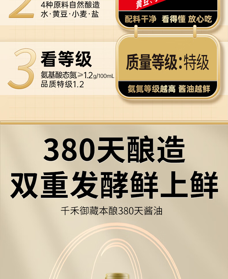 千禾酱油御藏本酿380天1L*2(1.17kg*2)0添加特级生抽调料炒菜调味品