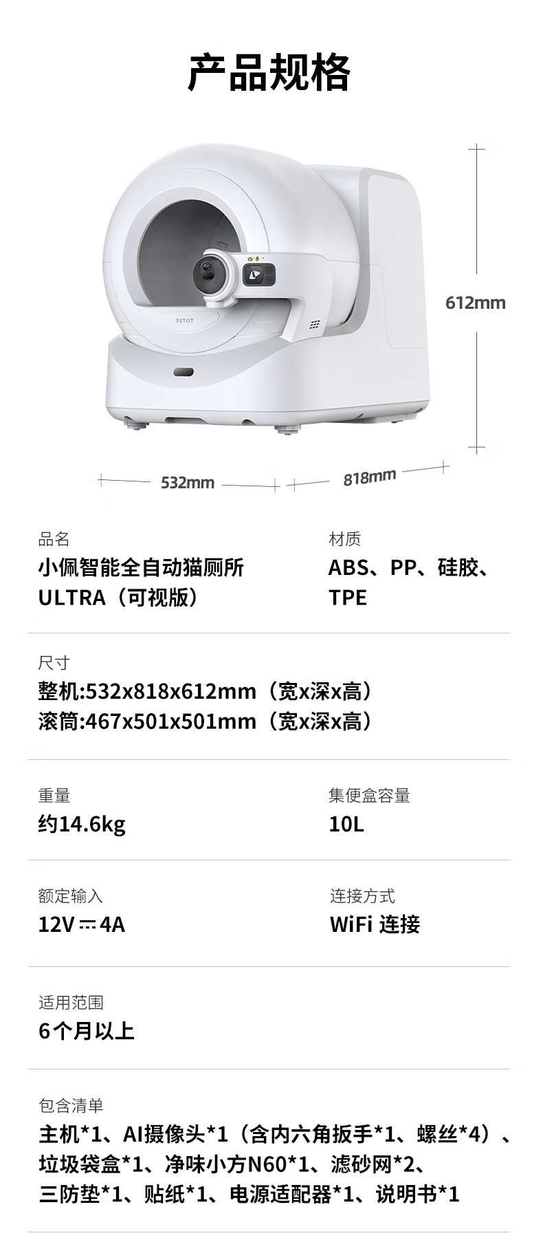 小佩AI智能全自动打包猫厕所ULTRA 可视猫砂盆 一键换砂(支持鸿蒙智联